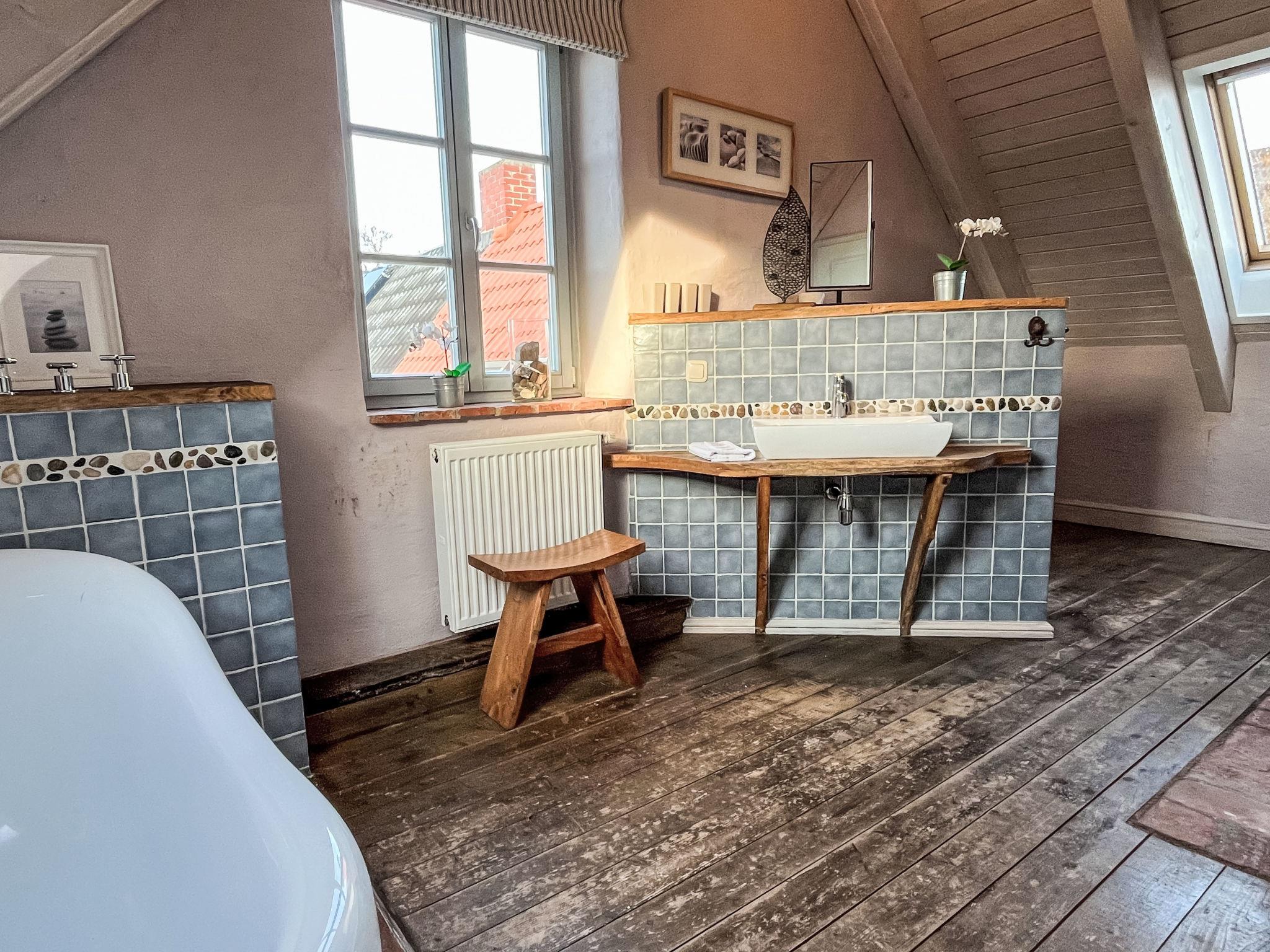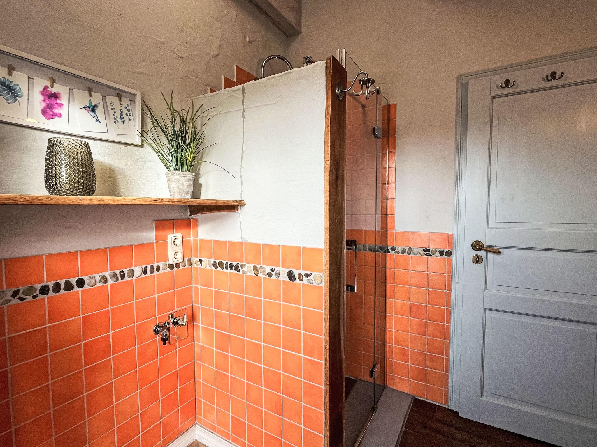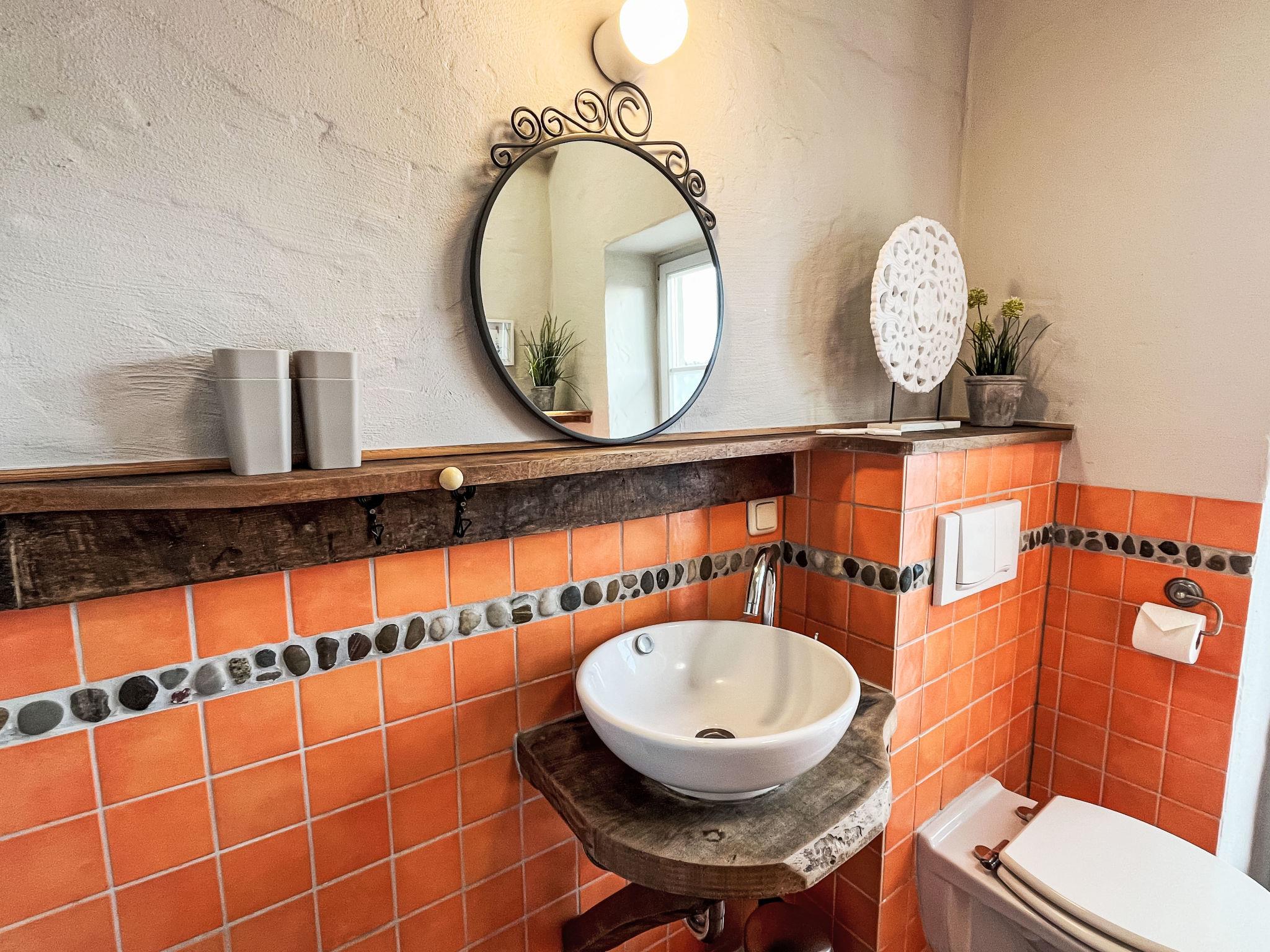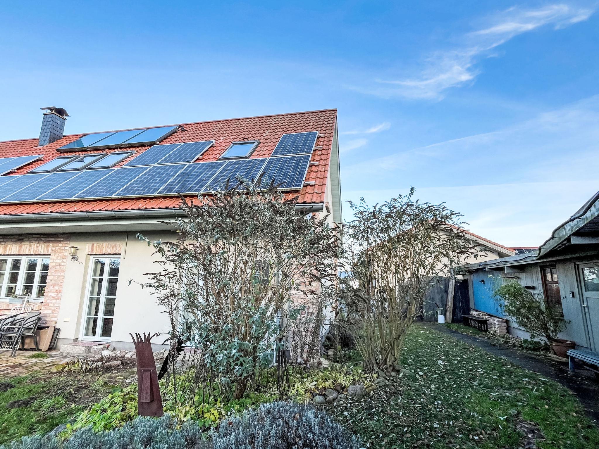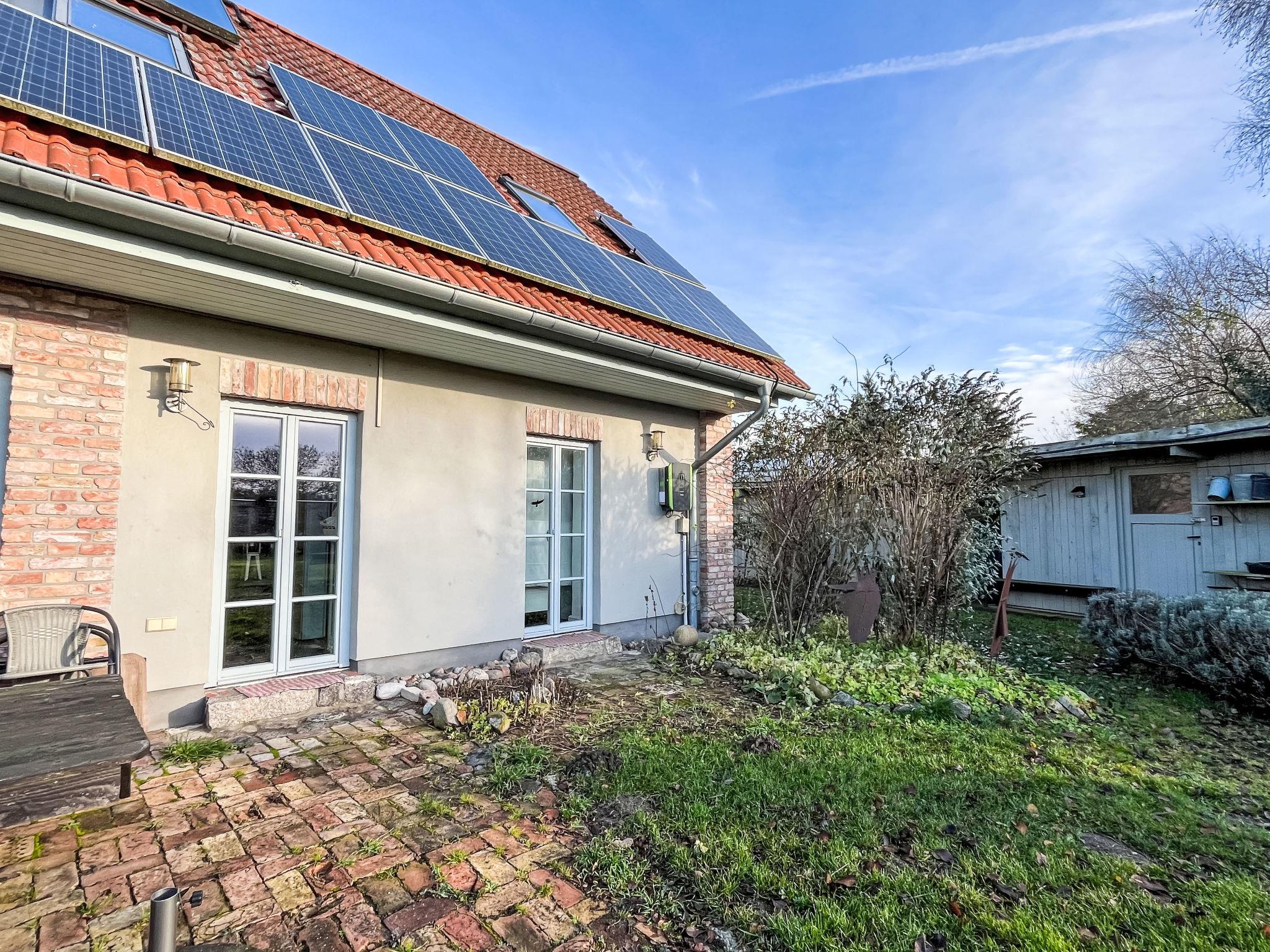 "Ferienscheune", 5-room cottage 160 m2 on 2 levels. Object suitable for 8 adults. Comfortable and cosy furnishings: living/dining room with Scandinavian wood stove, dining table and cable TV (flat screen), radio and CD-player. Exit to the garden, to the terrace. 1 room with 1 double bed (160 cm, length 200 cm). 1 room with 2 beds (90 cm, length 200 cm). Open kitchen (oven, dishwasher, 4 ceramic glass hob hotplates, toaster, kettle, electric coffee machine). Shower/WC. Upper floor: 1 room with 1 double sofabed (160 cm, length 200 cm). 1 room with 1 double bed (160 cm, length 200 cm). Bath/shower/WC. Comfortable furnishings in the country house style. Terrace. Terrace furniture. Beautiful view of the garden. Facilities: children's high chair, baby cot, hair dryer. Internet (WiFi, free). Parking (2 cars). Please note: suitable for families. Non-smokers only. Maximum 1 pet/ dog allowed.