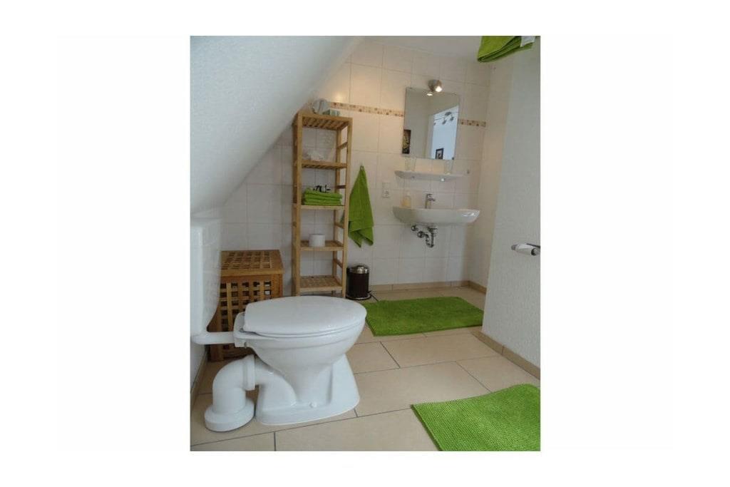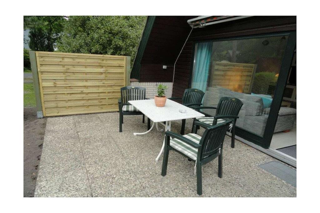 The house has three bedrooms and a living/dining area. Two of the three bedrooms are located on the upper floor, offering a good view of the garden and the development. A small garden shed offers space for bicycles, if you wish. Garden furniture and a barbecue are provided. The open-plan kitchen and shower room complete the living area. The furnishings and interior design are constantly kept as new and clean as possible. The house contains a comprehensive information folder with sights and excursion tips for the region. From the house, you can quickly reach heathland, forest, and meadow landscapes, which is particularly appreciated by dog owners.