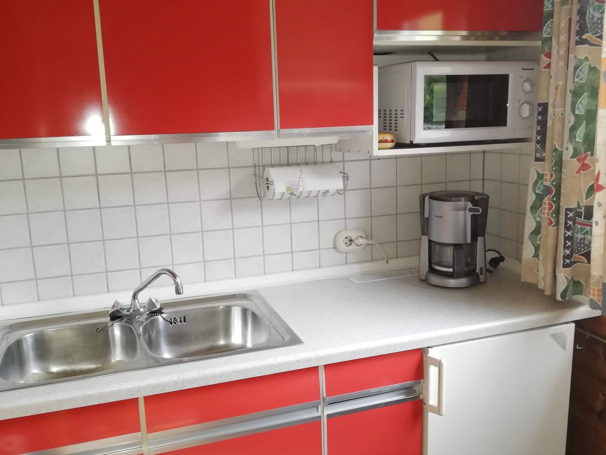 Das Ferienhaus verfügt über ein Schlafzimmer mit Doppelbett, ein Wohn-Esszimmer mit Kaminofen, ein Duschbad mit WC und Haarfön, eine Kücher mit Kaffeemaschine, Mikrowelle, Backofen und vielem Zubehör. 2 Terrassen (Ost und Süd) und einen Fahrradunterstand. Bettwäsche und Handtücher werden gestellt, Holz für den Ofen ist vorhanden.