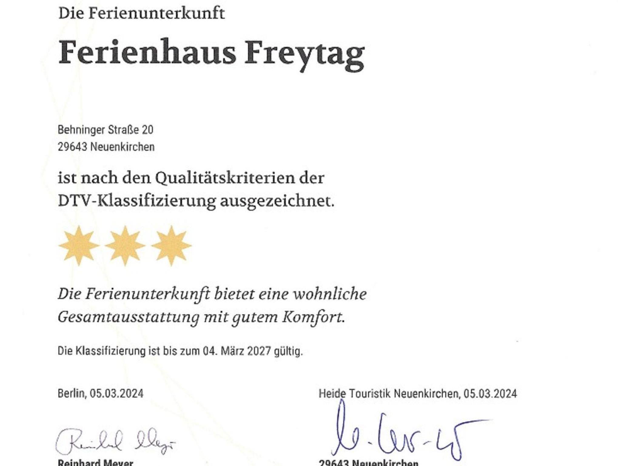 Das Ferienhaus Freytag liegt an einer ruhigen Stelle im Zentrum von Neuenkirchen. Es ist ein gemütlich, liebevoll eingerichtetes Nichtraucherhaus mit Vollausstattung auf großem Grundstück mit eingezäuntem Garten.