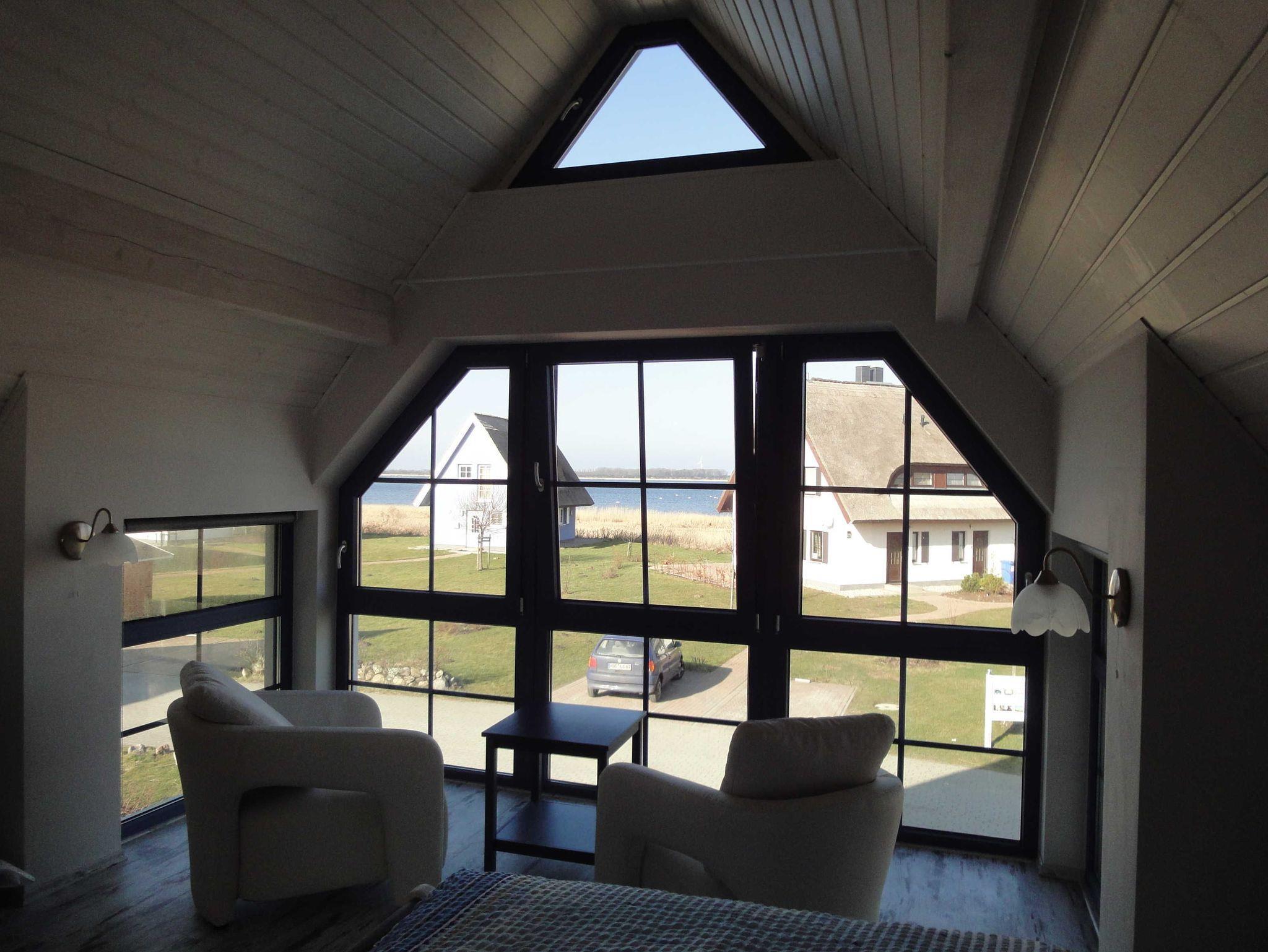 In jedem der zwei Schlafzimmer finden Sie ein bequemes Doppelbett. Das größere Schlafzimmer hat zudem eine gemütliche Sitzecke zum Lesen oder einfach den Blick schweifen lassen über die schöne Boddenlandschaft bis zum Leuchtturm auf Hiddensee.