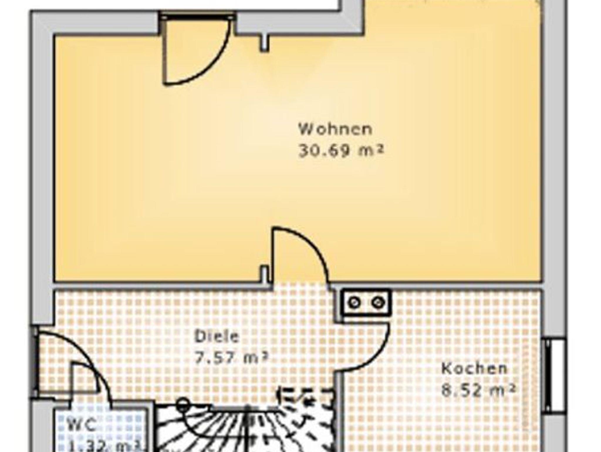 Das Haus verfügt über 3 Schlafzimmer und ein Duschbad im Obergeschoss, einer Küche, Gäste WC und dem Wohn-Esszimmer im Erdgeschoss und einer Sauner und einem