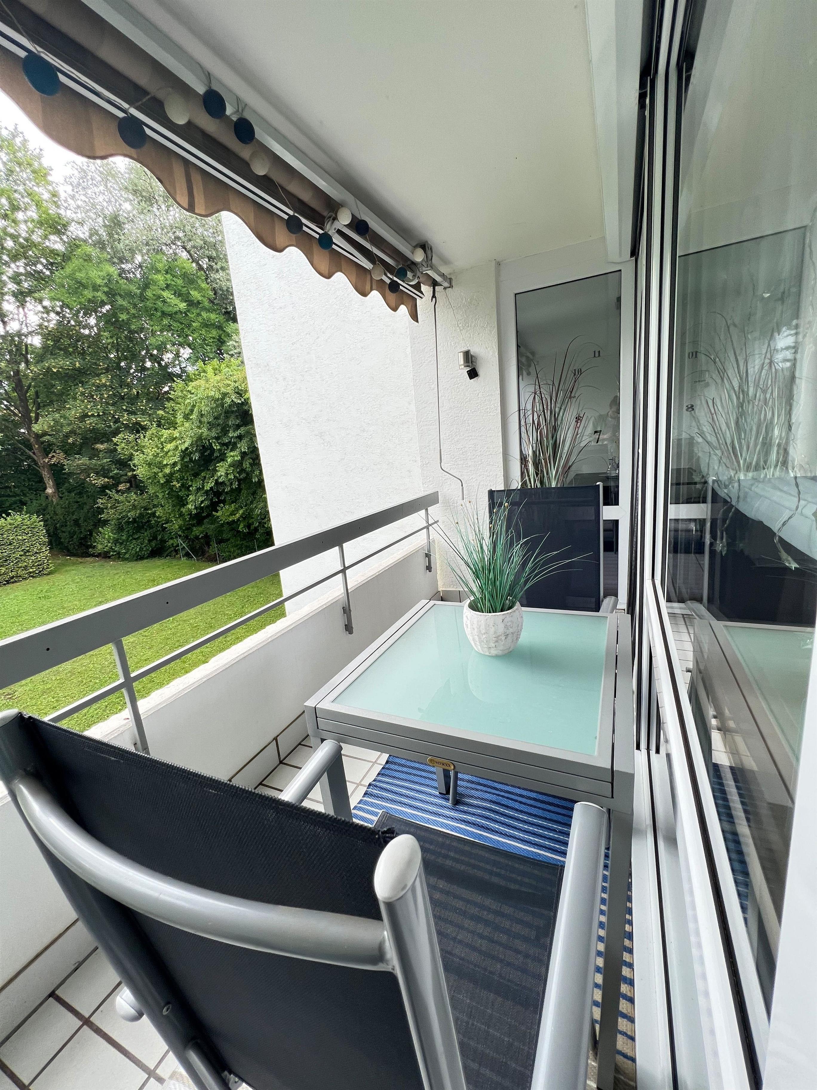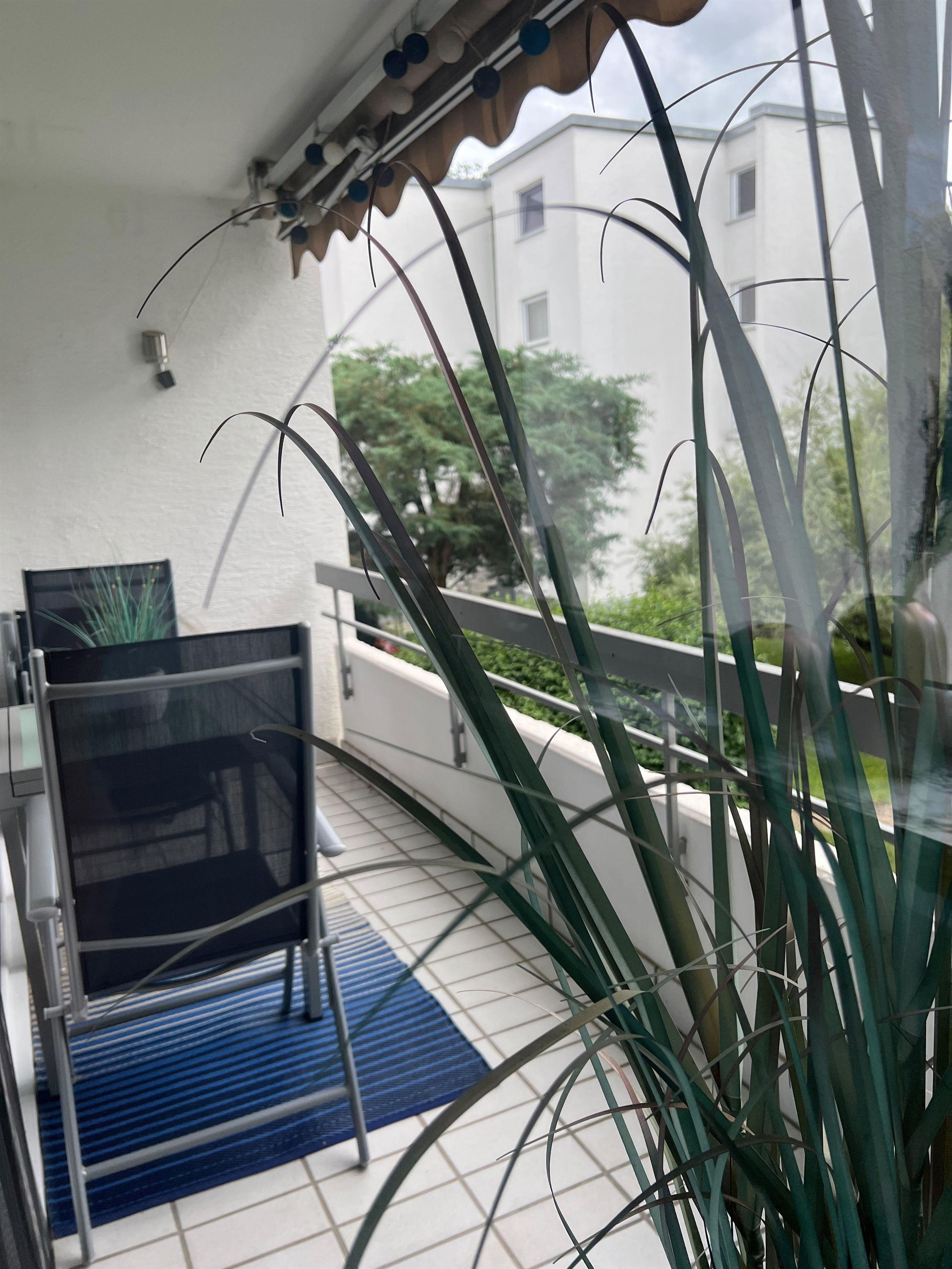 Die Wohnung ist ruhig gelegen, mit Blick direkt ins Grüne. Der gemütliche Balkon in mitten der Natur lässt Sie vom Alltag abschalten.