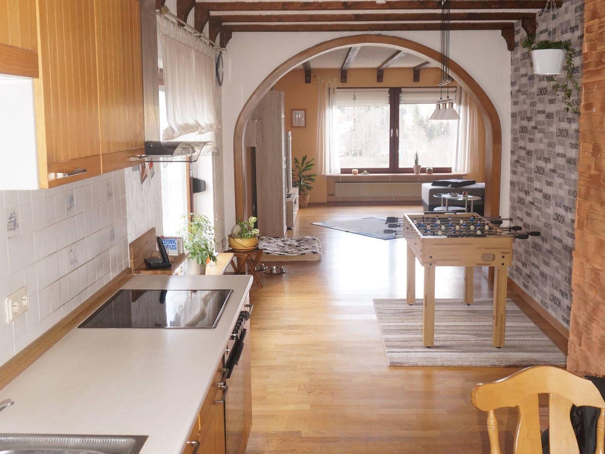 Wohnzimmer: Neben einem Fernseher haben Sie auch die Möglichkeit, den Tag bei einem gemeinsamen Tischfußballspiel ausklingen zu lassen. Von unserem Wohnzimmer haben Sie einen herrlichen Blick auf die Nachbargemeinde Züsch und in den Hochwald.