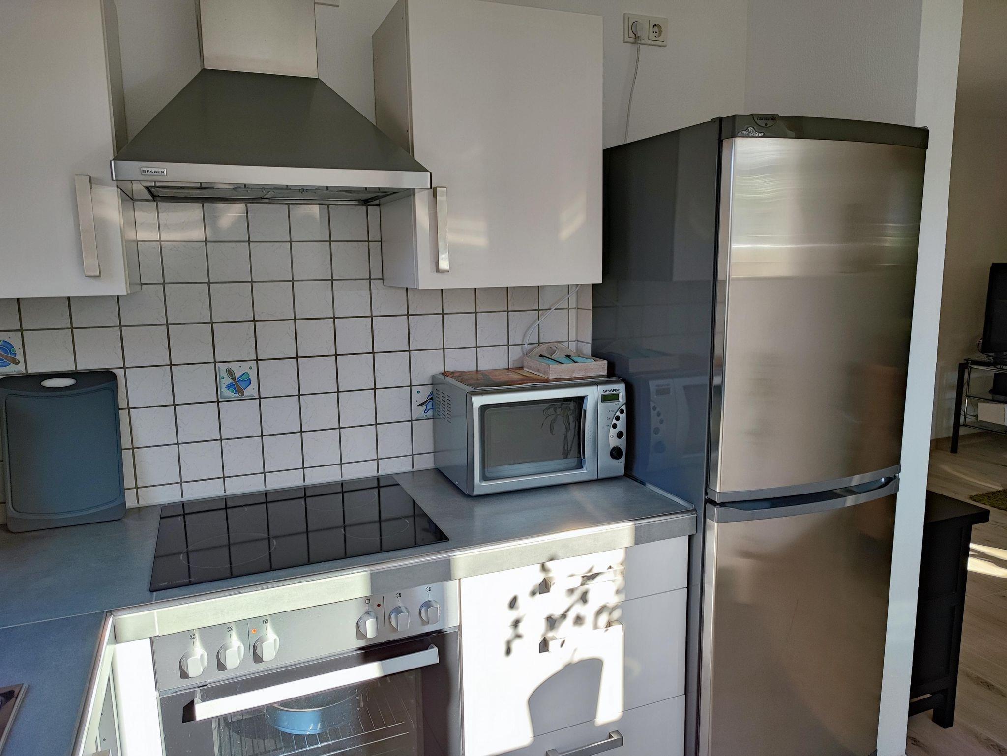 Auf einem Wohnraum mit 50m² finden Sie alles was Sie für einen angenehmen Aufenthalt benötigen. Unsere Nichtraucherwohnung ist mit einer hochwertigen Küche (Mikrowelle, Backofen, Wasserkocher, Eierkocher, Handmixer, Kühlschrank, Gefrierschrank, Kaffeemaschine, Gewürze, Staubsauger usw.), einem Schlafzimmer, einem Bad mit Dusche und sogar mit einem Kamin (incl. 1 Korb Brennholz gratis) im Wohnzimmer ausgestattet ist. Das Doppelbett hat eine Größe von 1,6 x 2,00 Meter. Alle Räume sind mit hochwertigen Fliesen und Fußbodenheizung ausgestattet. Freies WLAN und Sat-TV sind natürlich ebenso vorhanden wie Handtücher und Bettwäsche. Zum Zeitvertreib ist auch eine Spielekonsole Nintendo mit diversen Spielen vorhanden. Zusätzliche Decken und Kopfkissen können auf Wunsch bereit gestellt werden. Zur Wohnung gehört auch eine Terrasse, auf der Sie gemütlich ausspannen können. Ein abschliessbarer Abstellraum (Garage) sowie ein kleiner Spielplatz sind ebenfalls vorhanden.