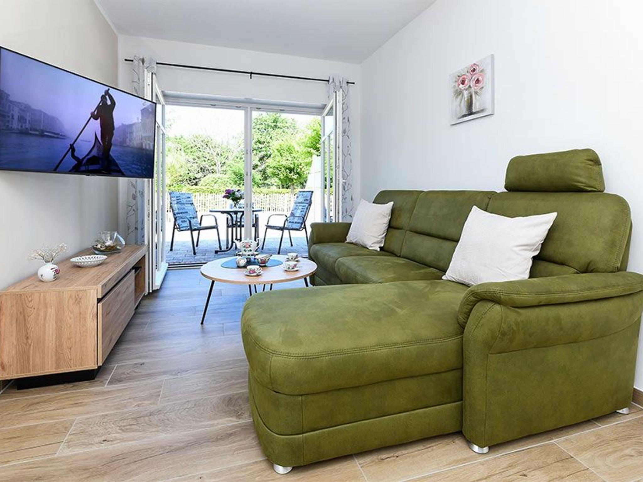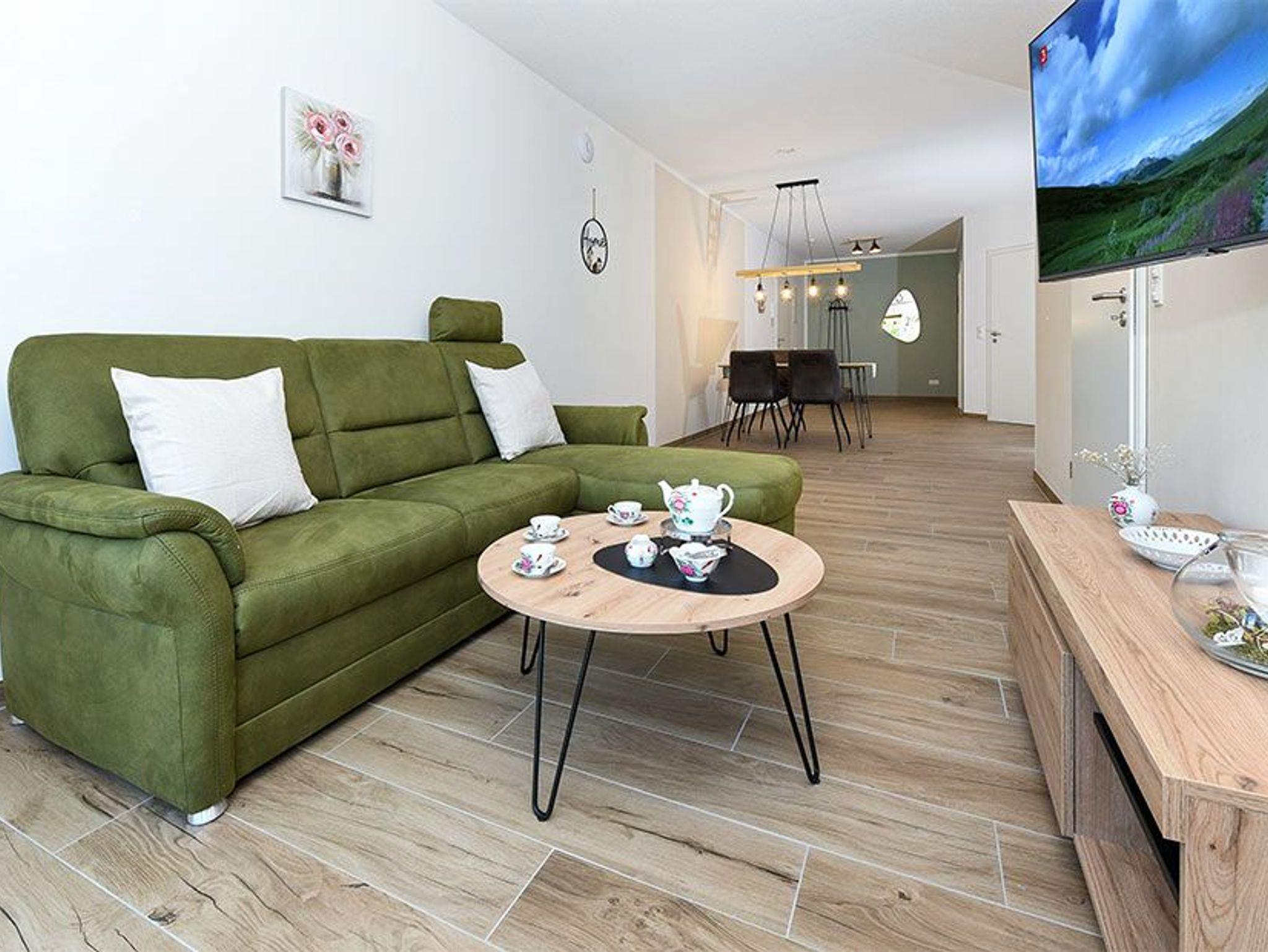 Größe ca. 72 Quadratmeter, Wohnraum mit integrierter Küche, Schlafzimmer, Badezimmer mit Badewanne, Dusche, Waschtisch, WC, Ersgeschoss, Terrasse, Koffer-/Abstellraum, optimal für 1 bis 2 Personen und zusätzlich ein Kleinkind.