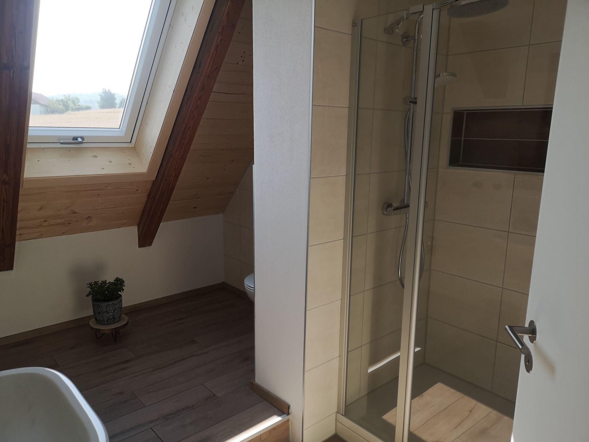 The flat is located in the attic. The roof has been heavily insulated so that you don't have to worry about cooking up there in summer and freezing in winter :). Two horses and chickens live on the farm. There is a recreation room in the barn with darts, table football and table tennis. For children we also have a tree house and two mountain go-karts.