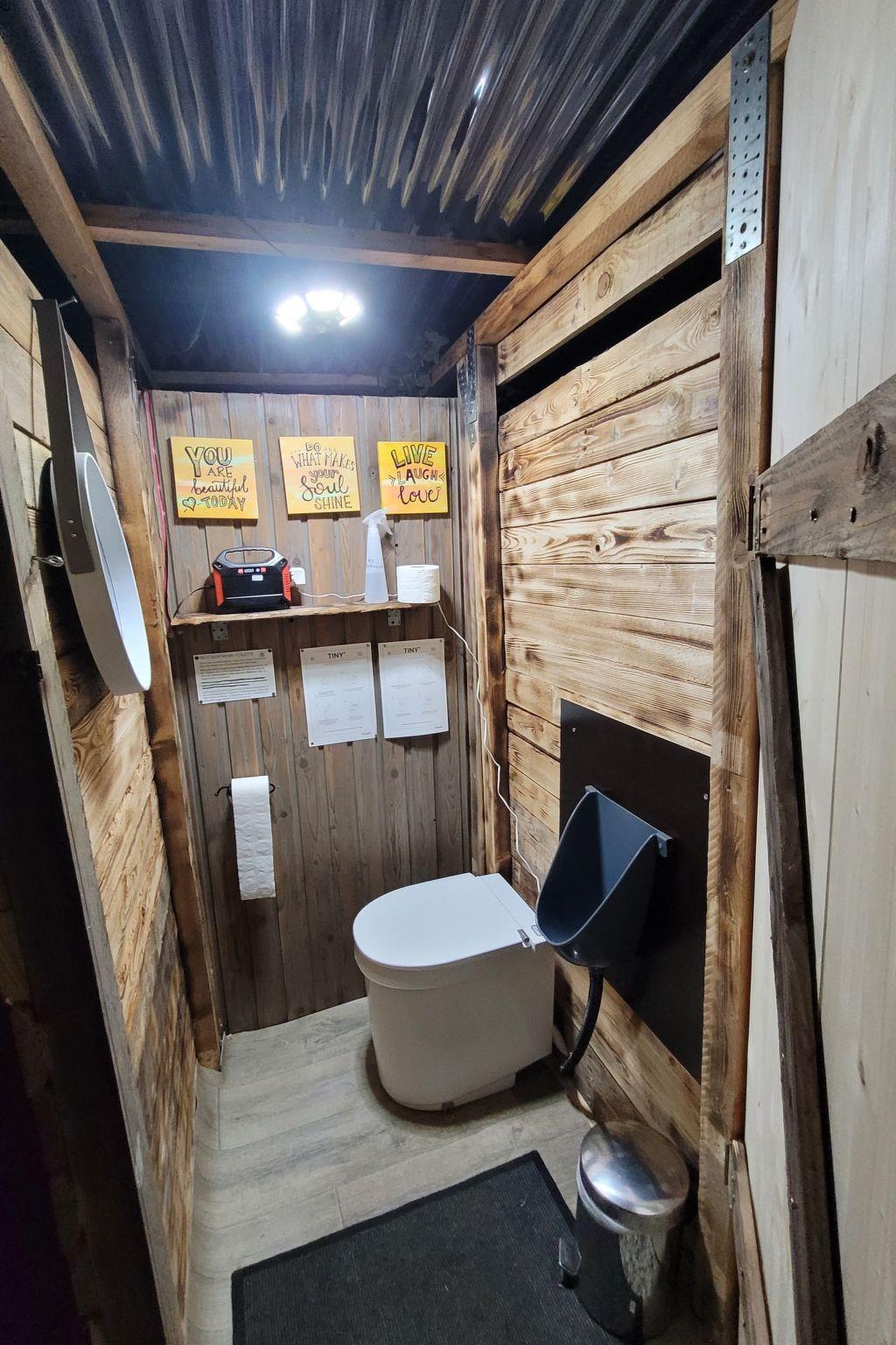 ? A simple dry toilet with washing facilities is located in a hut next to the bubble. A guest bathroom with running drinking water and a shower is located in the inner courtyard approx. 30 metres away.