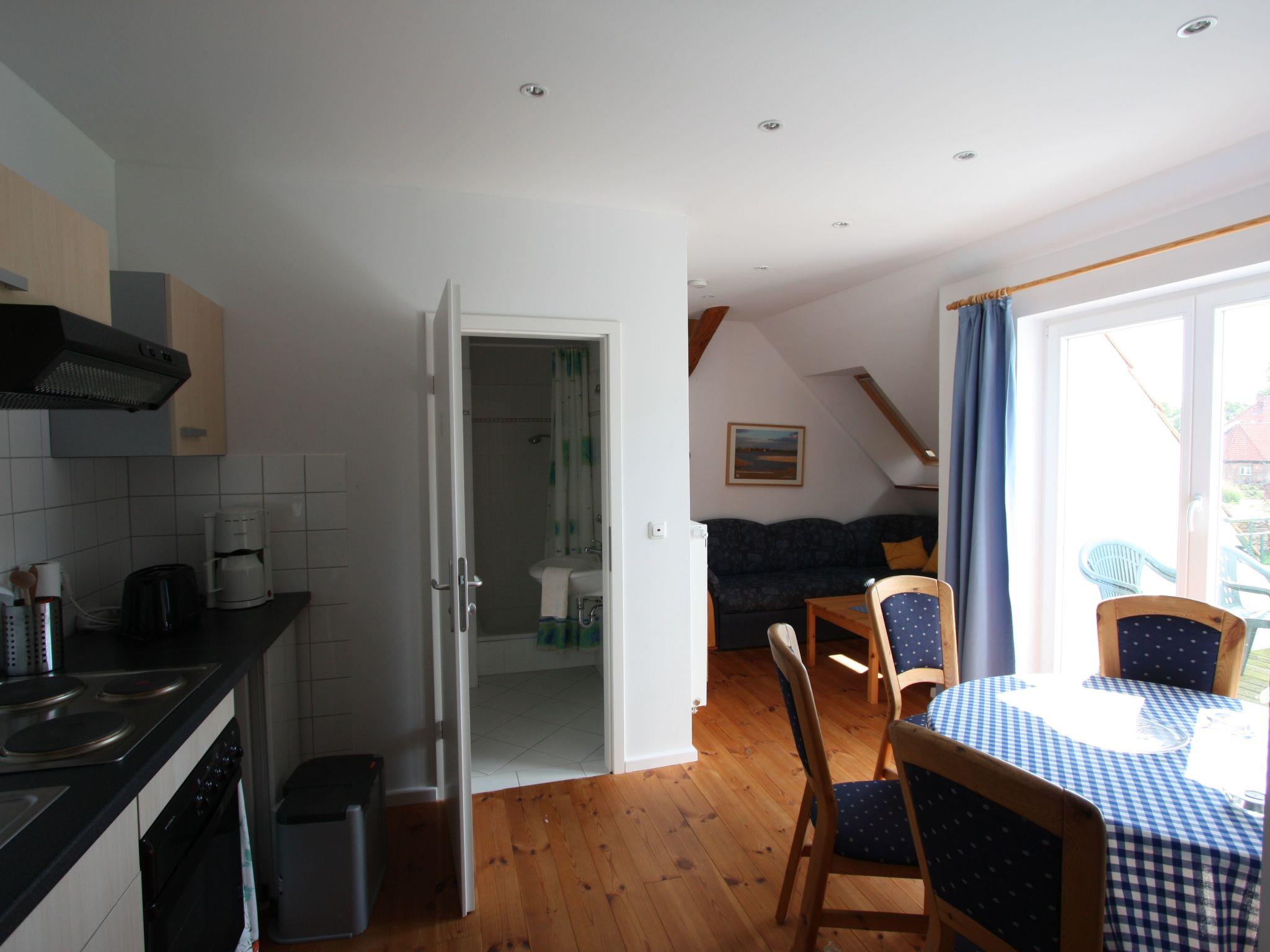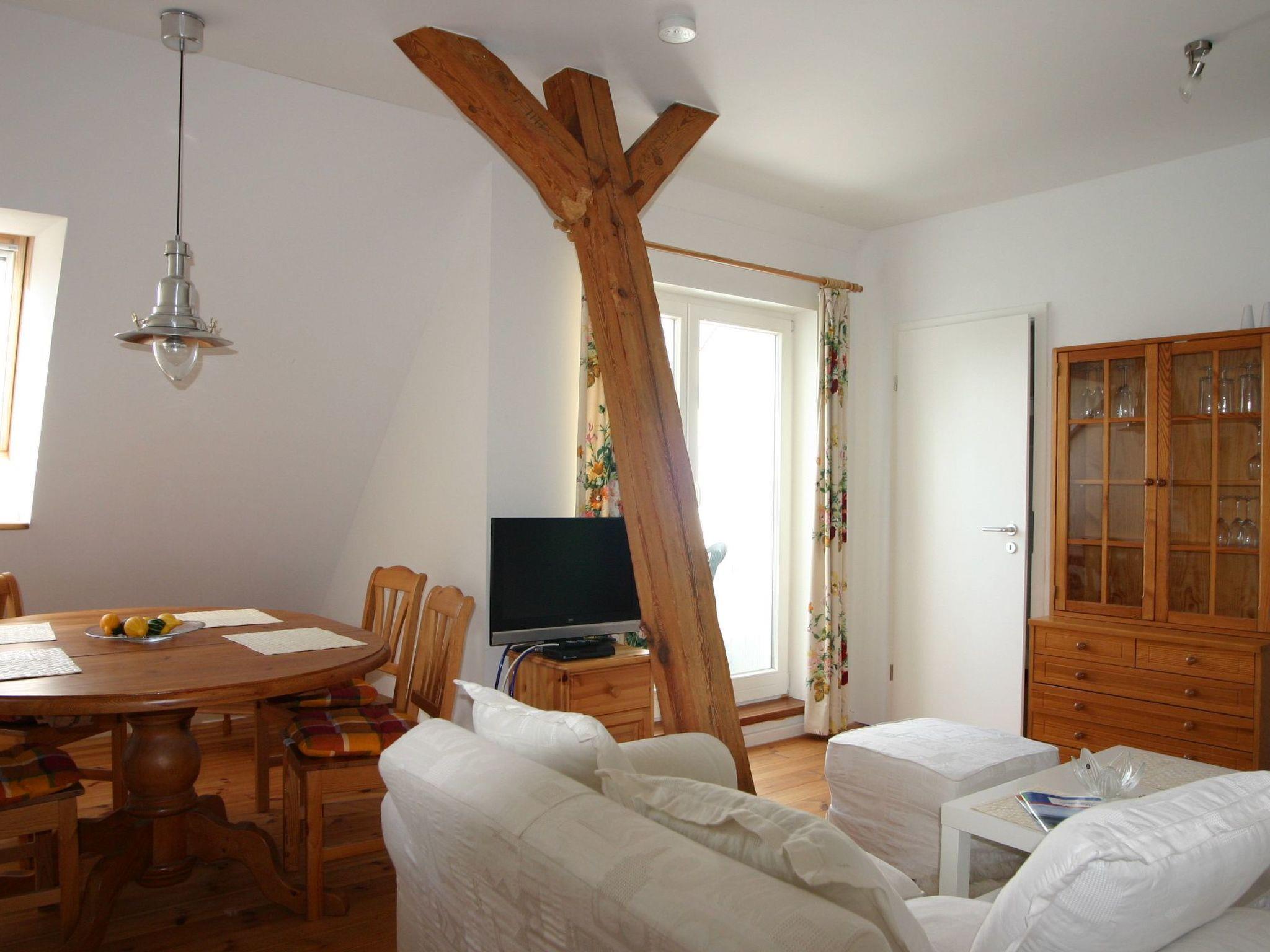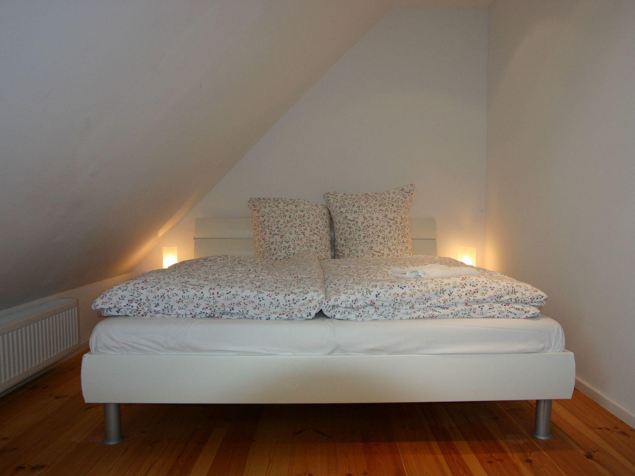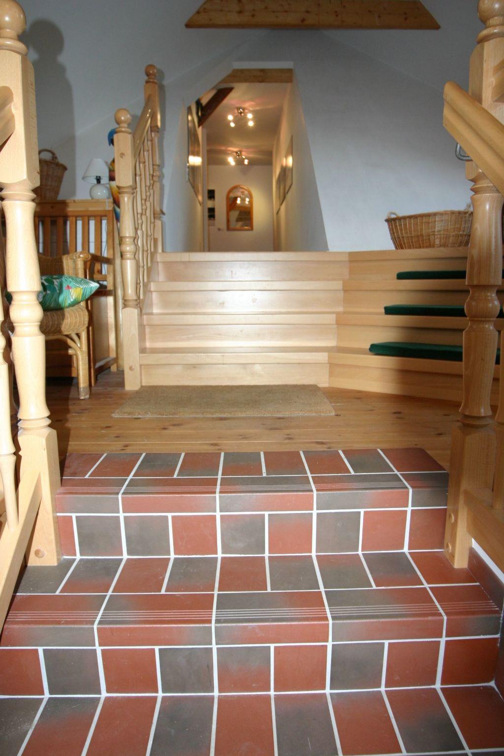 Adjacent to the Art Nouveau house, we have furnished our 7 picturesque holiday flats with balconies for 3-5 people in the former stable building with gable. The house has an oiled wooden floor, with the exception of the ground floor area of the lounge with gallery, which has a red-brown tiled floor. The visible old beams in all areas create a cosy, relaxing atmosphere. The conference and recreation rooms and our small restaurant are located in this part of the building. Particularly popular is the lounge with gallery, which has emerged from the Göpel (round building, former utility room). Guests like to meet here for a meal together. The piano in the centre of the room on the ground floor can really raise the mood! A small, visually separable kitchen with dishwasher and 2 hobs with oven is located on the right-hand side of this part of the ground floor. In the centre, the staircase leads to the gallery and the 7 holiday flats. In the left-hand area is the long table for a maximum of 25 people. The ground floor is equipped with additional underfloor heating and direct access to the garden. On the gallery you will find various upholstered seating groups for cosy get-togethers, for games, for discussions and a TV area.via a small staircase you reach the adjoining corridor with the 7 flats.flat 1, three-room flat bath tub kitchen area: electric cooker with oven, refrigerator, coffee maker, toaster bedroom with double bed, 2nd bedroom with "bunk bed" (bed with pull-out bed for max. 2 persons) living room with adjoining balcony.Flat 2, three-room flat with shower room Kitchen area: electric cooker with oven, fridge, coffee maker, toaster Bedroom with double bed, 2nd bedroom with 2 single beds Electric cooker with oven, fridge, coffee maker, toaster Living room with adjoining balconyApartment 3, two-room flat with shower room Kitchen area: electric cooker with oven, fridge, coffee maker, toaster Double bedroom, living room with double sofa bed Living room with adjoining balcony.Flat 4, two-room flat with shower bath Kitchen area: electric cooker with oven, fridge, coffee machine, toaster Double bedroom, bed-sitting room with single bed 100x200 (slatted frame and mattress) Living room with adjoining balconyApartment 5, two-room flat with shower bath Kitchen area: electric cooker with oven, fridge, coffee machine, toaster Double bedroom, bed-sitting room with double sofa bed Living room with adjoining balcony.Flat 6, one-room flat with shower bath Kitchen area: electric cooker with oven, fridge, coffee machine, toaster Living room with double bed and double sofa bed and adjoining balcony Apartment 7, two-room flat with shower bath Electric cooker with oven, fridge, coffee machine, toaster Double bedroom, living room with single bed 100x200 bed linen box, double sofa bed for 1-2 persons Living room with adjoining balcony.