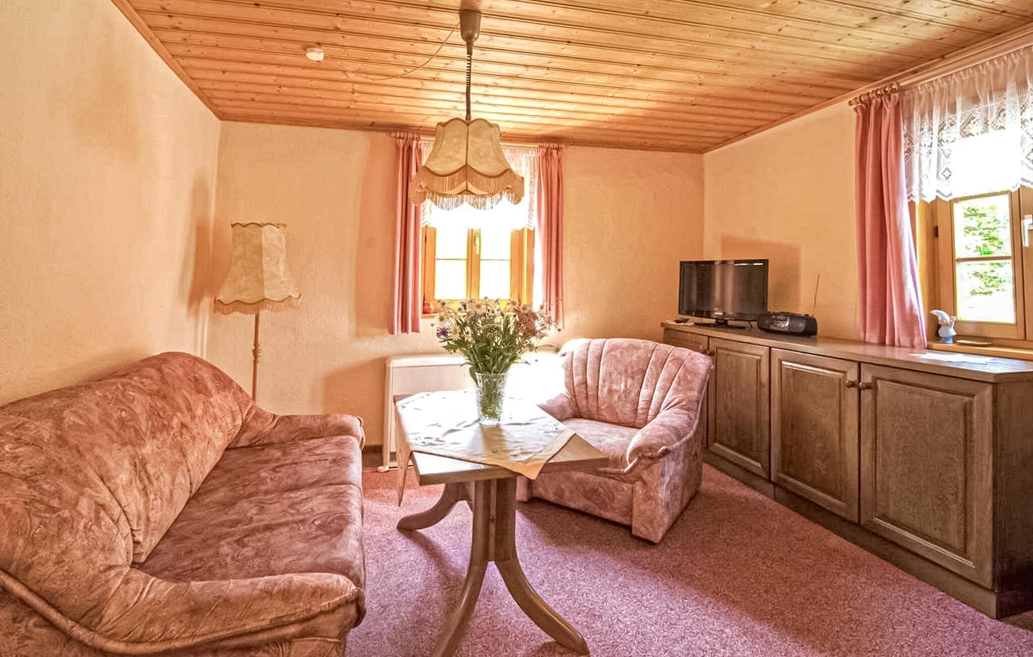 Nur ca. 200 m vom angestauten Rauschenbach entfernt, liegt auf dem ca. 1.800 qm großen Grundstück das 1841 erbaute und 1997 nach denkmalgeschützten Aspekten sanierte Ferienhaus mit 4 separaten Ferienwohnungen und einem Ferienzimmer. Die Wohneinheiten sind über drei Etagen verteilt und bieten insgesamt Platz für bis zu 21 Gäste.Im Erdgeschoss befindet sich ein rustikaler Aufenthaltsraum (CD-Player vorhanden) für ca. 25 Personen mit separater Küche inkl. Geschirr, Kühlschrank, Mikrowelle, Backofen und Geschirrspüler, der sich hervorragend für Gruppen und Familienfeiern eignet.