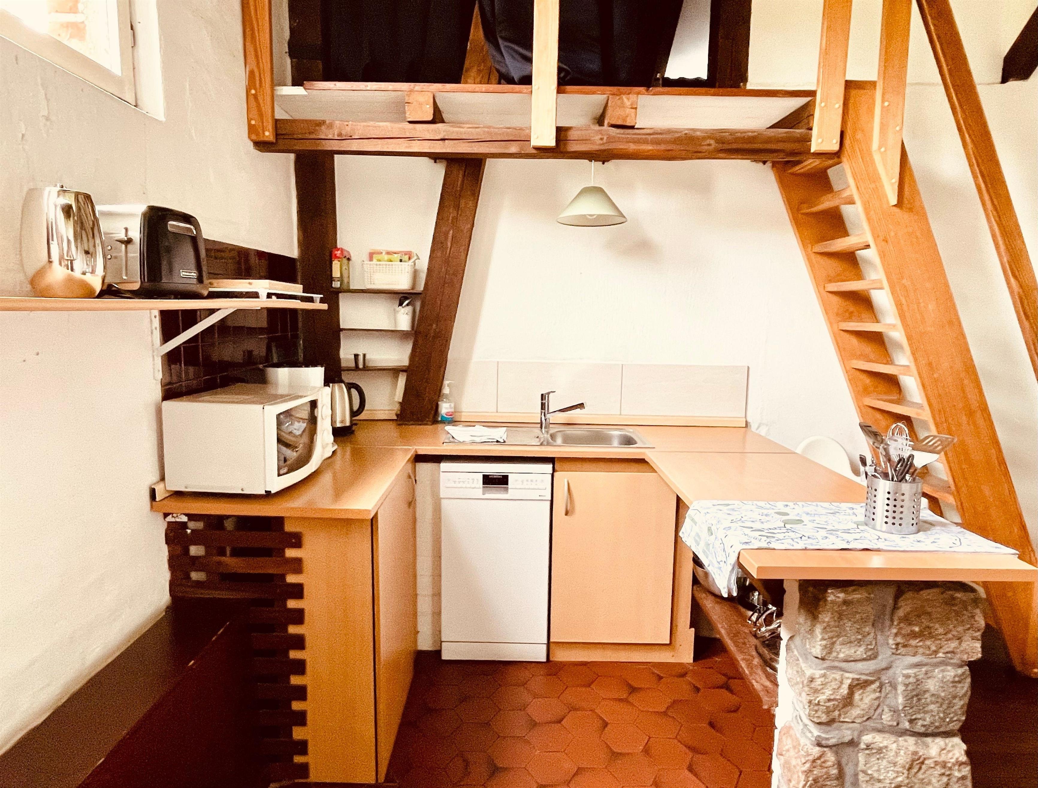 Extra Küche mit Essplatz: Geschirrspüler Ceranfeld, Backofen, Mikrowelle, Kaffeemaschine Toaster etc.
