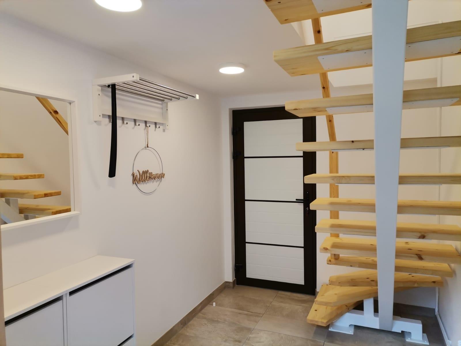 Die Unterkunft verfügt über einen separaten Eingang, kostenfreies WLAN, zwei Schlafzimmer inkl. Bettwäsche, ein Duschbad inkl. Handtücher sowie einem großen und gemütlichen offenen Wohn- und Kochbereich mit Wohnlandschaft, Küchenzeile und einem großen Tisch mit 6 Stühlen.