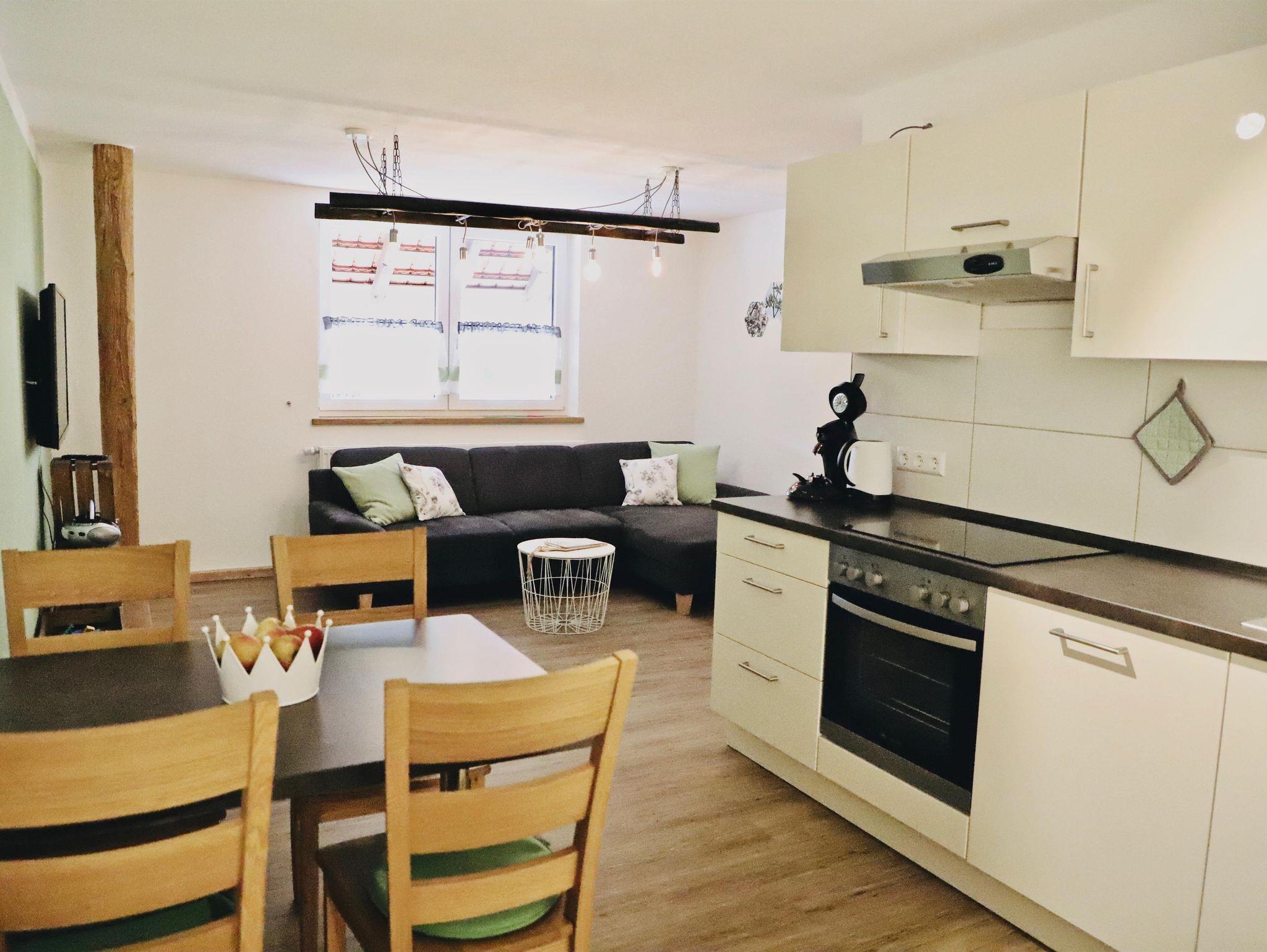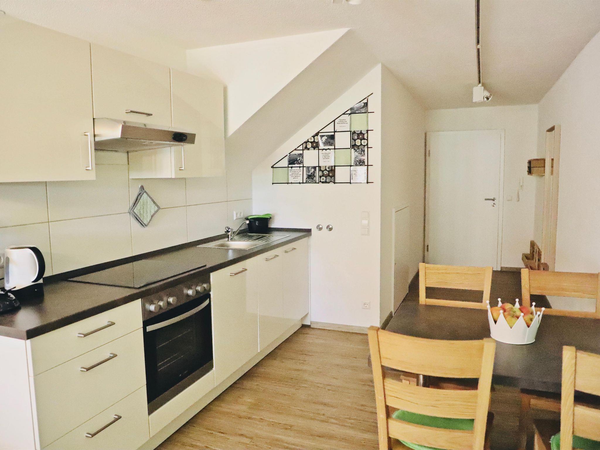 Unsere Maisonette-Ferienwohnung „Im Obstgärtle“ - benannt und entsprechend eingerichtet nach unserem Tätigkeitsbereich Herstellung von Obstbränden - ist etwa 55 m² groß und erstreckt sich über das Ober- und Dachgeschoss. Im unteren Stockwerk befindet sich ein gemütlicher Wohn-, Essbereich mit gut ausgestatteter Küchenzeile. Im oberen offenen Stockwerk liegt das Schlafzimmer – extra auch für „Große“ mit einer Bettenlänge von 2,20 m – sowie das Badezimmer mit begehbarer Dusche. Möglichkeit einer Schafcouch und eines Ausziehbettes ermöglichen auch eine Übernachtung von bis zu vier Personen. Baby- bzw. Kleinkindausstattung inkl. Treppenschutzgitter ist vorhanden. Im Garten steht Ihnen eine bevorzugte Sitzmöglichkeit zur Verfügung.