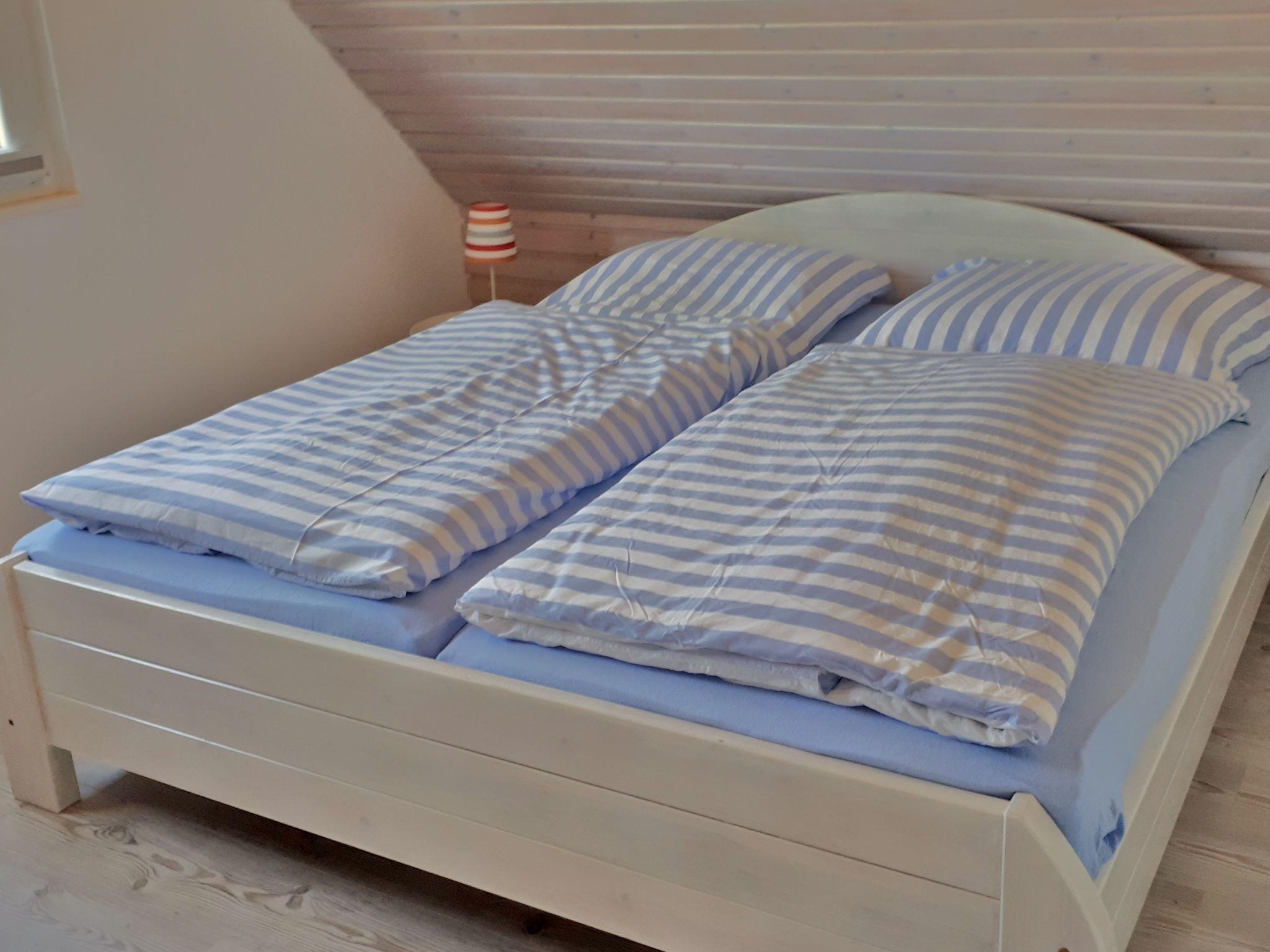 With a size of approx. 75 square metres, the house offers space for 4-5 people. It has electric heating. There is also a fireplace in the living area. On the ground floor there is a fully equipped open-plan kitchen with microwave, freezer and dishwasher. From the dining area you have a marvellous view of the Baltic Sea. The living area has a comfortable settee with armchair. There you will find the television and the dig. Stereo system. The two bathrooms are equipped with a shower. The corridor separates living and sleeping areas. On the other side is a bedroom with a 140 x 200 cm bed and a shower room. There are 2 bedrooms on the upper floor. 1 bedroom with a 180 x 200 cm double bed and 1 children's room with a 90 x 200 cm pull-out youth bed. A cot with mattress and accessories as well as a pushchair are available. There is no washing machine in the house. Please bring your own towels and bed linen.