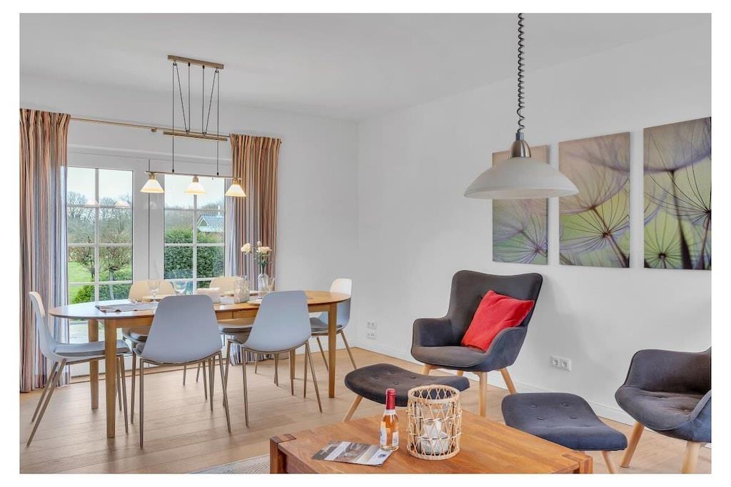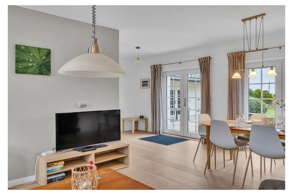 Welcome to the "Steilküste" holiday home in Neukirchen – your idyllic vacation retreat with a direct view of the Baltic Sea! This cozy holiday home is ideal for up to four people and offers everything you need for a relaxing vacation. Upstairs, a comfortable bedroom awaits you, where you can wake up to the soothing sound of the waves – a perfect start to the day. The living area on the ground floor features a comfortable sofa bed, providing additional sleeping space, as well as a seating area perfect for relaxing. The bathroom is equipped with a shower for your convenience. The fully equipped kitchen has everything you need to make yourself at home, whether you're preparing a leisurely breakfast or a cozy dinner. Enjoy your meals in the spacious living and dining area or on the terrace while taking in the view of the vast Baltic Sea. A special highlight of the holiday home is the expansive garden with its generous terrace. Here you can enjoy the fresh sea air with a coffee, soak up the sun on a lounger, or spend a cozy barbecue evening with your loved ones. The "Steilküste" holiday home is also a paradise for dogs – your four-legged friend is warmly welcomed and can roam freely in the garden. Experience unforgettable moments in nature, take long walks along the cliffs, and discover the beauty of the surroundings. Whether in summer under brilliant sunshine or in winter when the Baltic Sea unfolds its rugged and impressive atmosphere – the "Steilküste" holiday home offers the perfect retreat for rest and relaxation in every season.