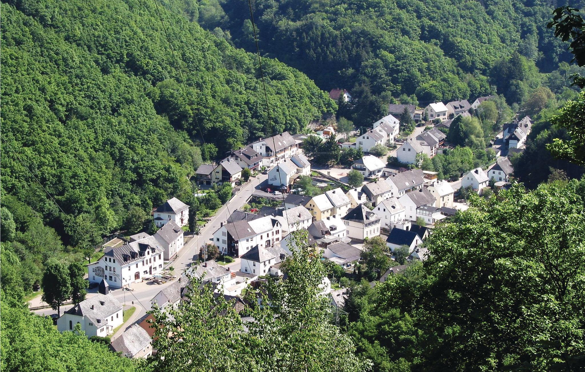Dieses Ferienhaus steht in der Nähe von Neumagen, einem Ferienort an der Mosel, der etwa 25 km südwestlich von Bernkastel-Kues und 35 km nordöstlich von Trier liegt. Dieser Teil Deutschlands, mit seinen jahrhundertealten Ortschaften, ausgedehnten Weinbergen und wunderschönen Flusslandschaften ist ein Urlaubsgebiet erster Klasse. Sie finden hier ideale Voraussetzungen für herrliche Radtouren und nette Ausflüge zu den sehenswerten Städten der Umgebung. Auf jedem Fall sollten Sie Trier besuchen, wo die Römer einst die schönsten Gebäude und Bauwerke errichteten. Weitere Attraktionen in der Region sind der Erbeskopf, die Sommerrodelbahn sowie der Kletterpark, und es gibt eine ganze Auswahl an sehenswerten Burgen und Festungen. Das Ferienhaus steht in hervorragender Lage am Ende eines Weges, in unmittelbarer Nähe des Drhon-Baches in dem kleinen Dorf Papiermühle, das umgeben von Wäldern etwa 5 km südöstlich von Neumagen liegt. Sie bewohnen die Parterrewohnung an der Rückseite des freistehenden Hauses. Das Wohnzimmer liegt mitten in der Wohnung und verfügt nicht über ein Fenster nach draußen. Schlafzimmer 3 ist zugänglich über Schlafzimmer 2. Waschmaschine gegen Gebühr.
