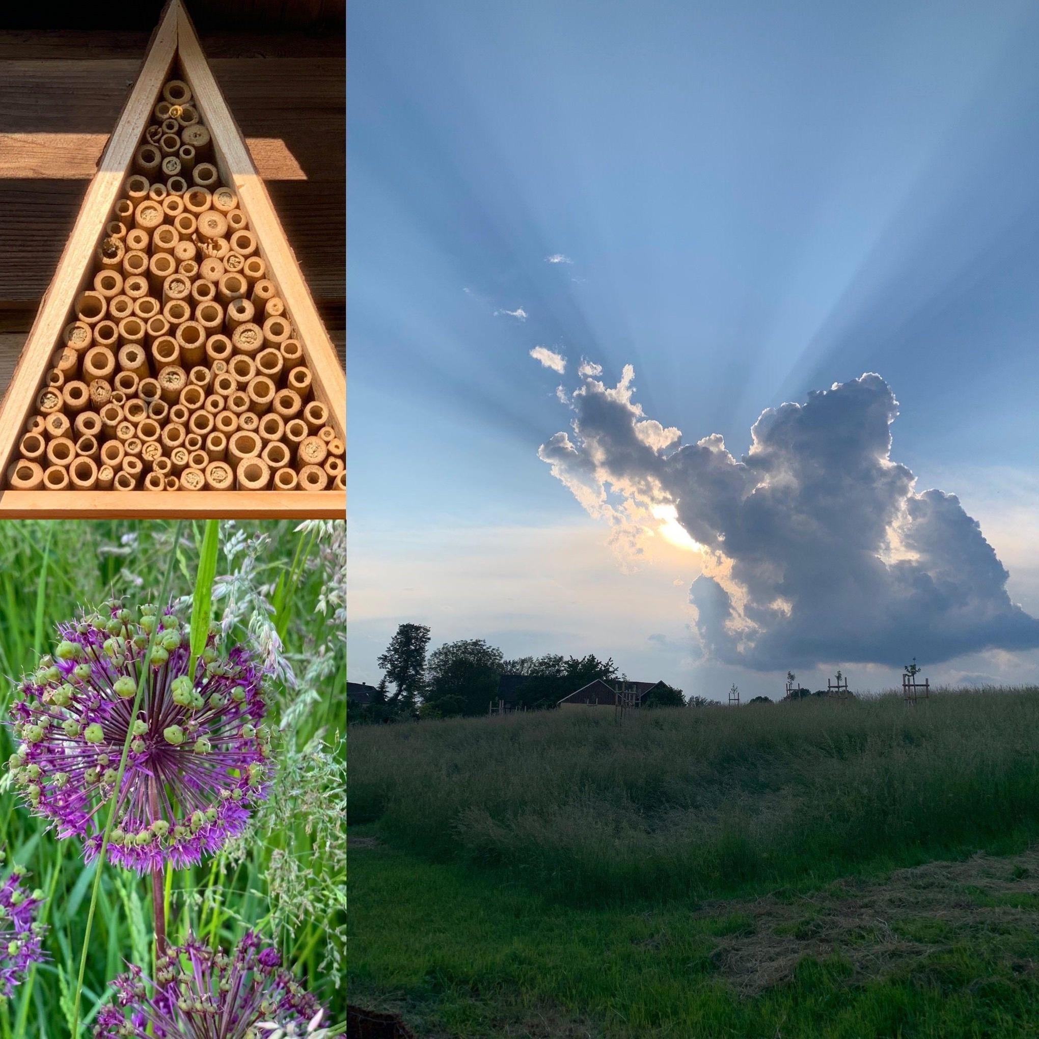 Auf dem über 3000qm großen Grundstück pflanzen wir eine Streuobstwiese an. Die Schafe unseres Nachbarn sind meist nicht weit.