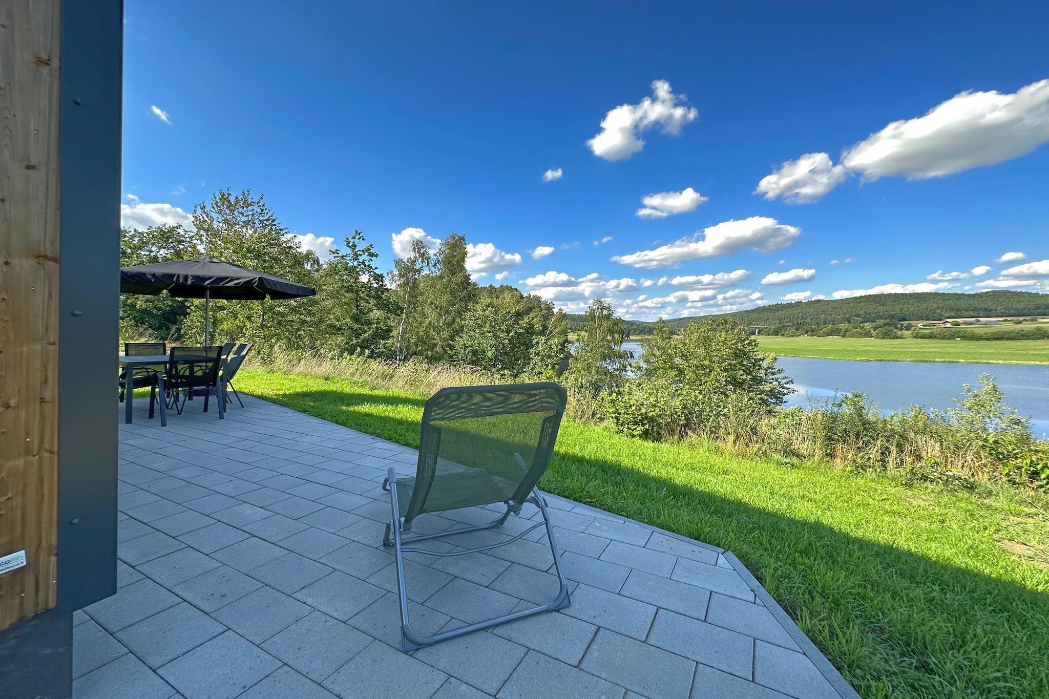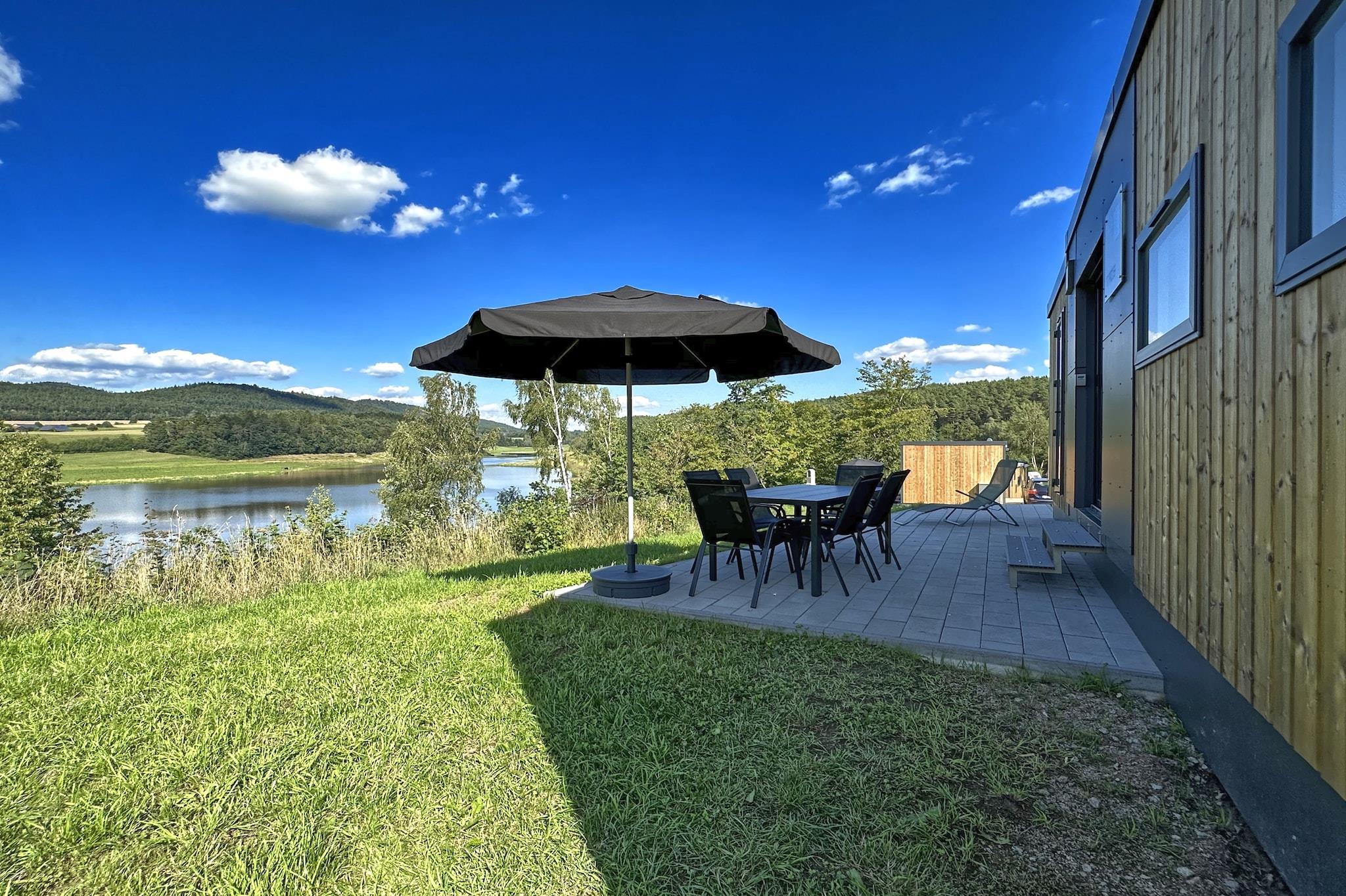 Welcome to the tranquil Seeblick holiday village, nestled on the shores of Lake Eixendorf in the Upper Palatinate Forest. This cozy tiny chalet offers space for families, couples, or friends seeking peace and nature. Inside, you'll find a fully equipped open-plan kitchen, living-dining area, three bedrooms, and two bathrooms, all designed for comfort and privacy. Step onto your private terrace with a fireplace grill, garden furniture, parasol, and sun loungers, perfect for lakeside relaxation. Amenities include WiFi, TV, dishwasher, and private parking. The surrounding region is a haven for hiking, cycling, fishing, sailing, and golfing, with scenic trails winding through moors and mountains. Whether you're after adventure or serenity, the Oberpfälzer Seenland offers a rich mix of leisure, culture, and natural beauty.