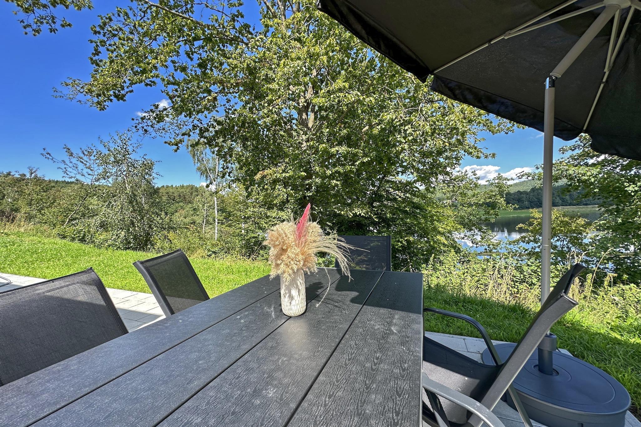 Welcome to the serene Seeblick holiday village, nestled beside Lake Eixendorf in the heart of the Upper Palatinate Forest. This peaceful retreat features around 10 charming tiny chalets, each thoughtfully designed for families, couples, or friends seeking relaxation and nature. Your chalet includes a fully equipped open-plan kitchen, a cozy living-dining area, three bedrooms, and two bathrooms, offering comfort and privacy. Step onto your private terrace with a fireplace grill, garden furniture, parasol, and sun loungers, perfect for lakeside lounging. Amenities include WiFi, TV, dishwasher, and private parking. Whether you're planning a quiet escape, a cycling adventure, or a family holiday, the Oberpfälzer Seenland delivers. Explore scenic trails, moorlands, and nearby mountains, or enjoy fishing, sailing, and golfing in the immediate area. With cultural attractions and outdoor activities for every taste, this lakeside haven promises a truly unforgettable stay.