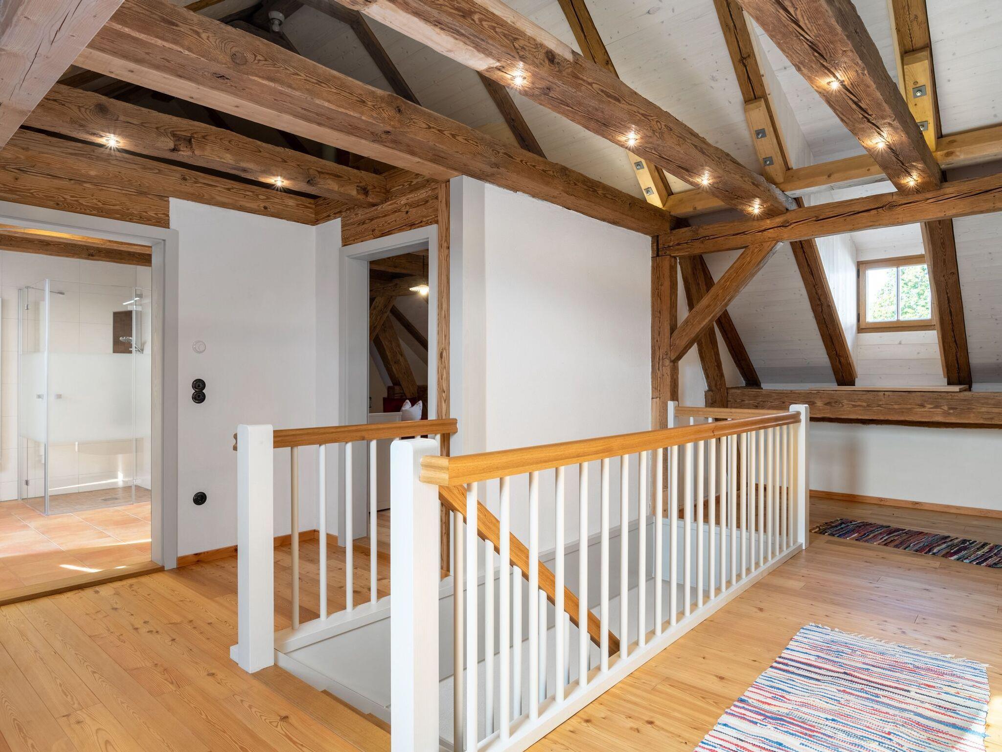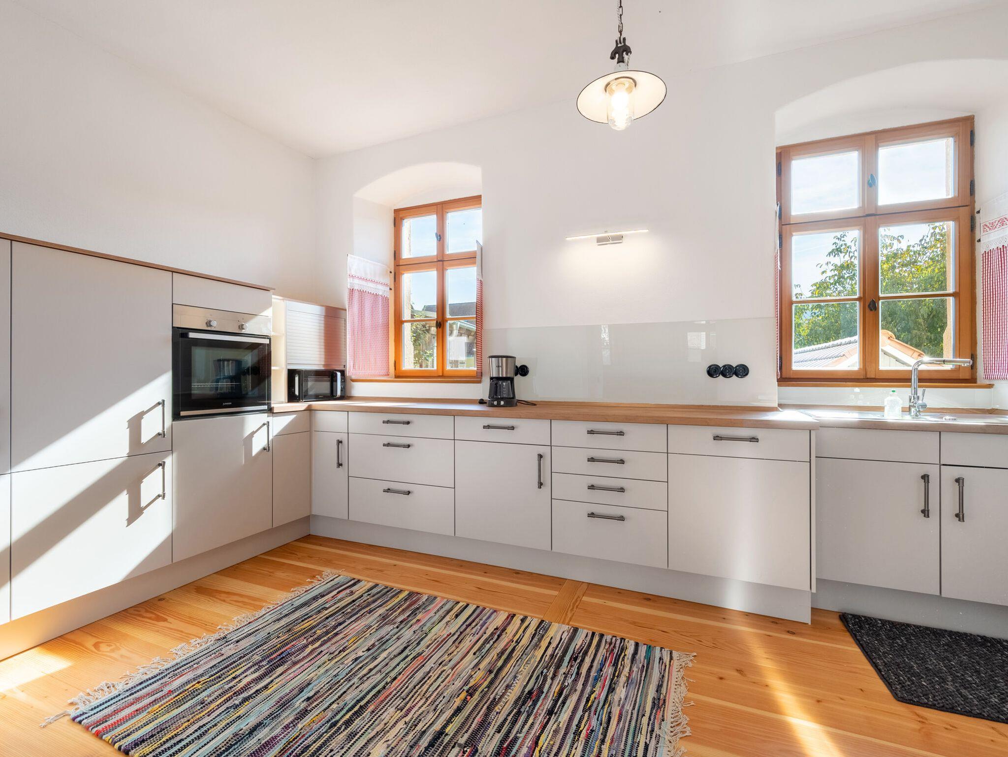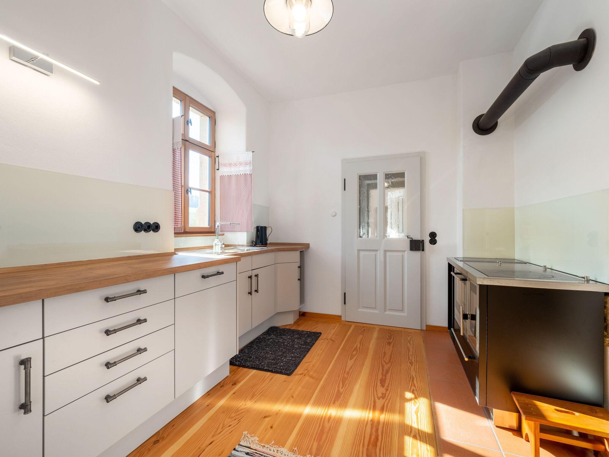 Das denkmalgeschützte freistehende Ferienhaus liegt in Mitterauerbach, einem kleinen Dorf in der Gemeinde Neunburg vorm Wald in der Oberpfälzer Seenlandschaft. Das Haus wurde um 1850 von der Kirche als Dienstwohnung für den Mesner errichtet. In den Anfangsjahren diente es auch als Schulhaus. Nachdem es 40 Jahre leer stand, wurde es 2014 vom Vermieter erworben und in den Jahren 2018 bis 2020 aufwendig und umsichtig generalsaniert. Es entstand ein kleines Juwel mit hellen Räumen, offenen Balkendecken, Gewölbedecken und einem historischen Kachelofen. Zum Haus gehört ein kleiner Garten mit Terrasse. Die lage im Oberpfälzer Wald lädt zum Wandern und Radfahren direkt ab Haustüre ein. Besuchen Sie die nahen Seen zum Baden, Wasserski, Segeln, Surfen und Tauchen. Die größte begehbare Erlebnisholzkugel der Welt am Steinberger See bietet einen wunderbaren Blick über die Landschaft. Auch ein Golfplatz liegt in 4 km Entfernung. Ausflüge in der Umgebung bieten sich an: Neunburg vorm Wald, Schwandorf mit seinen Felsenkellern, Regensburg, Amberg und Weiden. Aber auch der Bayerische Wald liegt nicht weit.