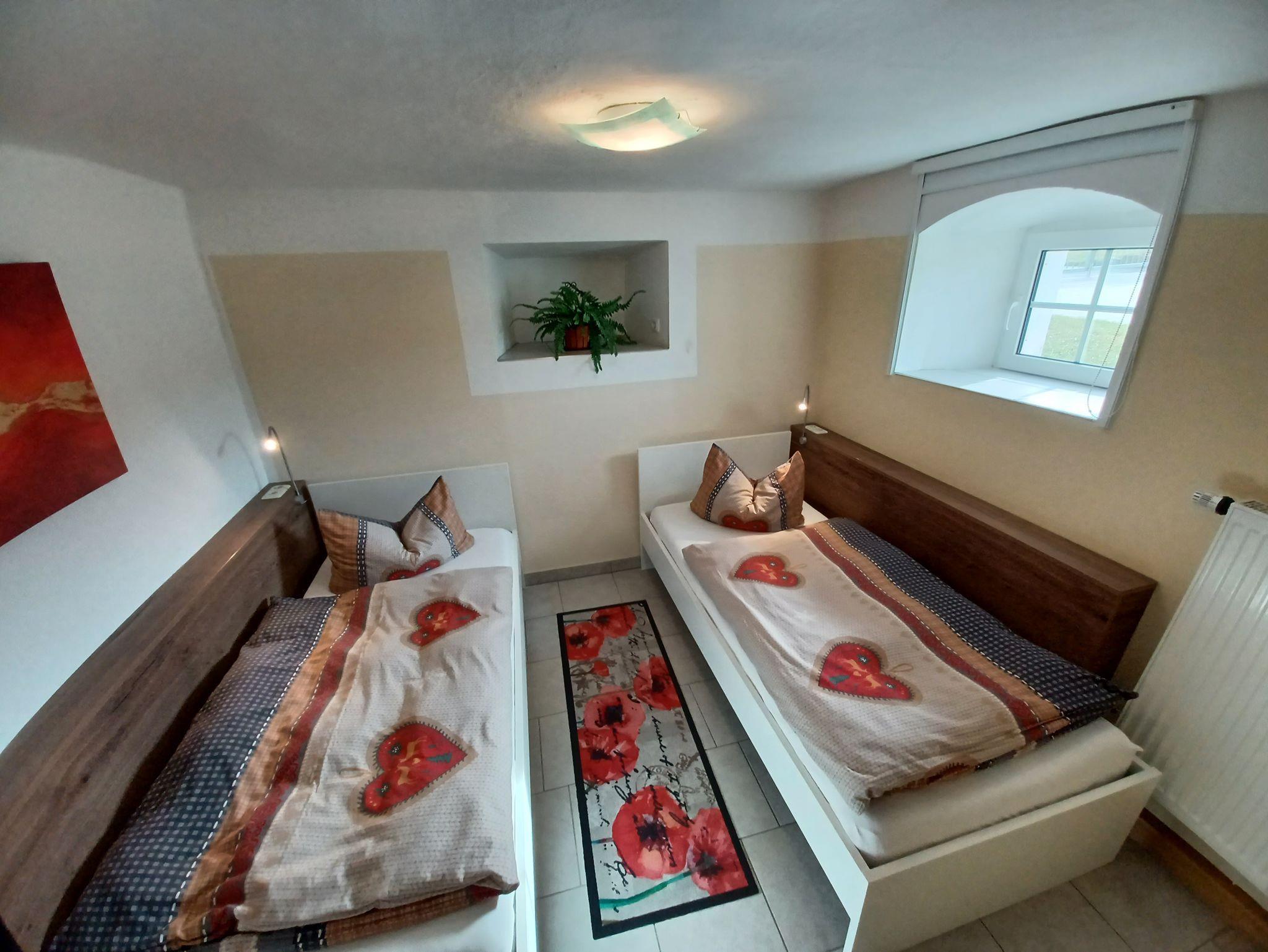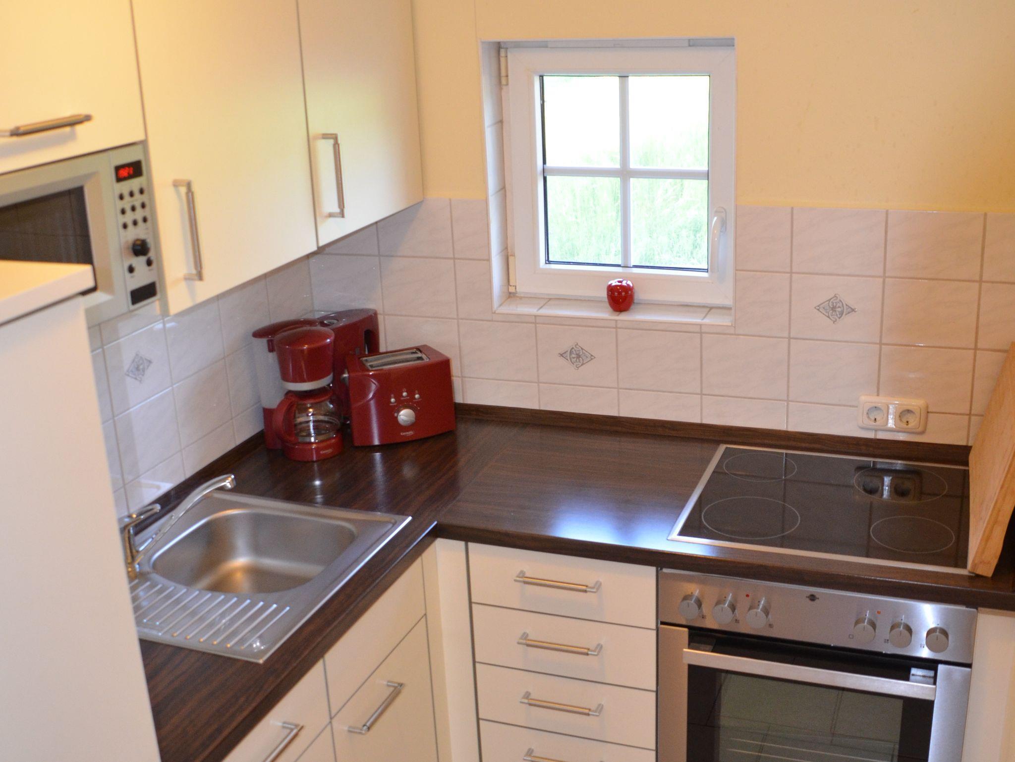 Im Haus finden Sie ebenerdig zwei Schlafräume - einer mit einem Doppelbett, der andere hat zwei Einzelbetten. Es gibt eine Miniküche und ein Bad mit Dusche, WC und Waschmaschine.