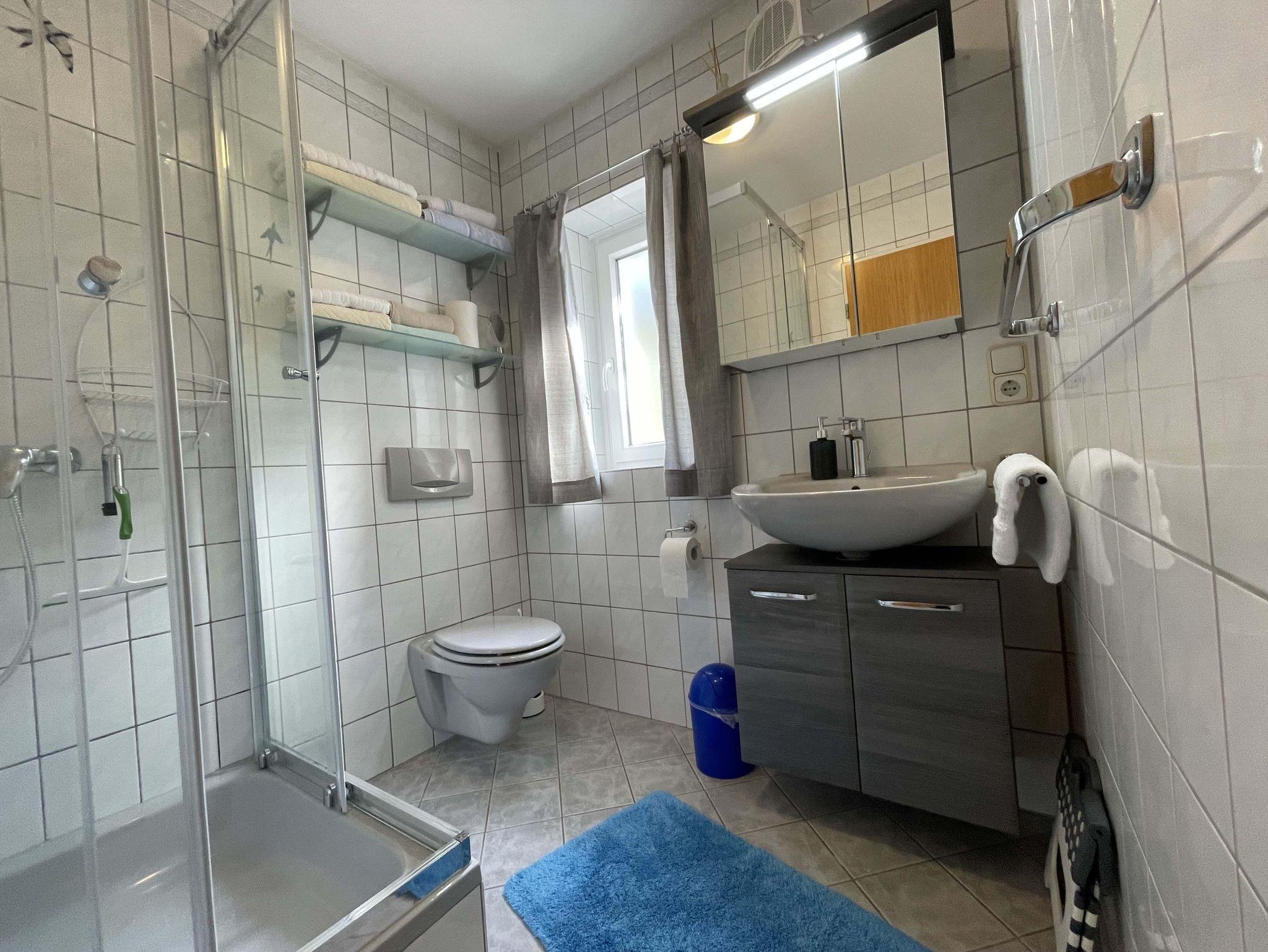 Ebenso verfügt die Wohnung über ein Bad mit Dusche/WC und ein separates WC.