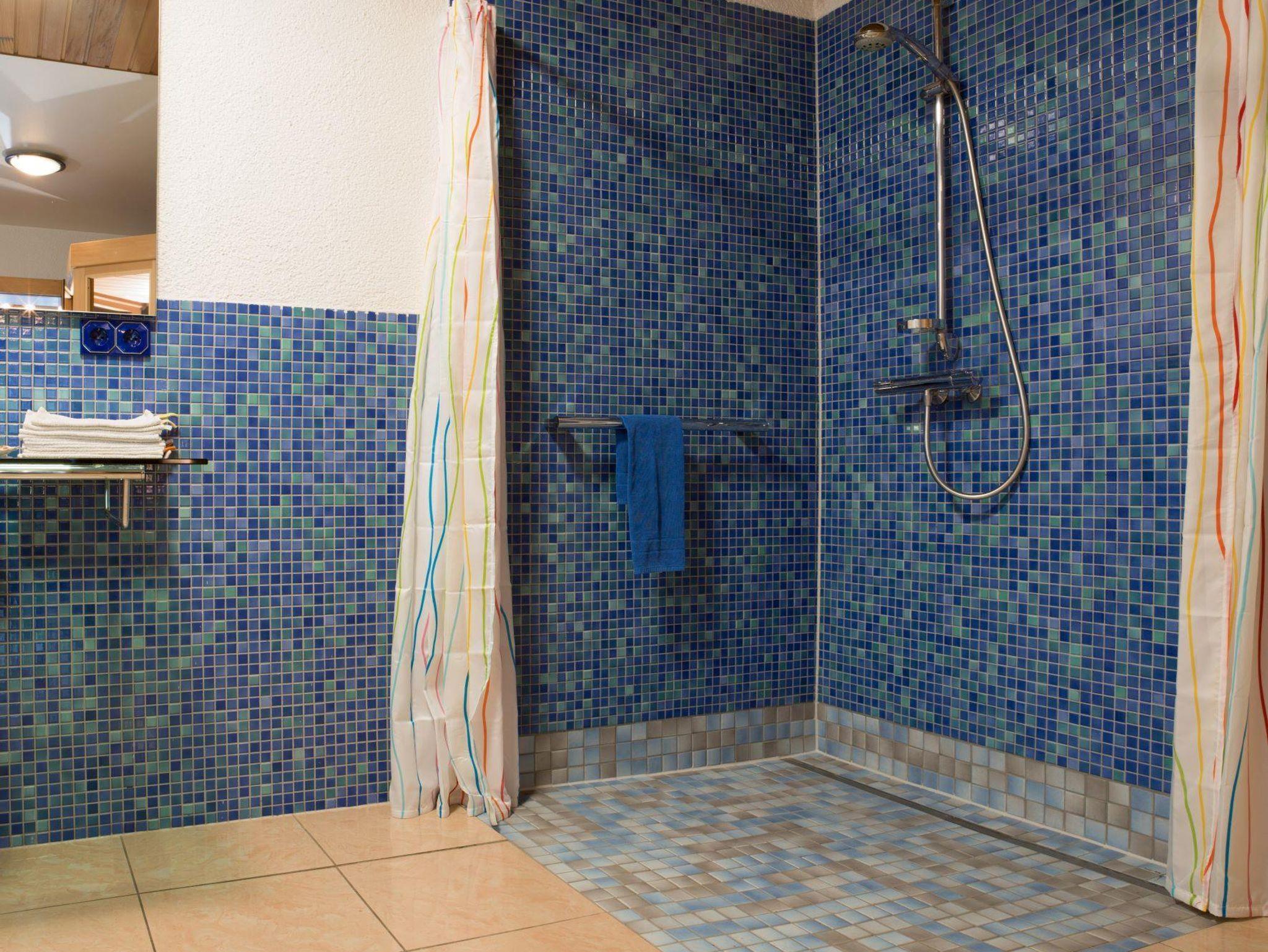 Die neue Küche (offen zum Wohnzimmer) ist ausgestattet mit Spülmaschine, Backofen etc. Badezimmer mit Dusche/WC und Sauna (Freie Benutzung)