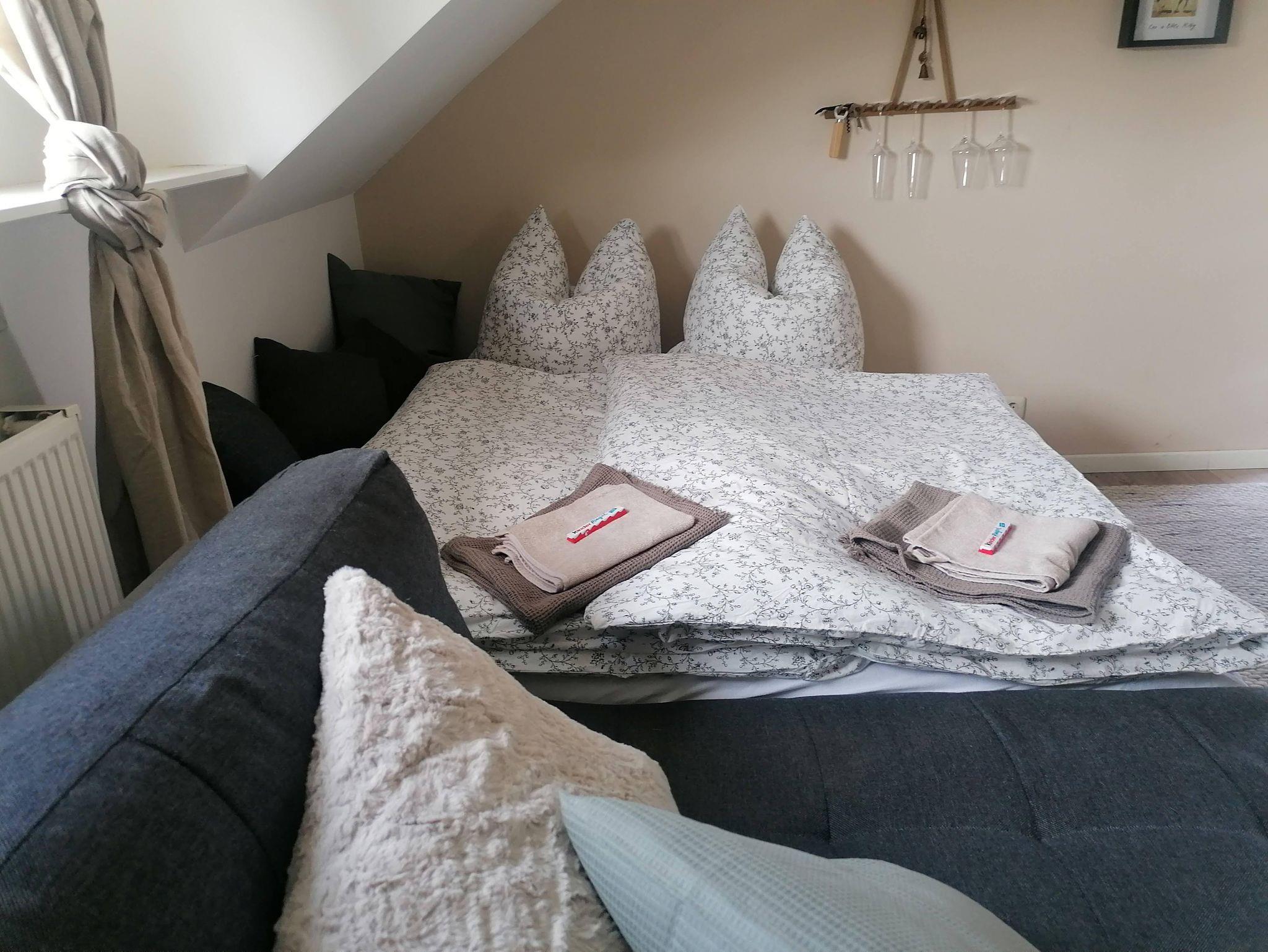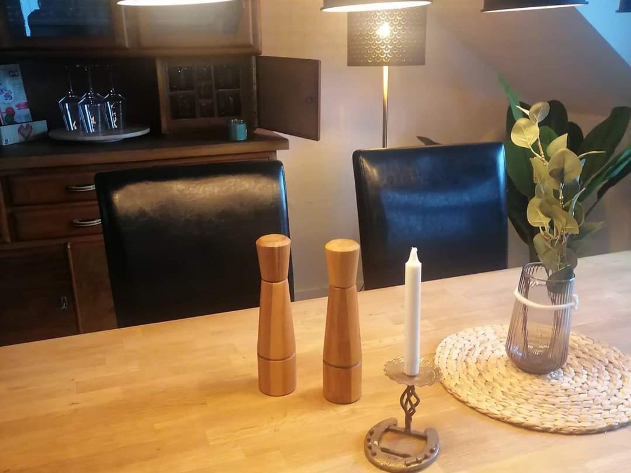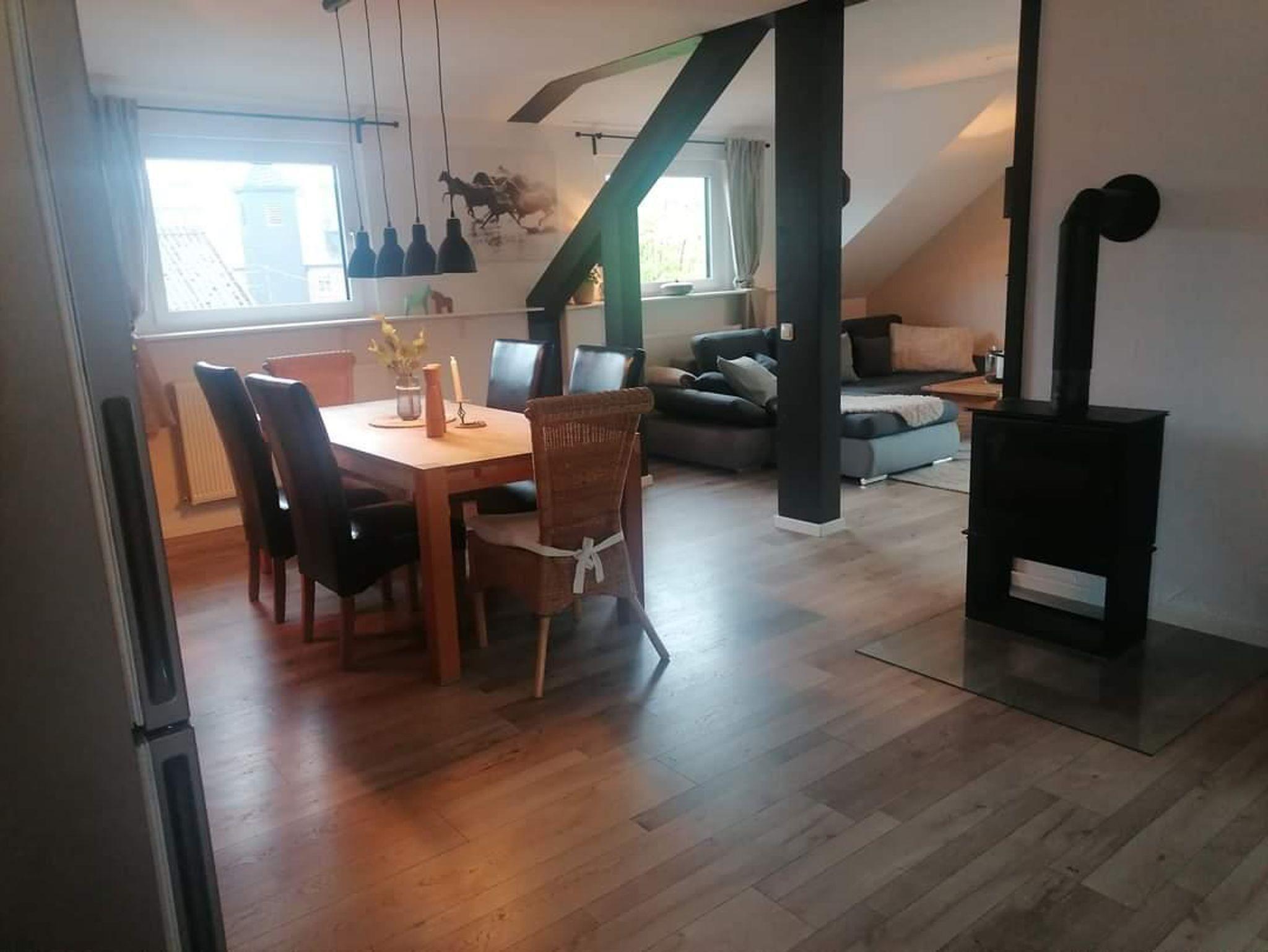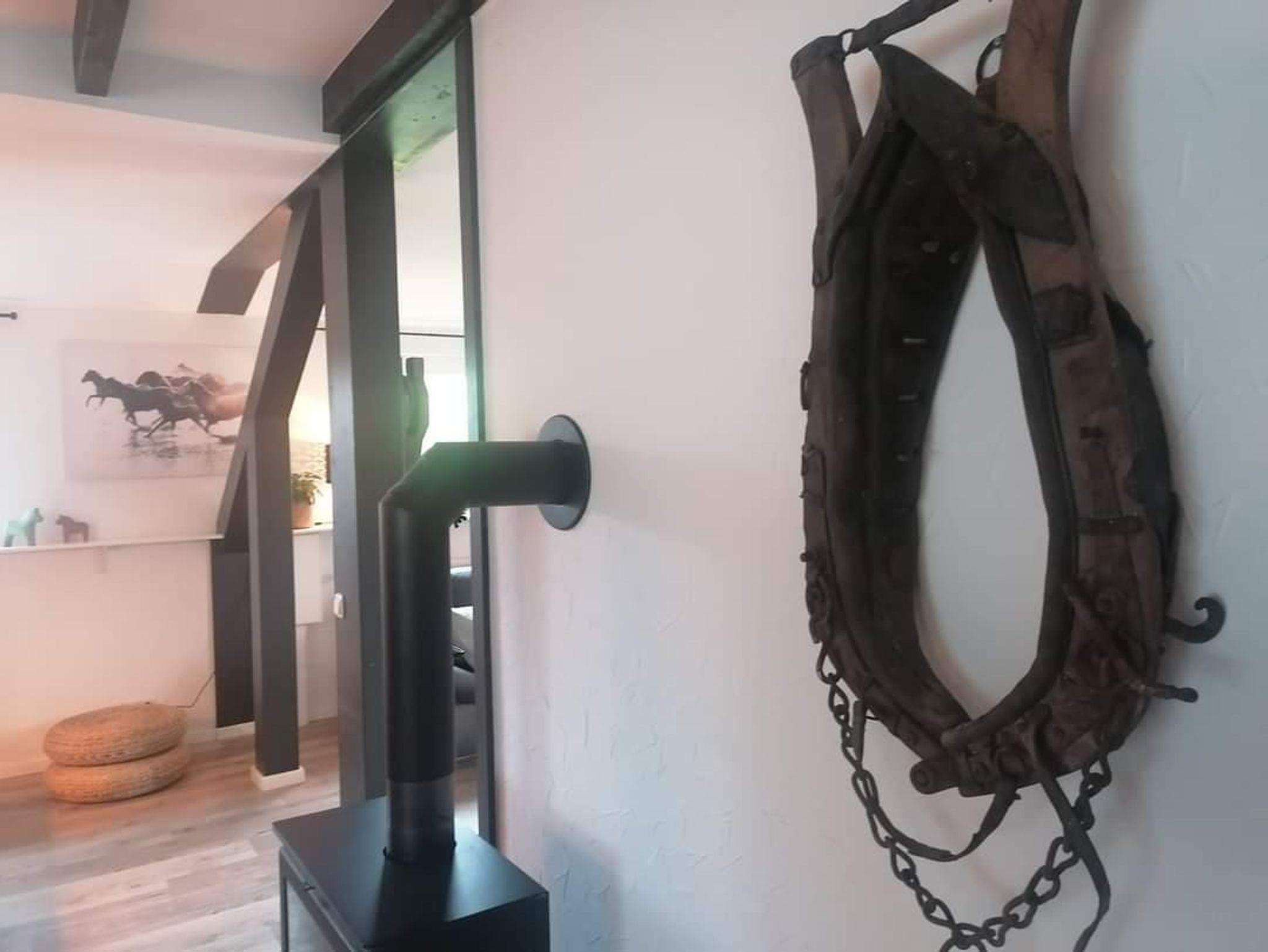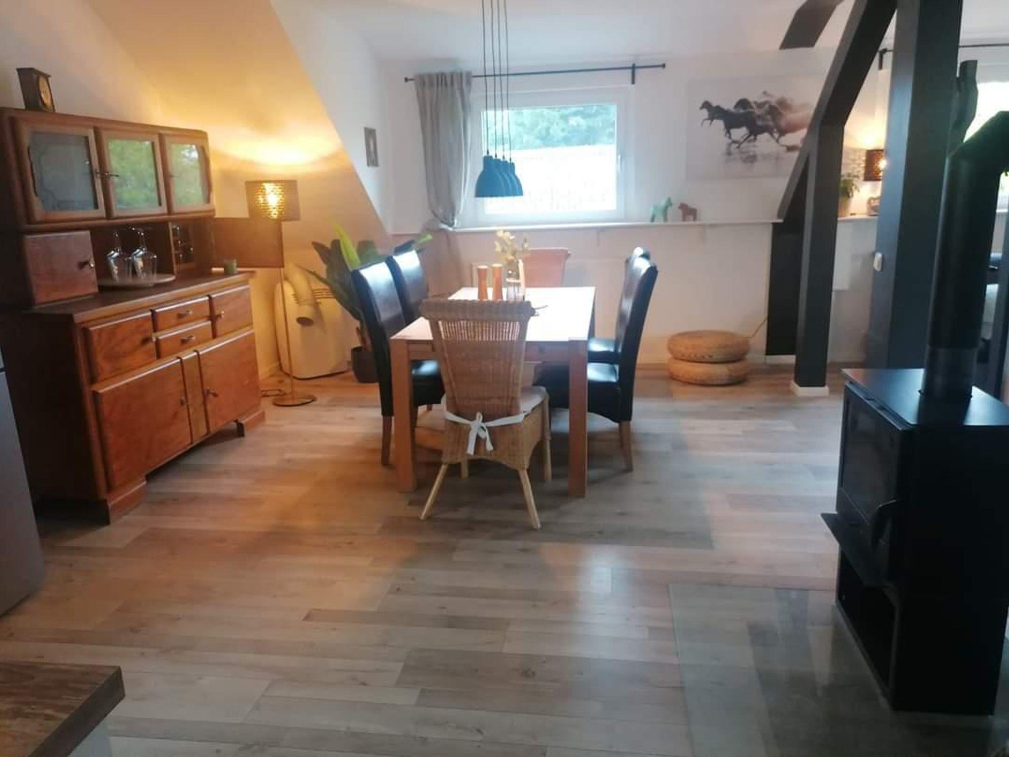 Die Ferienwohnung „An der Schmiede“ ist 65 m2 groß und verfügt neben einem großzügigen Wohn- und Essbereich mit offener Küche über ein Duschbad und ein separates Schlafzimmer. Im Wohn- und Essbereich sorgt ein gemütlicher Kaminofen für wohlig warme Kaminatmosphäre. Die Ferienwohnung ist mit einem Doppelbett und einer ausziehbaren Schlafcouch ausgestattet und verfügt über Platz für 2 bis 4 Gäste.
