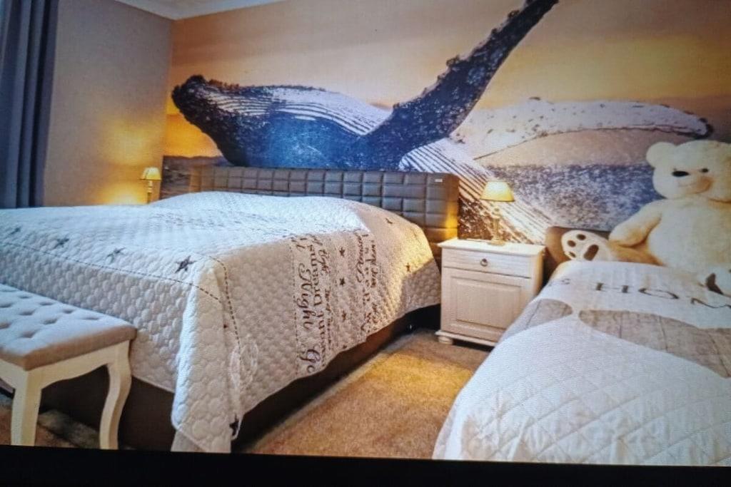 We offer a very well-equipped holiday apartment with a terrace and on-site parking. The apartment features a large kitchen, a large bathroom with a tub and shower, a guest toilet, a living room with a sofa bed, a large bedroom with a king-size bed and a sofa bed, and a dressing room.