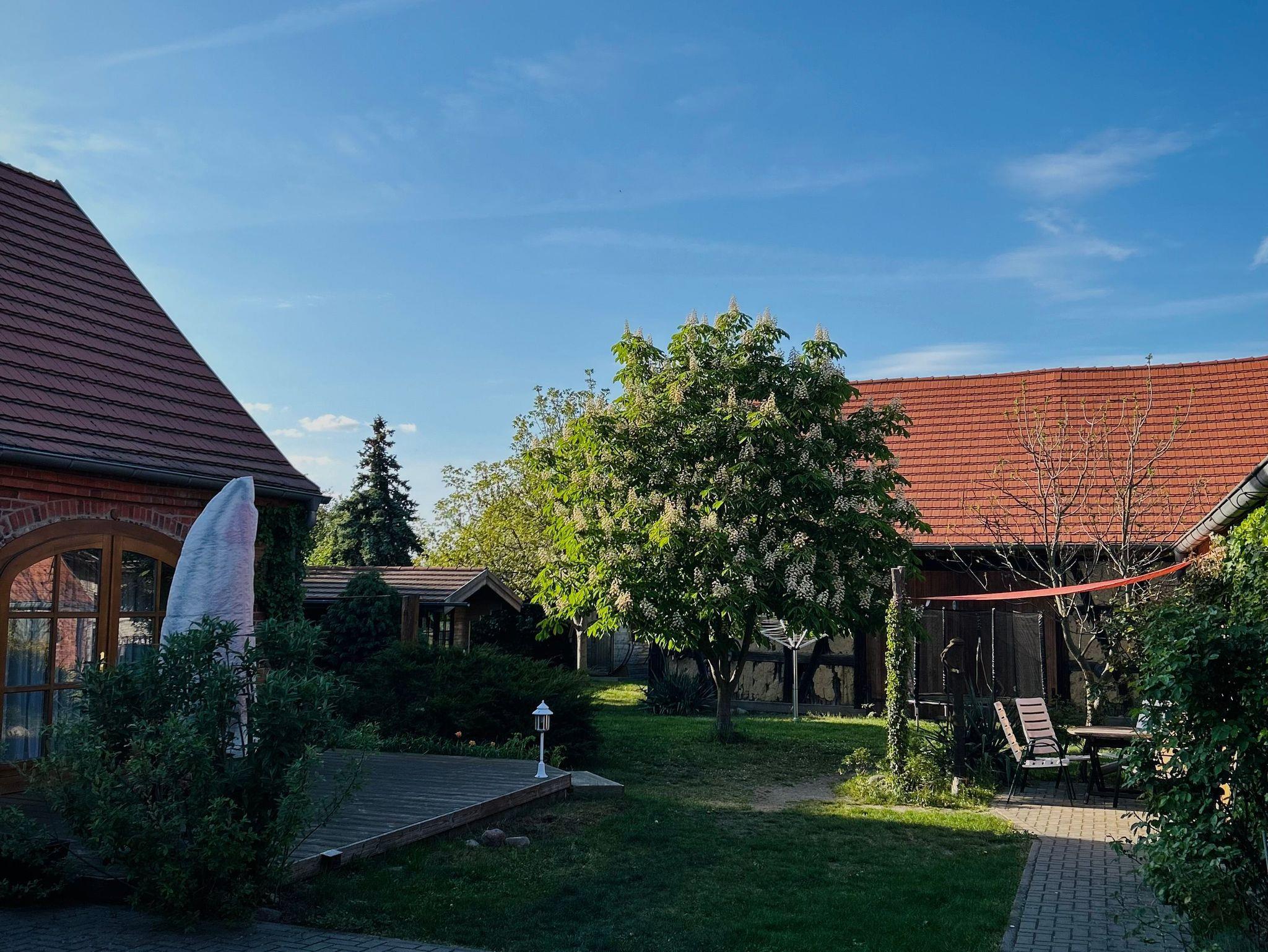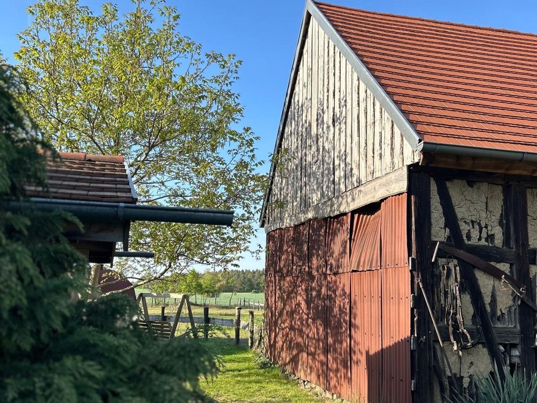 Ausgebauter Dreiseitenhof mit Tierhaltung (Alpacas, Esel, Schafe, Hühner, Zwergziegen, Katze und Hund), begrünter Hof mit mehreren Sitz - und Sonnenplätzen, Ferienwohnungen im ehemaligen Stallgebäude (ca. 200 Jahre alt), ruhig gelegen in einer Spielstraße, moderne Ausstattung auf 2 Etagen, Dachgeschoss mit schrägen Wänden und niedrige Deckenhöhe, Nichtraucherwohnung, Fußboden mit Fliesen und Laminat, 1 Schlafzimmer mit Doppelbett 180 cm x 200 cm, 1 Schlafcouch im Wohnraum, Wohnraum mit TV, Fußbodenheizung und Holzofen, 1 Bad mit Badewanne und WC, Aufbettung für Kleinkinder im Alter bis 3 Jahren möglich.