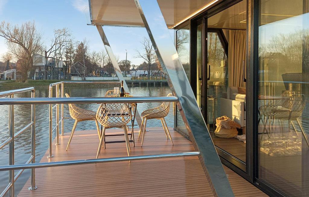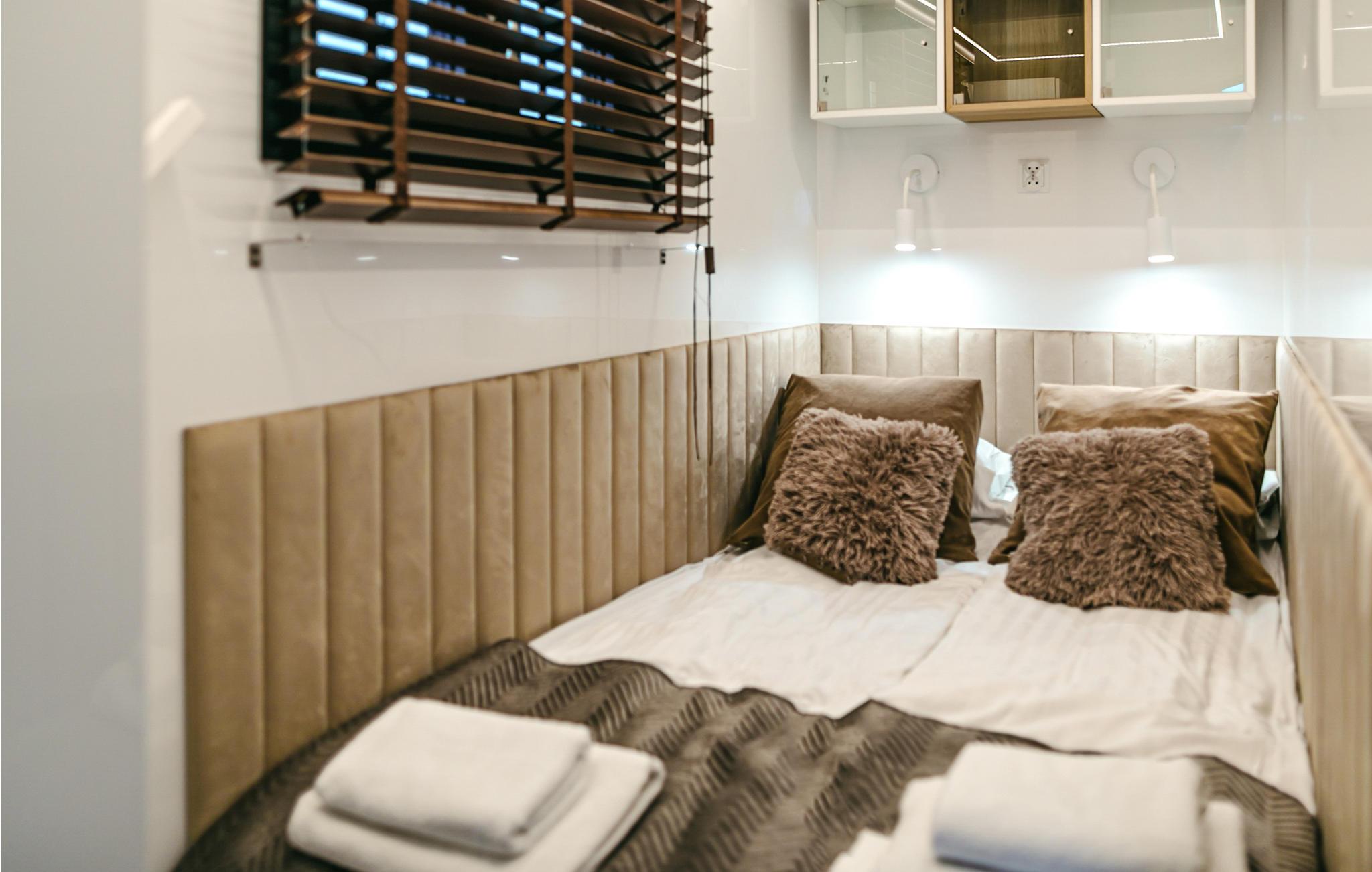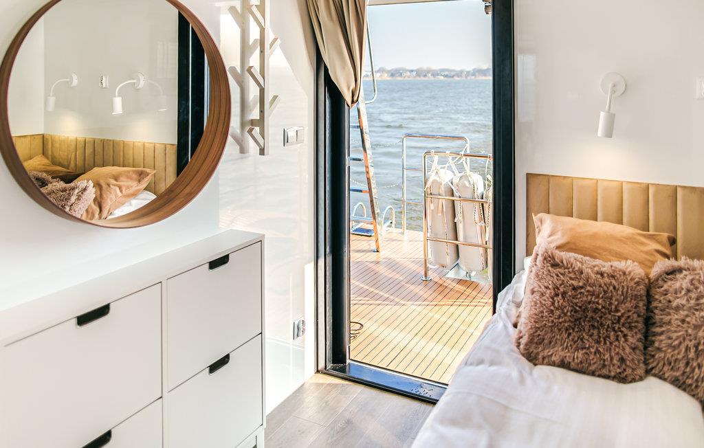 Auf dem Hausboot können bis zu 6 Personen unterkommen: es gibt zwei Schlafkabinen mit Doppelbett und zusätzlich ein Schlafsofa 130 x 200 im Wohnbereich.