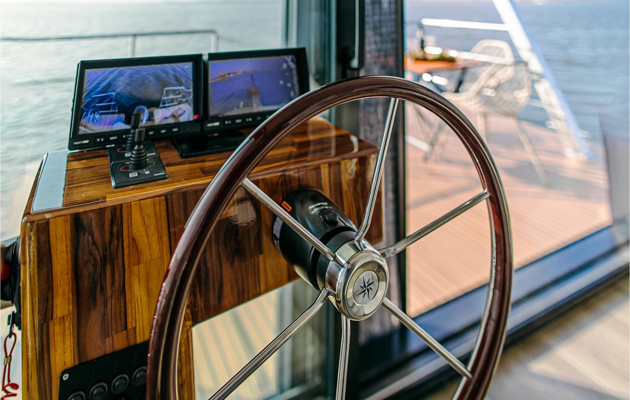 Ausgestattet mit Teakholz-Elementen, 2 Fahrkameras, einem 130 PS starken Motor, sowie Bug- und Heckstrahlruder bietet sie auch Neulingen ein See-Abenteuer der Extraklasse.