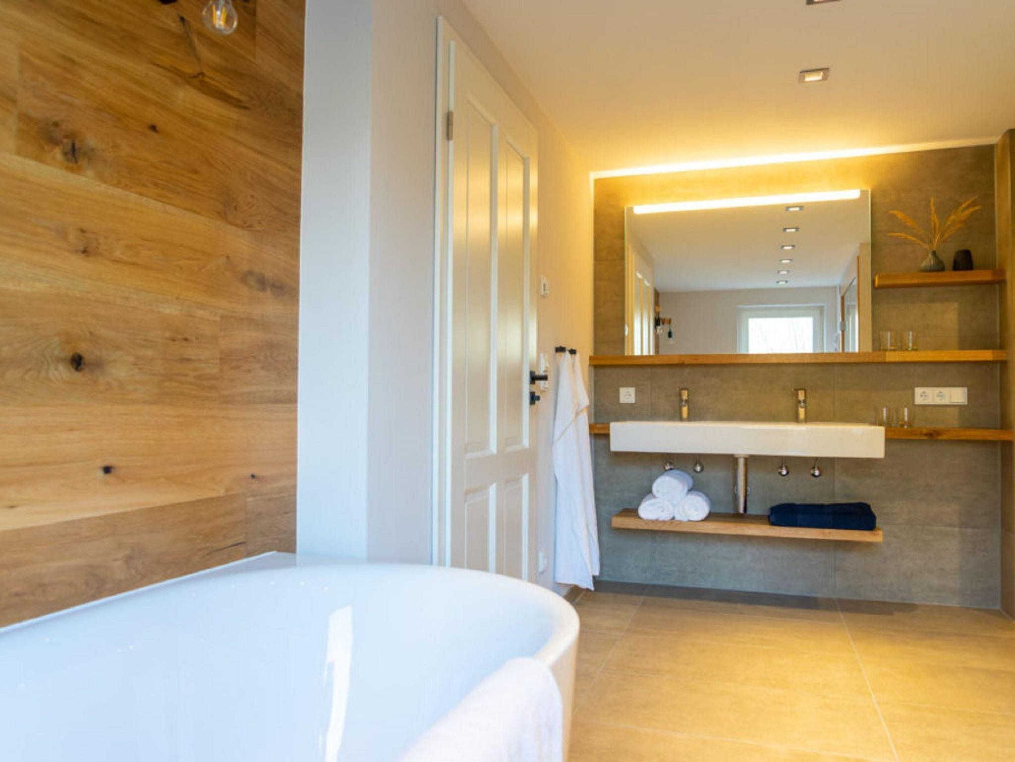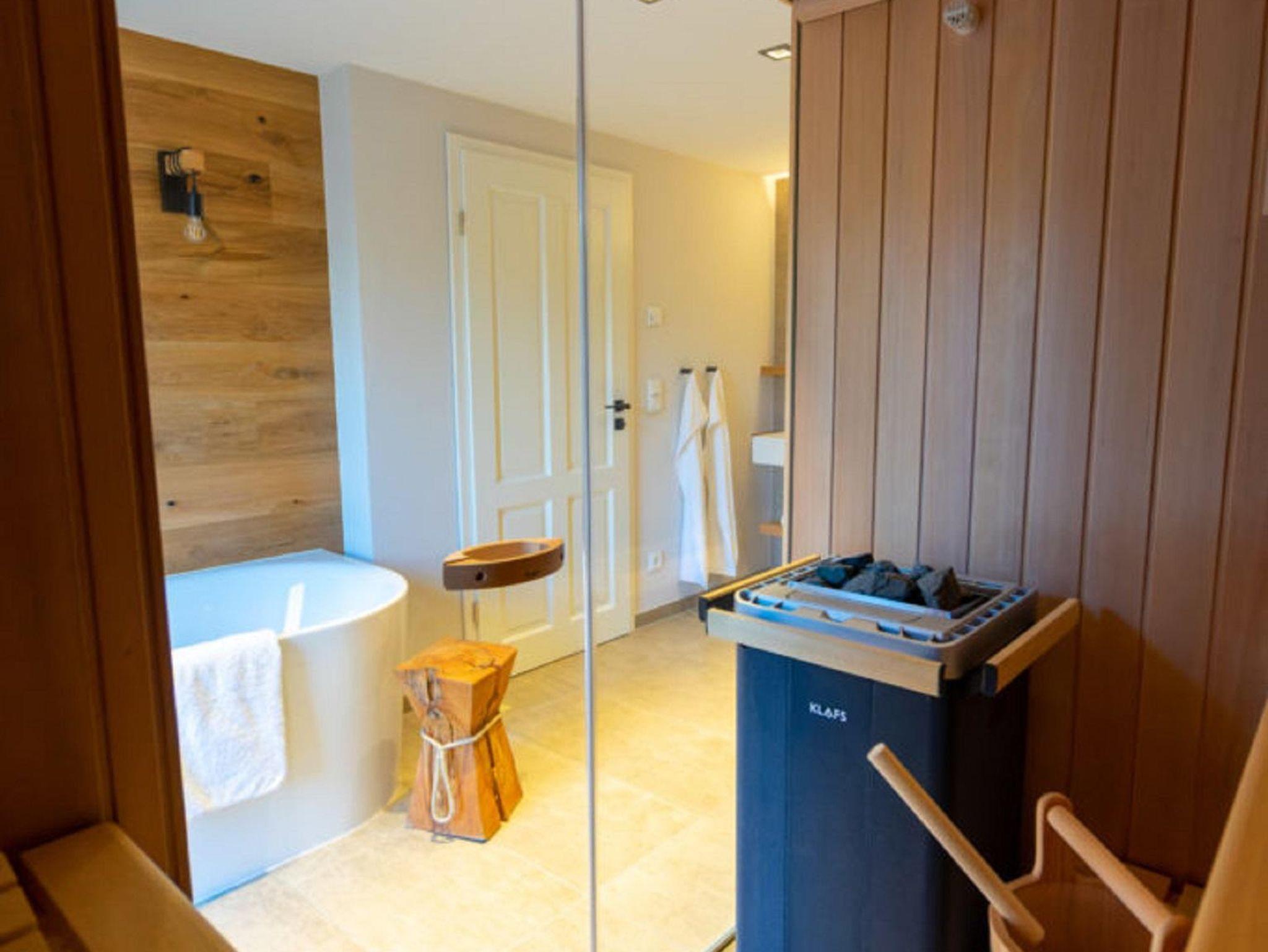 Bad/Sanitär: Dusche, Badewanne, WC, separates WC, private Sauna, Föhn