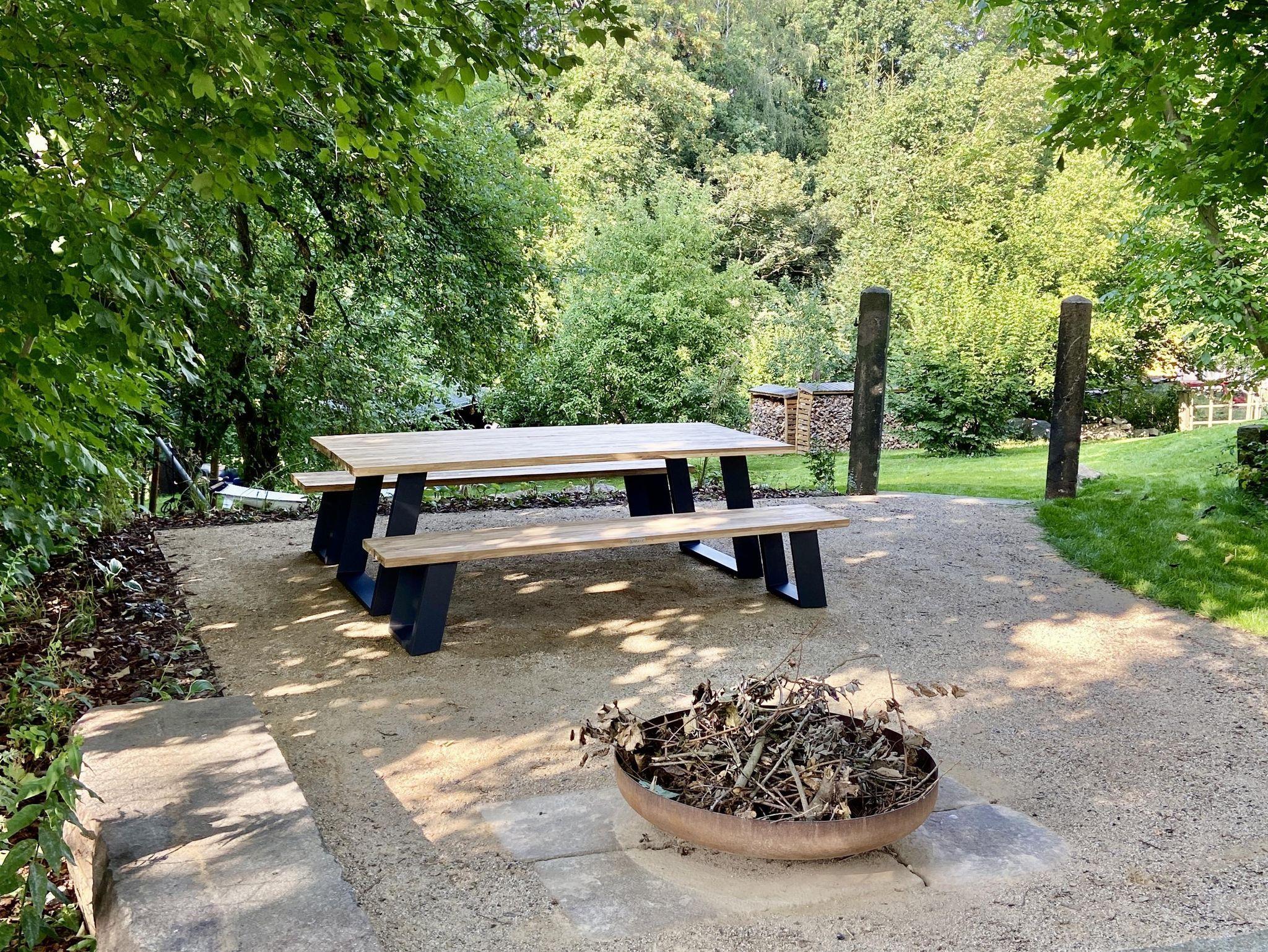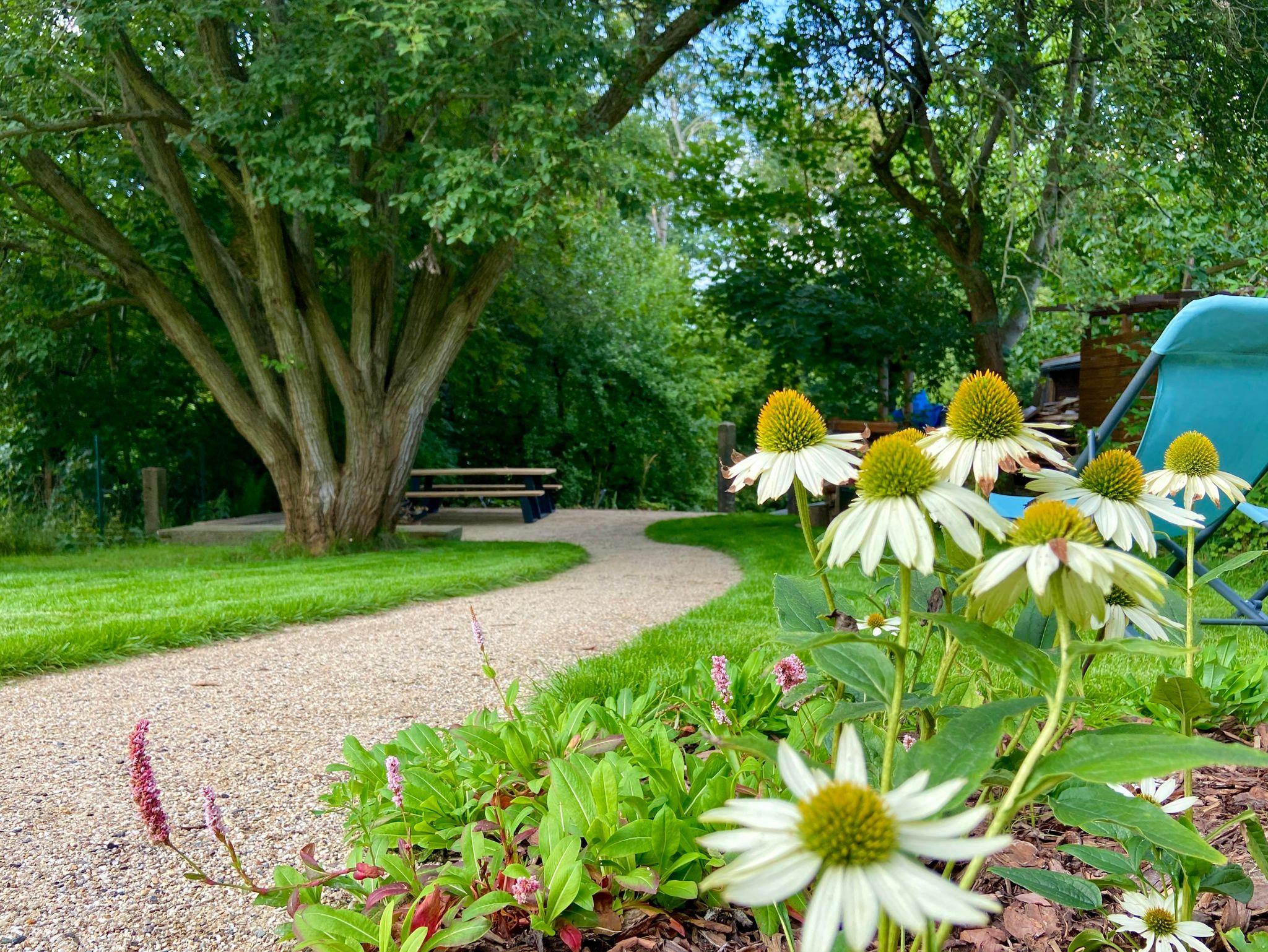 Ein großzügiges Wellnessbad mit Dusche, Badewanne und privater Sauna sorgt für Entschleunigung vom Alltag. Aus der Wohnung gelangen Sie direkt in den weitläufigen Garten mit idyllischen Sitzbereichen und Rückzugsmöglichkeiten unter alten Obstbäumen.