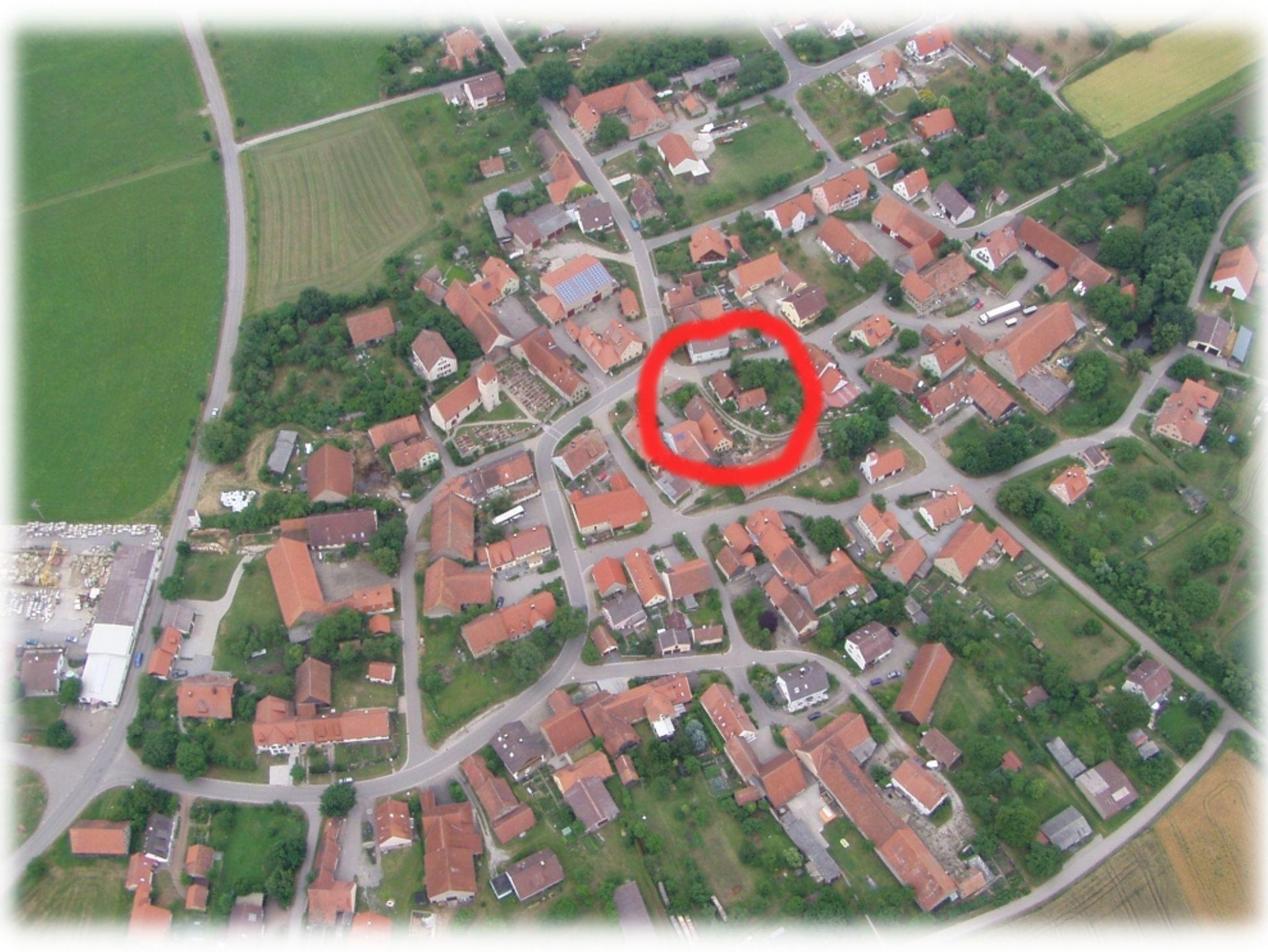 Restauriertes Bauernhäuschen im Zentrum von Schweinsdorf, einem kleinen typisch fränkischen 450 Einwohner-Dorf 4km von Rothenburg o/T.