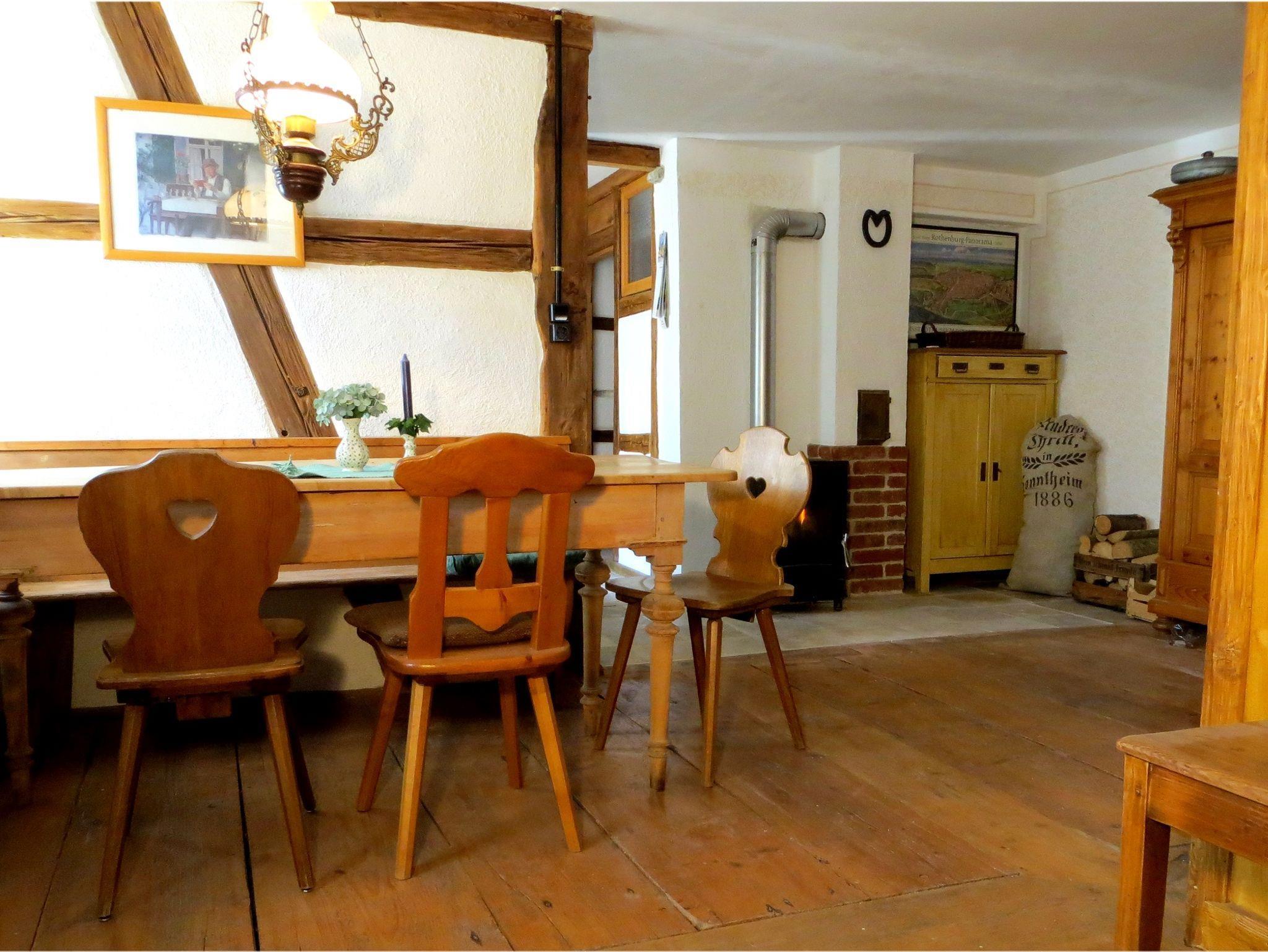 Das Ferienhaus ist ein restauriertes Bauernhäuschen und liegt im Zentrum von Schweinsdorf, einem kleinen typisch fränkischen 400 Einwohner-Dorf. Es liegt etwa 10 Minuten mit dem Auto entfernt von Rothenburg ob der Tauber. Das Ferienhaus auf verfügt 44 Quadratmeter über ein Schlafzimmer, eine ausgestattete Küche mit Kühlschrank, Backofen, Mikrowelle, Wasserkocher und Kaffeemaschine und einen Wohnbereich mit Couch, Fernseher und großer Essecke. Ein Kaminofen steht den Gästen auch zur Verfügung. Das Badezimmer ist mit Waschbecken, Dusche und separatem WC ausgestattet. Der Garten kann sehr gerne von unseren Gästen mitbenutzt werden. Gartenmöbel sind vorhanden. Bettwäsche und Handtücher stellen wir unseren Gästen zur Verfügung. Im Grundpreis sind Endreinigung, Parkplatz und kostenlose WLAN-Nutzung inklusive.