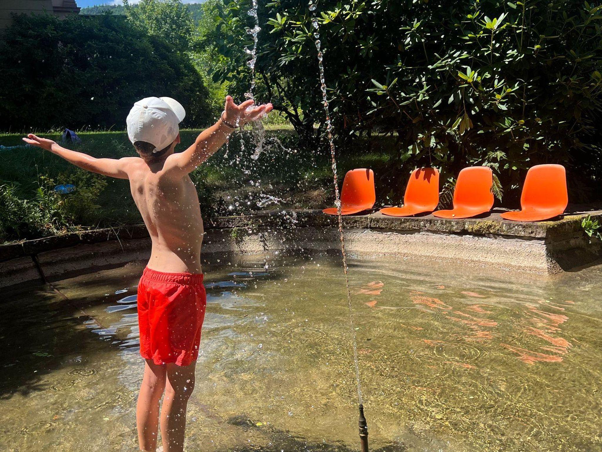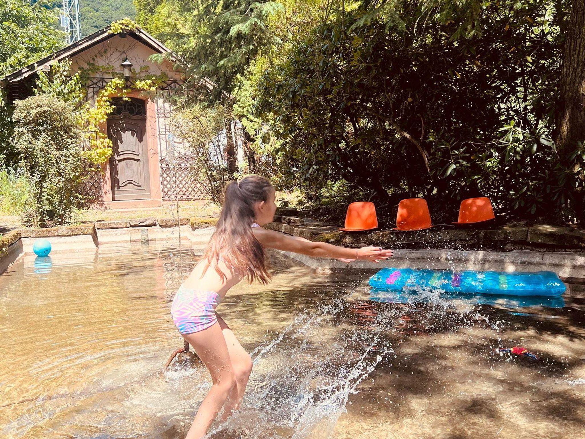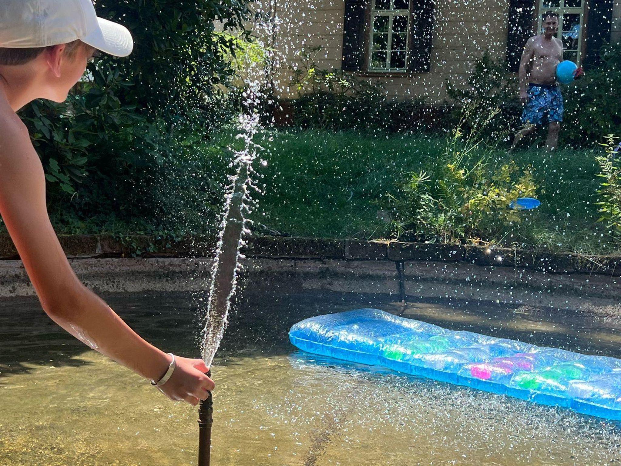 Pool zum Planschen und Chillen mit Quellwasserzufluss, Tiefe 40 cm.