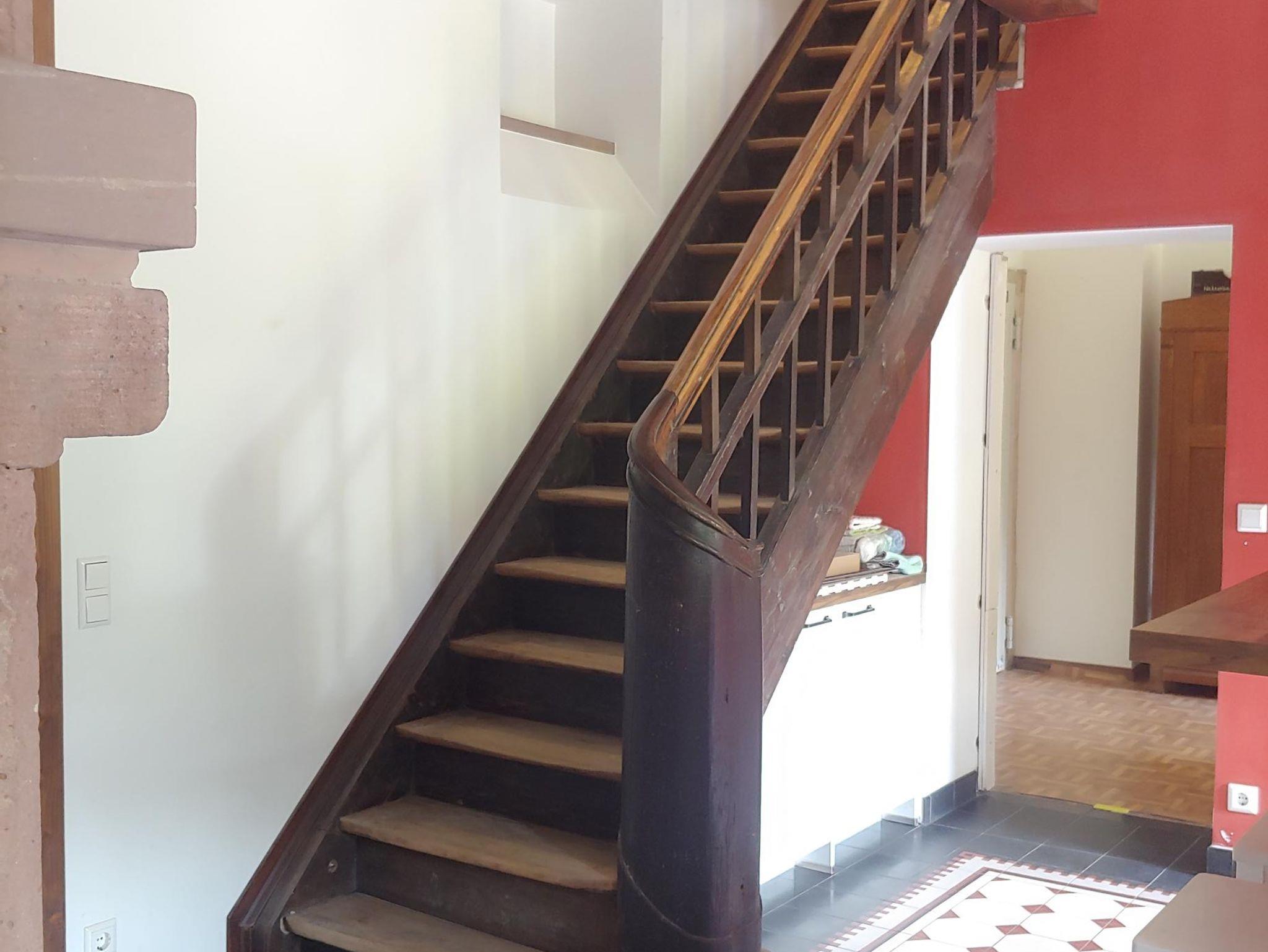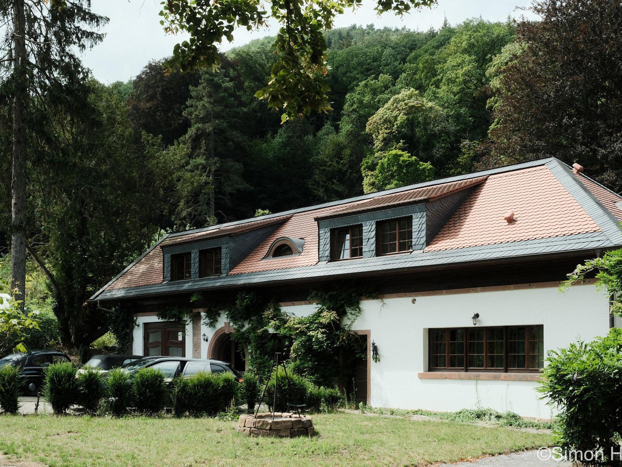 Das Haus liegt am Rande des Pfälzer Waldes im sogenannten Schöntal, eingeliedert in eine Parkanlage einer Industriellenvilla aus der Gründerzeit. Mir war es wichtig, den alten Charme und Stil des denkmalsgeschützen Gebäudes zu erhalten. Von daher habe ich liebevoll und behutsam z.B. die Türen und die Treppen restauriert. Dennoch sind die Bäder und die Küchen auf dem neuesten Stand der Technik.