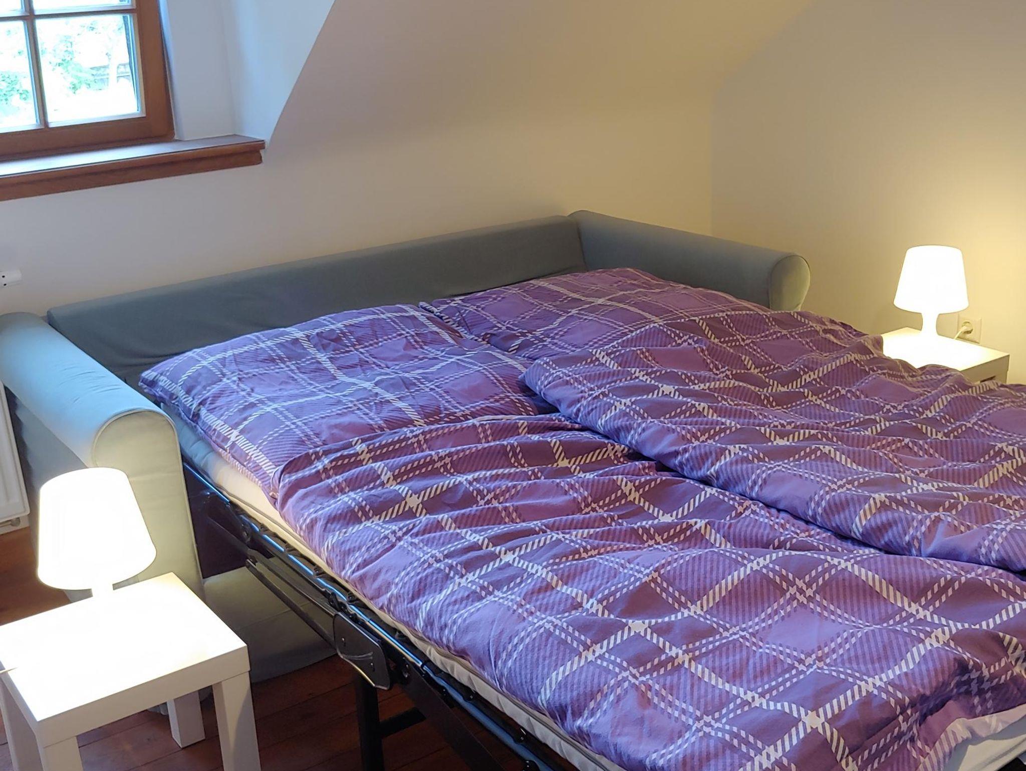 Schlafzimmer im Obergeschoss über die Treppe von der Küche aus erreichbar.