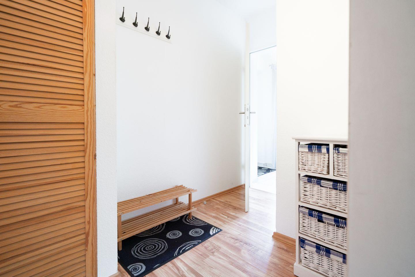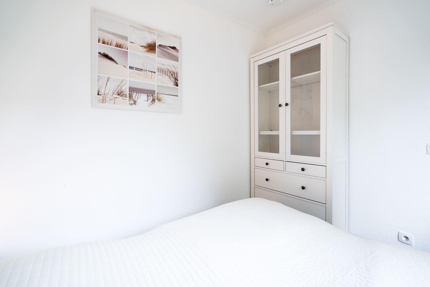 diese 3-Raum-Wohnung liegt im Erdgeschoß eines Mehrparteienhauses mit Südterrasse und einem Gartenanteil. Die Wohnung hat einen kombinierten Wohn- und Essbereich mit integrierter Küchenzeile. Von hier aus haben Sie Zugang zur Terrasse. Die Küche ist mit Spülmaschine, Backofen, Herd und Mirkowelle gut ausgestattet, zudem verfügt die Wohnung auch über eine Waschmaschine. Der erste Schlafraum hat ein franz. Bett (2 x 0,8 m x 2 m), im zweiten Schlafraum stehen 2 Einzelbetten (2 x 0,9m x 2m). Hier ist kein Platz, um zwischen den Betten noch ein Kinderreisebettchen aufzustellen. Im Wohnraum steht zudem eine Schlafcouch (1,4 x 1,9 m). Die Wohnung hat ein kleines, aber modernes Duschbad.