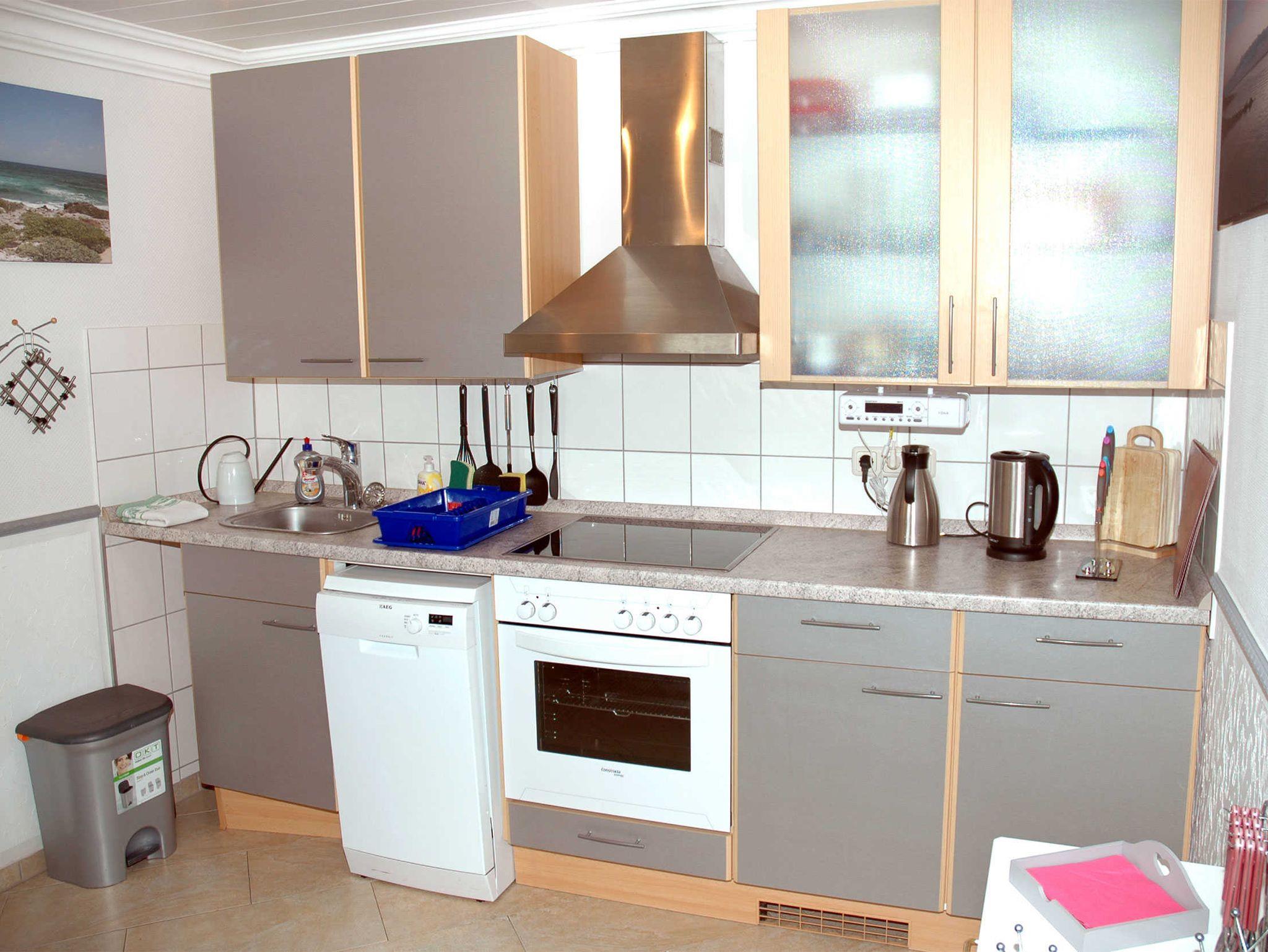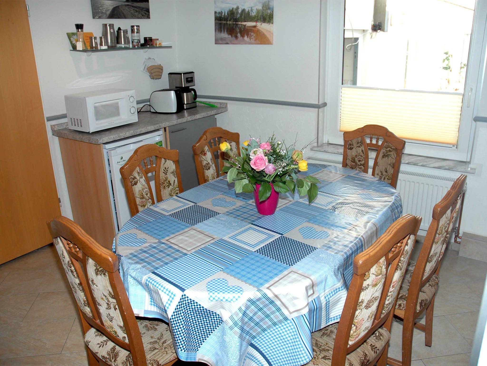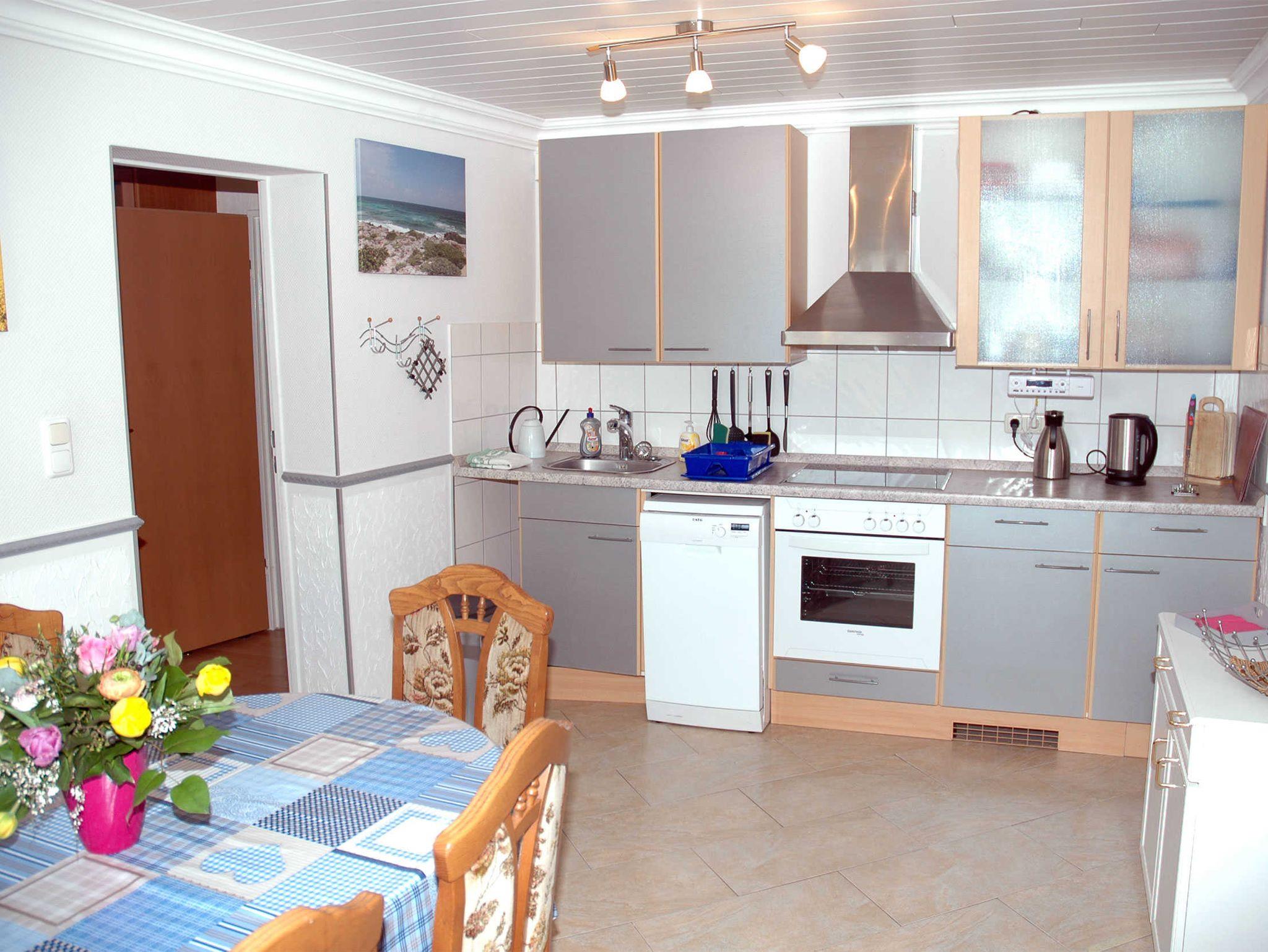 Die Küche ist komplett eingerichtet (Herd, Backofen, Mikrowelle, Geschirrspüler...) und es ist genügend Platz, um am Küchentisch mit der ganzen Familie zu essen.