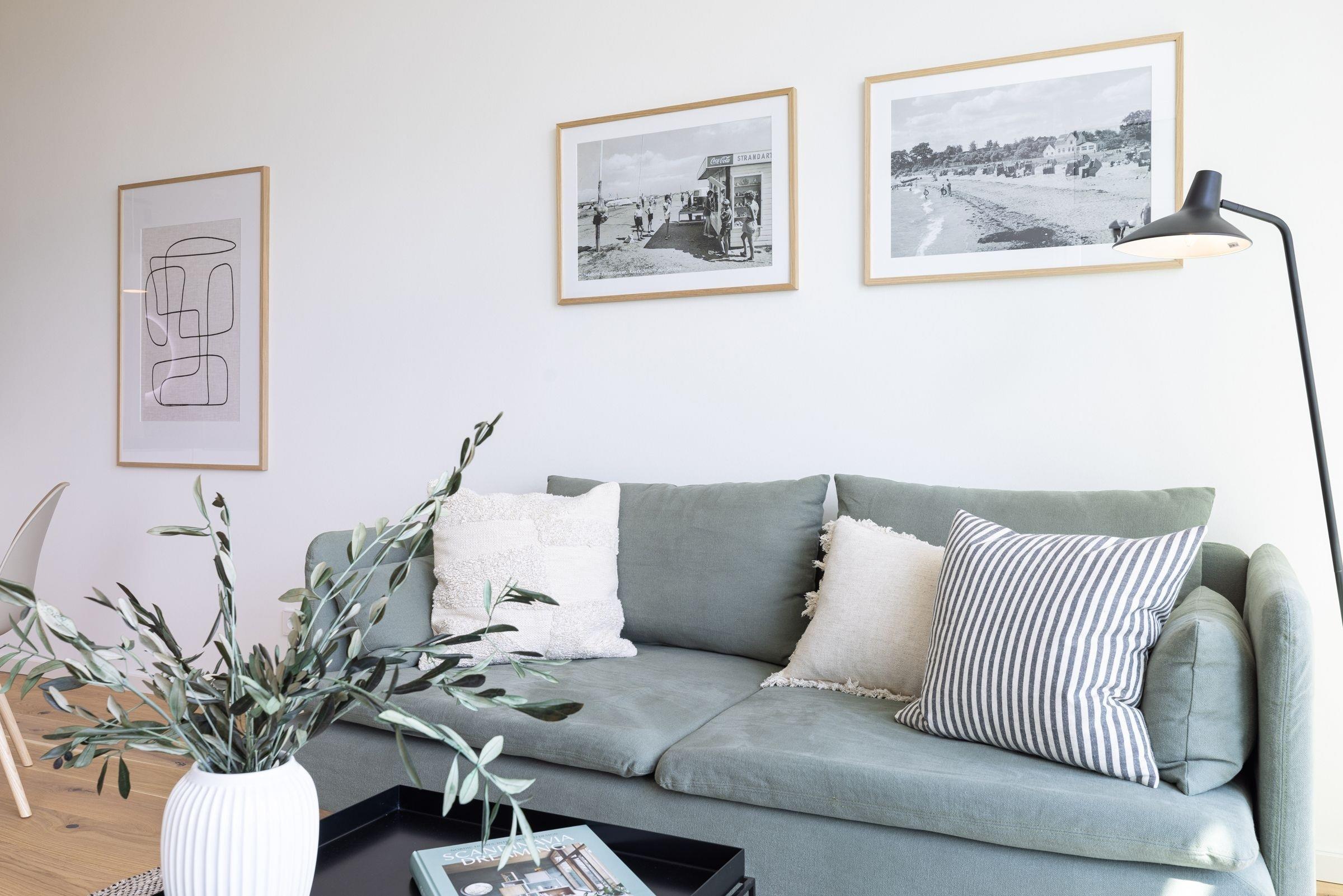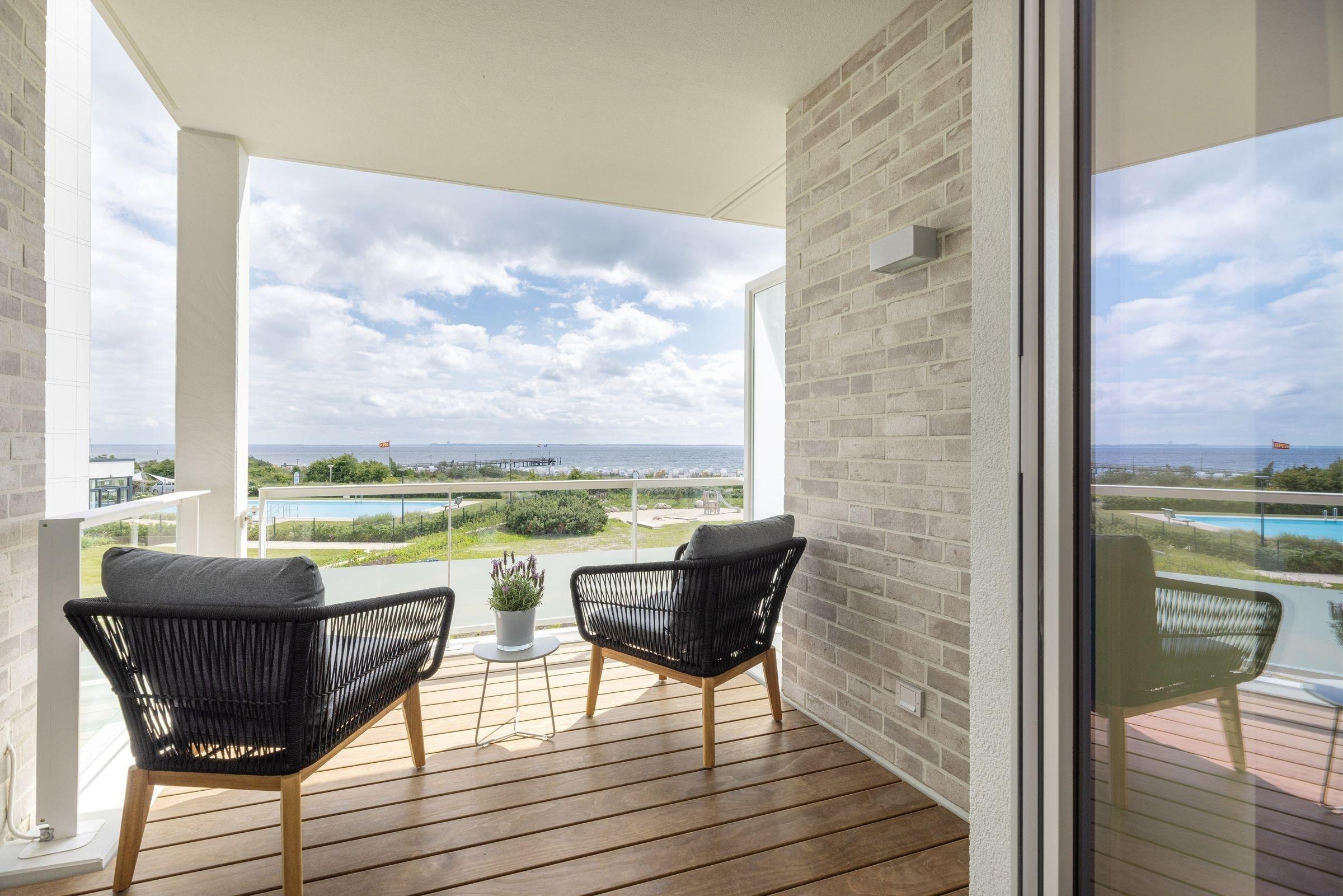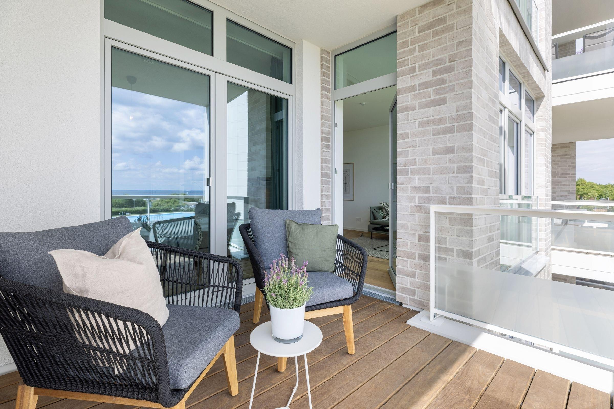 Der kombinierte Wohn- und Essbereich ist hochwertig ausgestattet und lädt Sie ein, erholsame Abende auf dem Sofa bei einem guten Film zu verbringen. In der offenen, voll ausgestatteten Küche können Sie abends Ihr Urlaubsmenü zaubern. Alle notwendigen Küchengeräte wie z. B. ein Backofen in komfortabler Arbeitshöhe, ein Herd (Induktion), ein Kühlschrank mit Gefrierfach sowie ein Geschirrspüler sind vorhanden. Als Highlight steht Ihnen neben einer Kaffeefiltermaschine zusätzlich eine Kaffeekapselmaschine (Nespresso) zur Verfügung. Das separate Schlafzimmer erwartet Sie bereits mit einem komfortablen Boxspring-Doppelbett (180x200 cm, durchgehender Topper). Auf den überdachten Süd-Balkon gelangen Sie sowohl vom Wohn- als auch vom Schlafzimmer. Genießen Sie Ihre Auszeit mit Meerblick und lassen sich dabei die Ostseeluft um die Nase wehen.