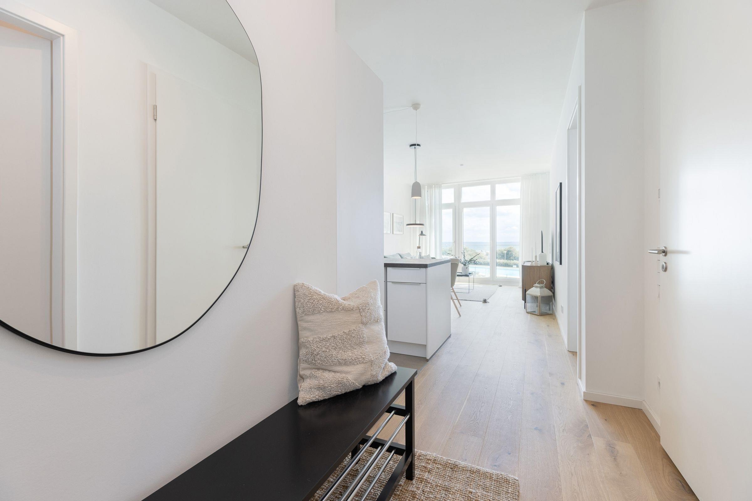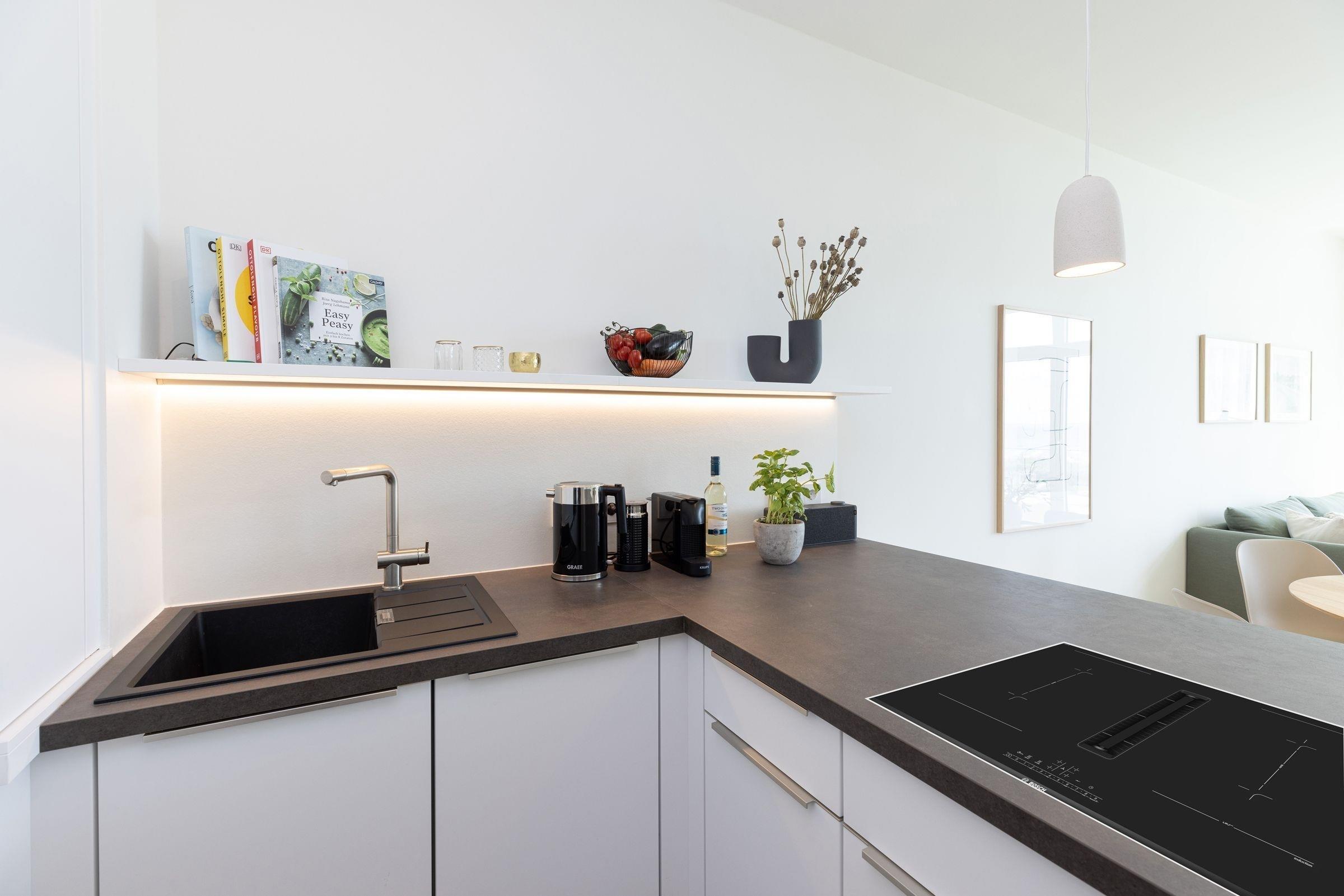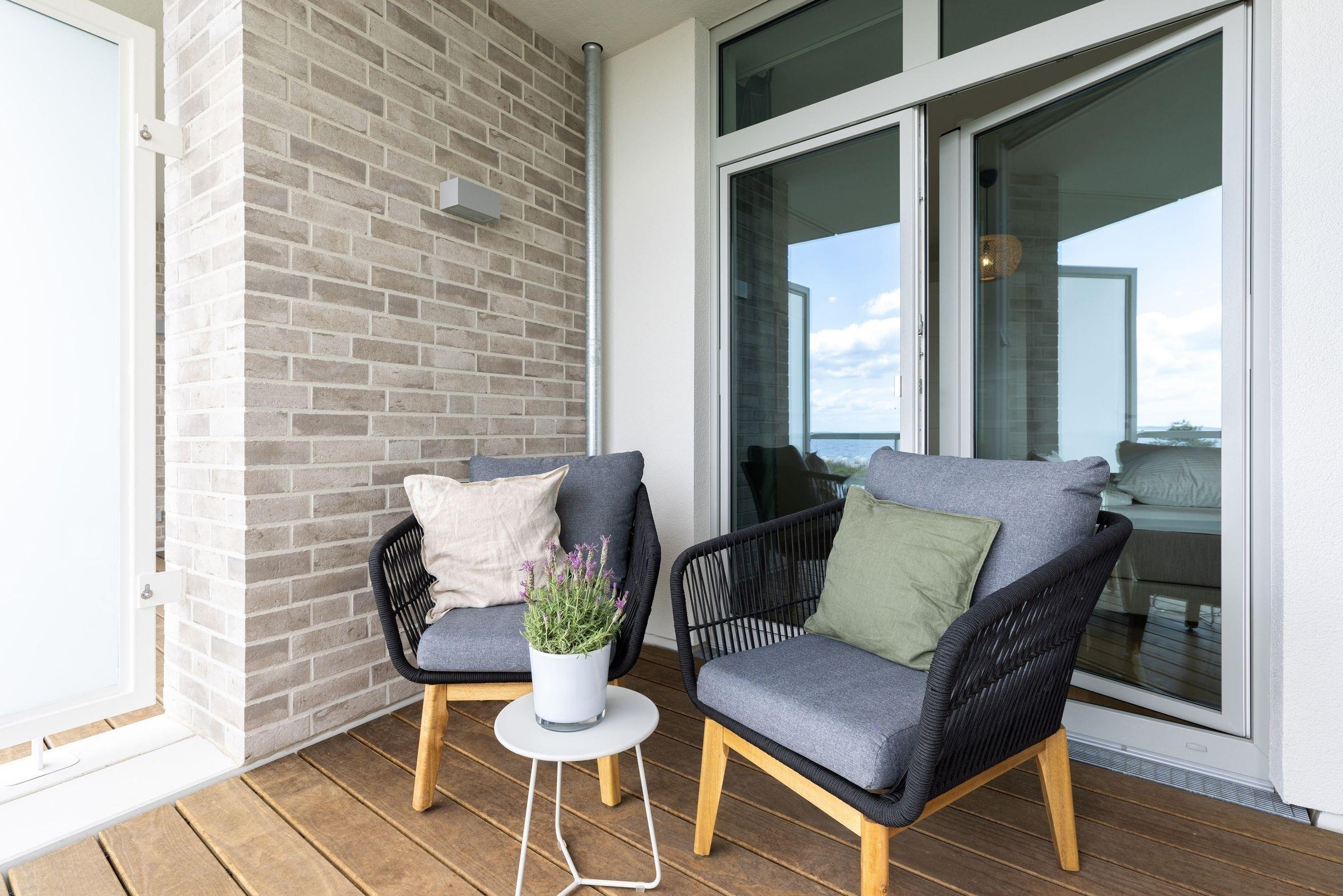 Der kombinierte Wohn- und Essbereich ist hochwertig ausgestattet und lädt Sie ein, erholsame Abende auf dem Sofa bei einem guten Film zu verbringen. In der offenen, voll ausgestatteten Küche können Sie abends Ihr Urlaubsmenü zaubern. Alle notwendigen Küchengeräte wie z. B. ein Backofen in komfortabler Arbeitshöhe, ein Herd (Induktion), ein Kühlschrank mit Gefrierfach sowie ein Geschirrspüler sind vorhanden. Als Highlight steht Ihnen neben einer Kaffeefiltermaschine zusätzlich eine Kaffeekapselmaschine (Nespresso) zur Verfügung. Das separate Schlafzimmer erwartet Sie bereits mit einem komfortablen Boxspring-Doppelbett (180x200 cm, durchgehender Topper). Auf den überdachten Süd-Balkon gelangen Sie sowohl vom Wohn- als auch vom Schlafzimmer. Genießen Sie Ihre Auszeit mit Meerblick und lassen sich dabei die Ostseeluft um die Nase wehen.