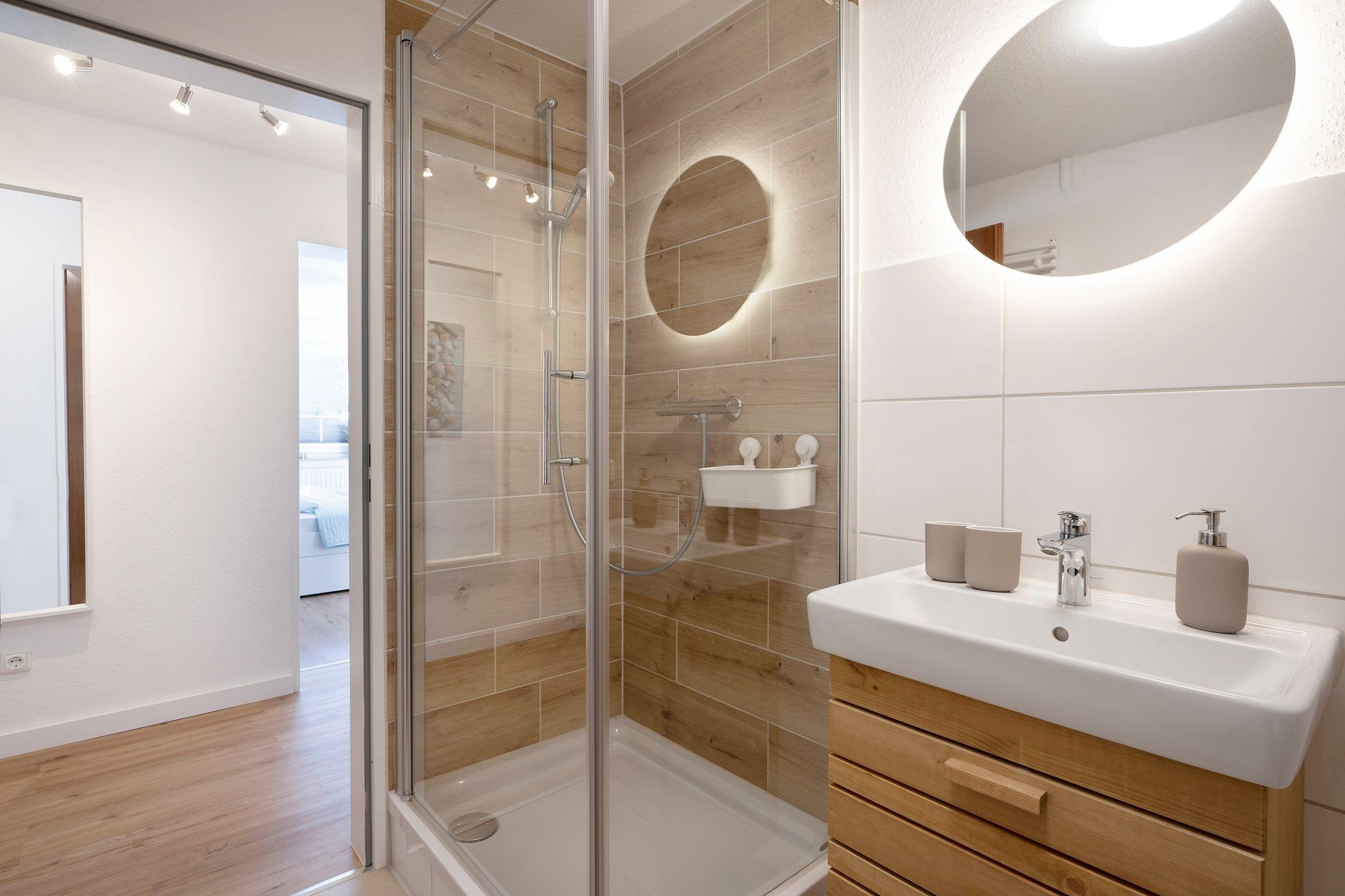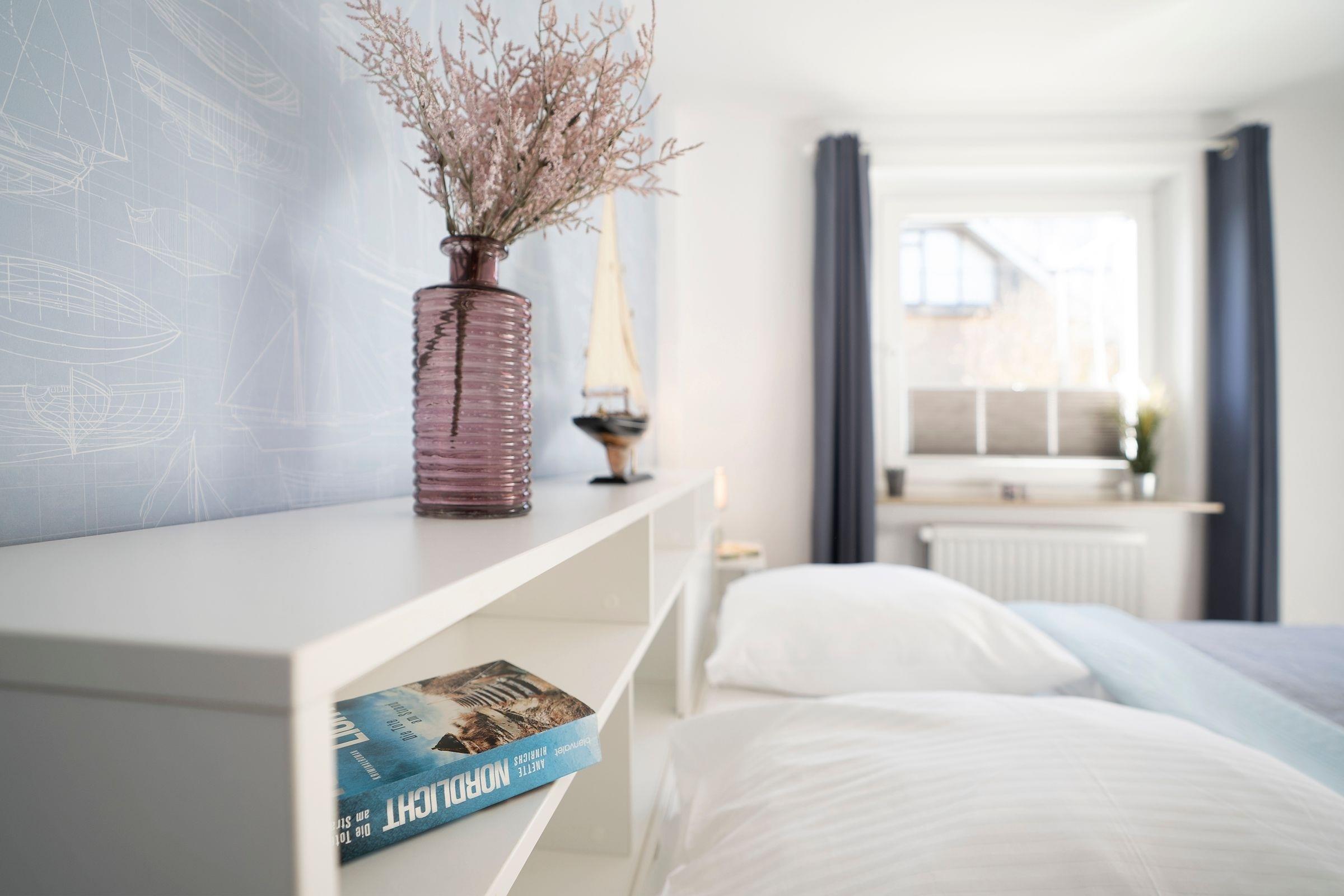Im gepflegten Wohnzimmer ziehen Sie sich nach einem ereignisreichen Urlaubstag zum Ausklingen des Tages zurück. Genießen Sie das Fernsehprogramm, anschließend können Sie das Sofa mit wenigen Handgriff in eine kuschelige Schlafgelegenheit (ca. 160x200 cm) verwandeln. In der separaten Küche ist ausreichend Platz, um gemeinsam zu kochen und zu essen. Die Wohnung verfügt außerdem über ein Schlafzimmer mit einem gemütlichen Doppelbett (2x 90x200 cm) und Kleiderschrank für die Urlaubsgarderobe. Auch das hell geflieste, moderne Duschbad wird Sie mit ausreichend Stauraum für Ihre Hygieneartikel überzeugen. Die norddeutsche Sonnen können Sie entspannt auf der möblierten Süd-Terrasse genießen. Wem es zu hell ist - die Wohnung verfügt über elektr. Außenjalousien, die für eine angenehme Verdunkelung sorgen.