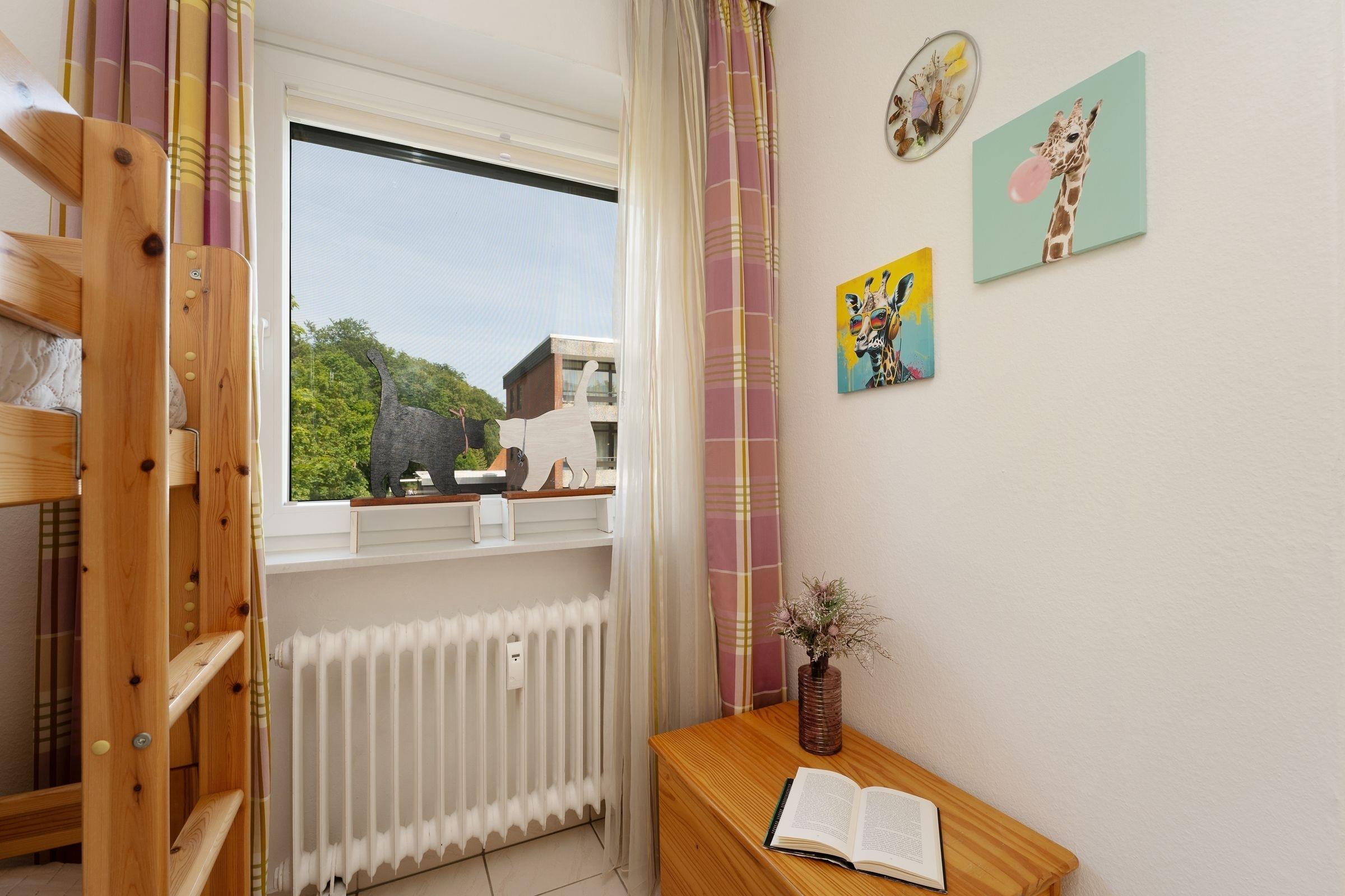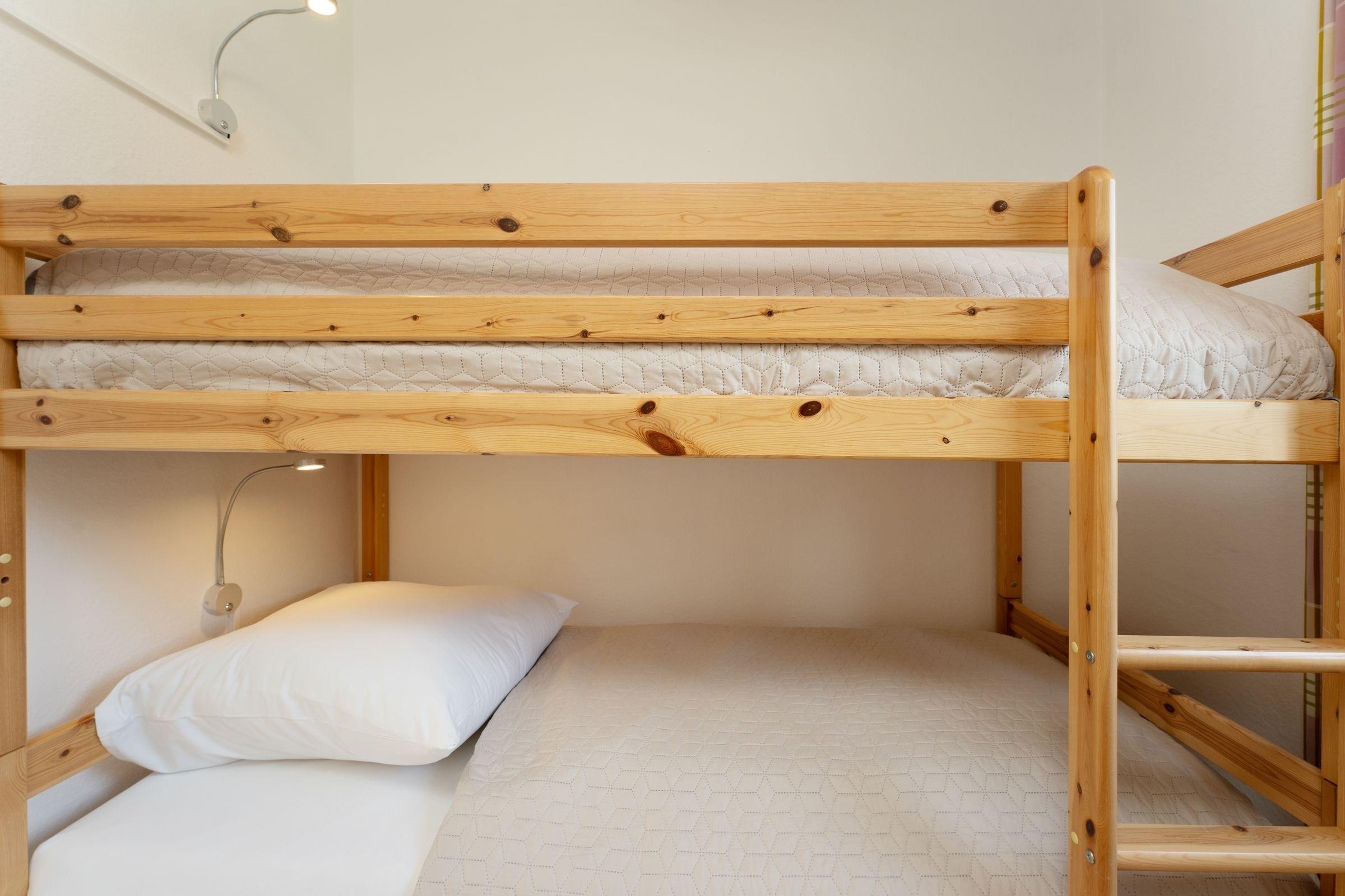 Schlafzimmer 2: 1 Etagenbett (je 90x200 cm, nur für Kinder geeignet), Verdunkelung: Rollladen, Platz für Babybett vorhanden