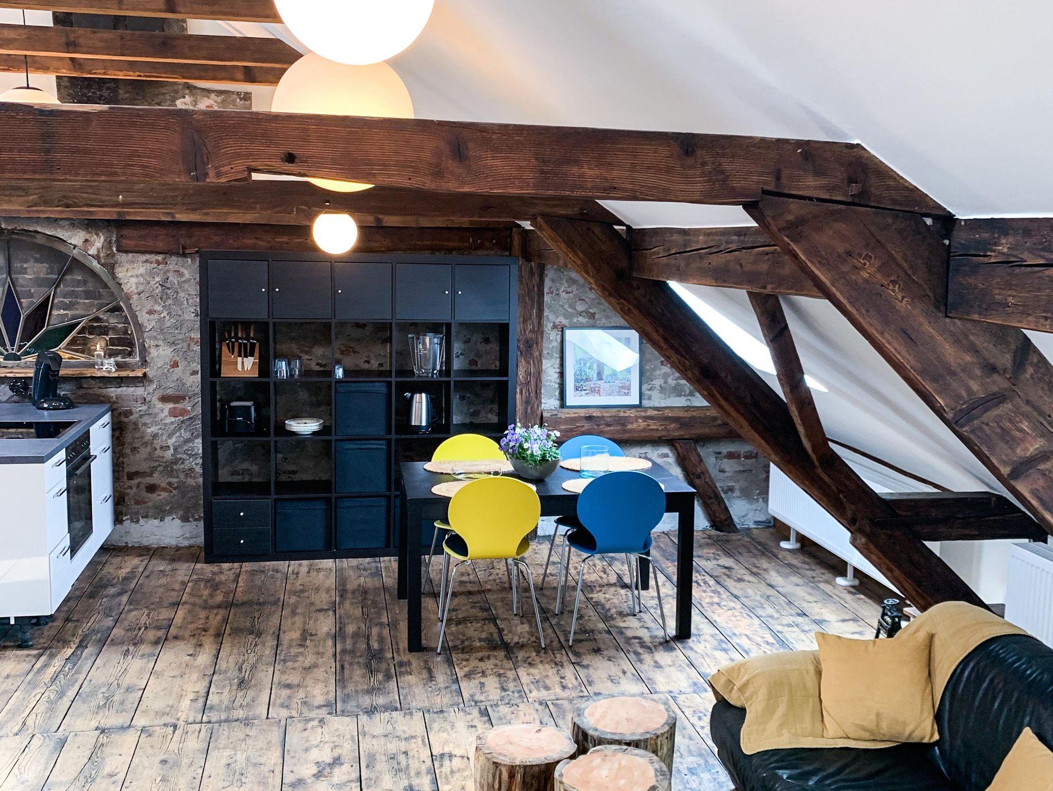 Offene Helle Wohnungen im ausgebauten Dach eines denkmalgeschützten Gebäudes laden zum Verweilen ein. Unsere Ferienwohnungen in Neuwied, zwischen Koblenz und Bonn am romantischen Rhein bieten Ihnen ein außergewöhnliches Ambiente im Herzen der Stadt. Das feine Zusammenspiel von alt und neu machen die Wohnungen besonders.