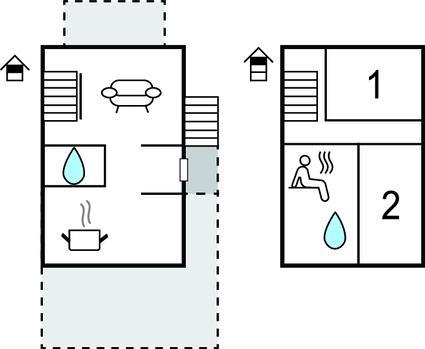 Badezimmer (nr. 2) - WC. Warmes und kaltes Wasser. Dusche