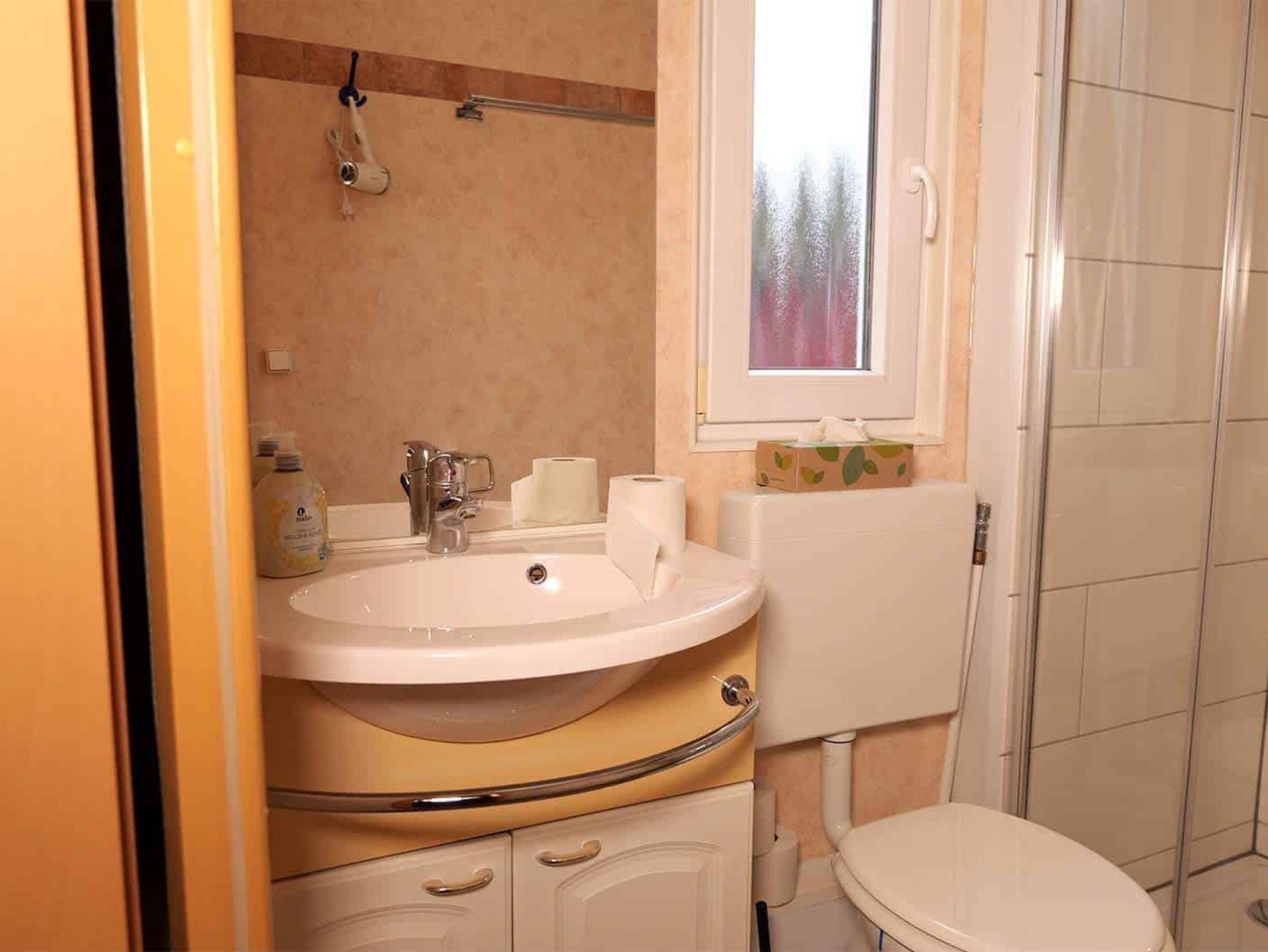 Hier bist du großzügig eingerichtet: In diesem Mobilheim erwarten dich zwei Schlafzimmer, eine komplett eingerichtete Wohnküche sowie eine Truma-Heizung und eine Heiß-Wassertherme. Ein TV gehört ebenfalls zur Ausstattung. Ein kleines Badezimmer mit WC, Dusche und Handwaschbecken sorgt für eine angenehme Wohlfühlatmosphäre. Auf der Terrasse findest du gemütliche Sitzgelegenheiten, wo du auch grillen kannst. Dein Fahrzeug parkst du direkt am Objekt. Gerne kannst du deine eigene Bettwäsche und Handtücher mitbringen oder sie bei uns dazubuchen.