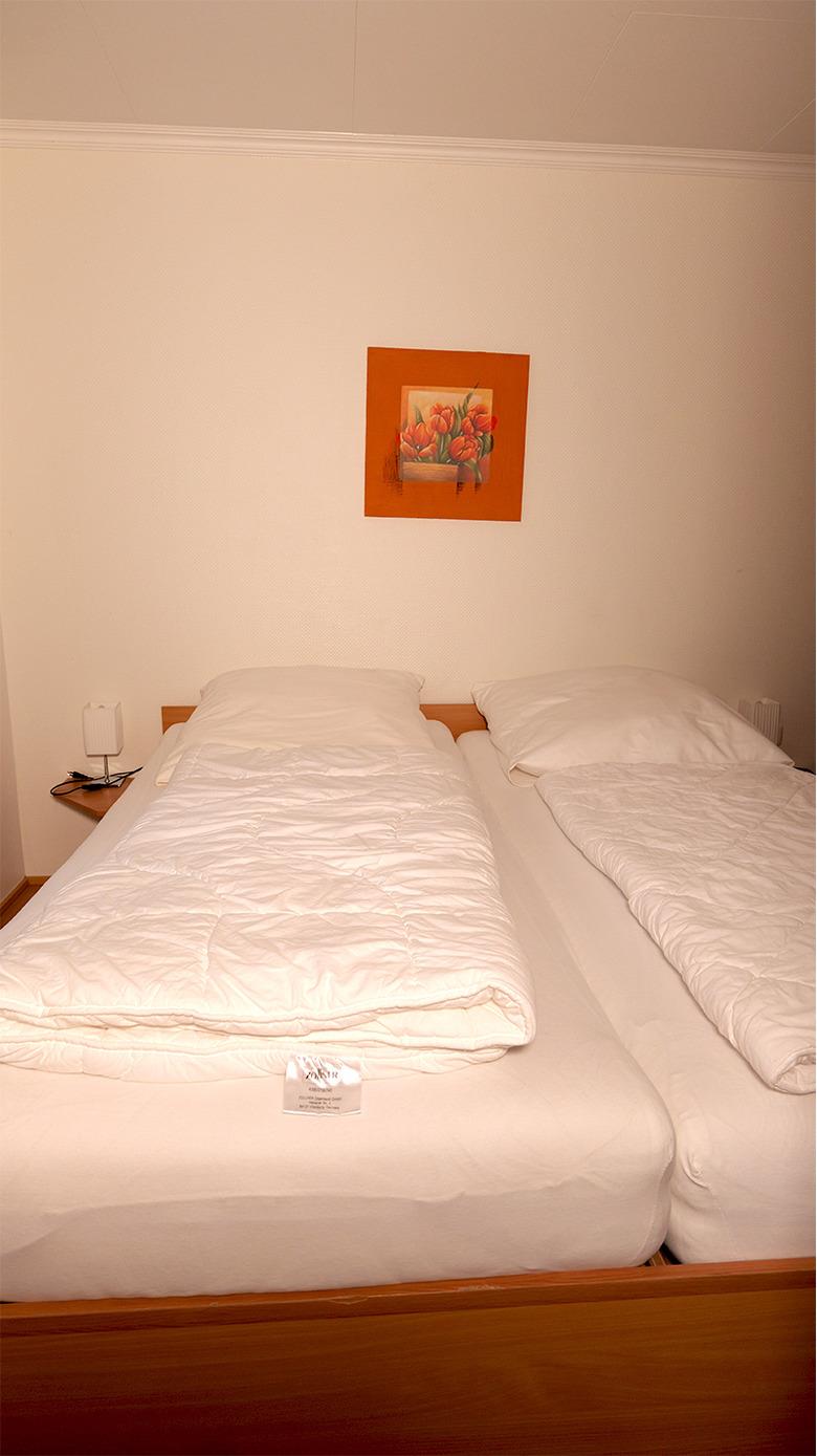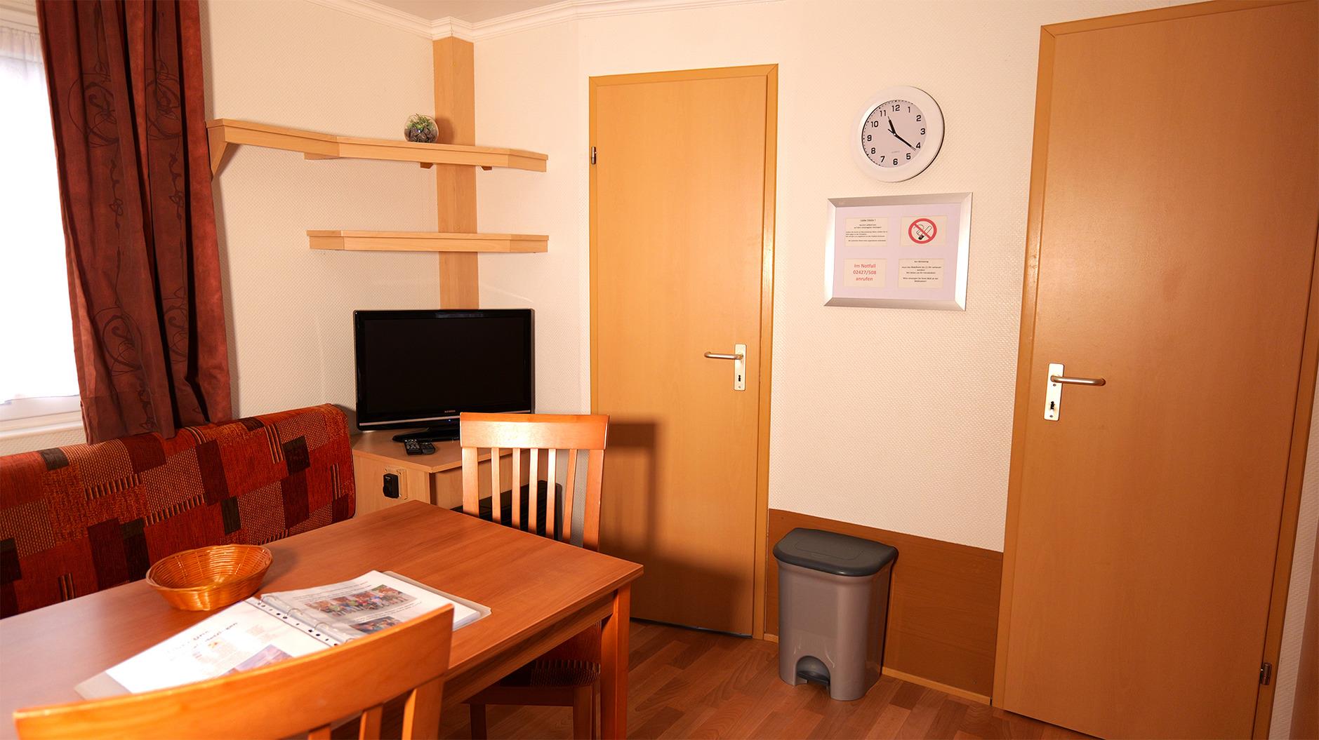 Hier bist du großzügig eingerichtet: In diesem Mobilheim erwarten dich zwei Schlafzimmer, eine komplett eingerichtete Wohnküche sowie eine Truma-Heizung und eine Heiß-Wassertherme. Ein TV gehört ebenfalls zur Ausstattung. Ein kleines Badezimmer mit WC, Dusche und Handwaschbecken sorgt für eine angenehme Wohlfühlatmosphäre. Auf der Terrasse findest du gemütliche Sitzgelegenheiten, wo du auch grillen kannst. Dein Fahrzeug parkst du direkt am Objekt. Gerne kannst du deine eigene Bettwäsche und Handtücher mitbringen oder sie bei uns dazubuchen.