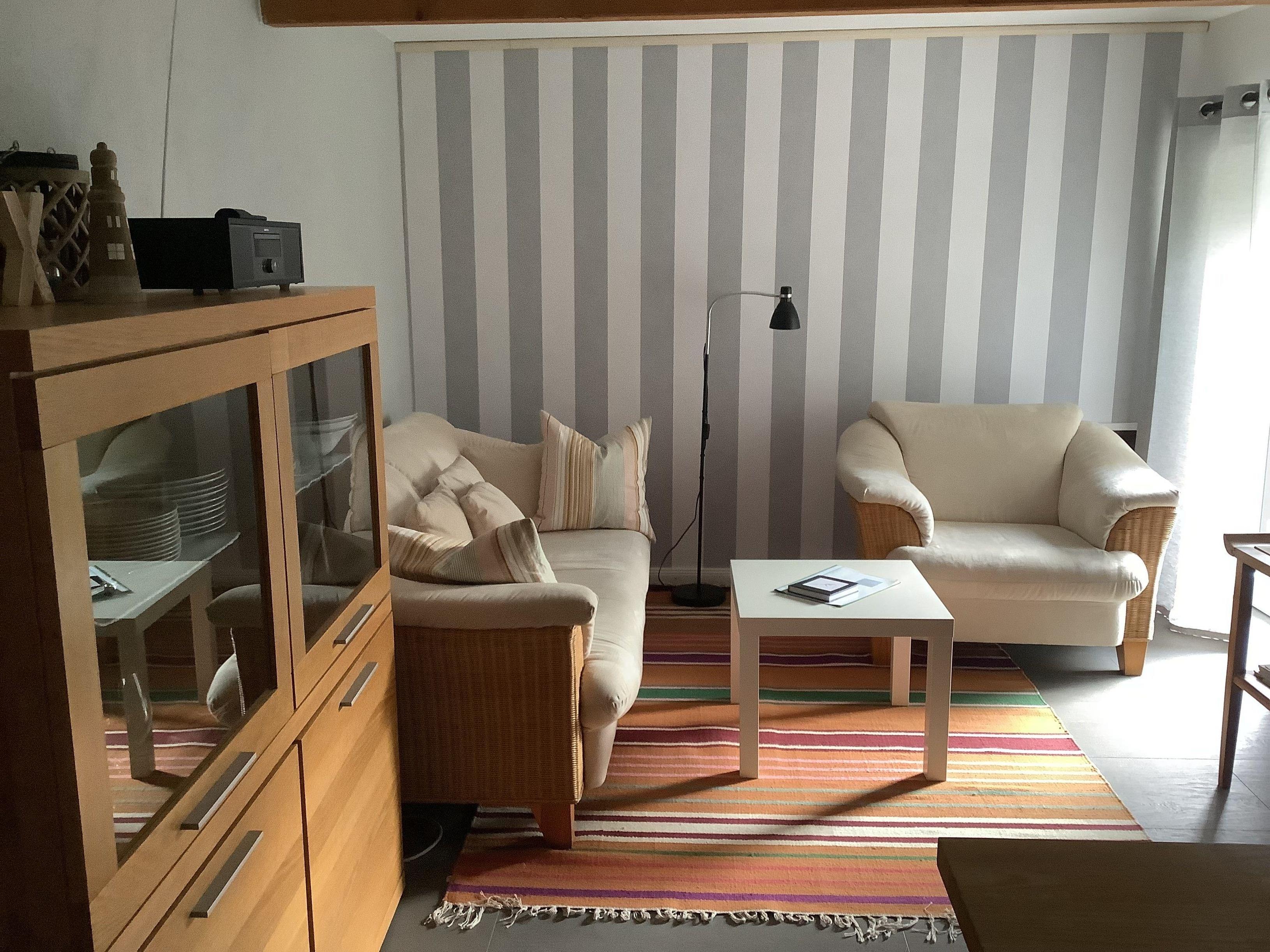 Ihnen steht die Wohnung von 40 m² Gesamtgröße mit einer Wohnküche, ausgestattet mit Kühlschrank, Herd, Backofen und Geschirrspüler zur Verfügung. Das Schlafzimmer verfügt über ein 1,40m breites französisches Bett. Das Bett ist selbstverständlich frisch bezogen und Handtücher liegen bereit. Sie nutzen eine eigene Terrasse mit kleinem Garten und es steht ein kostenfreier Parkplatz (1 PKW) vor dem Haus zur Verfügung.